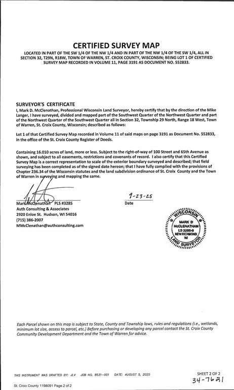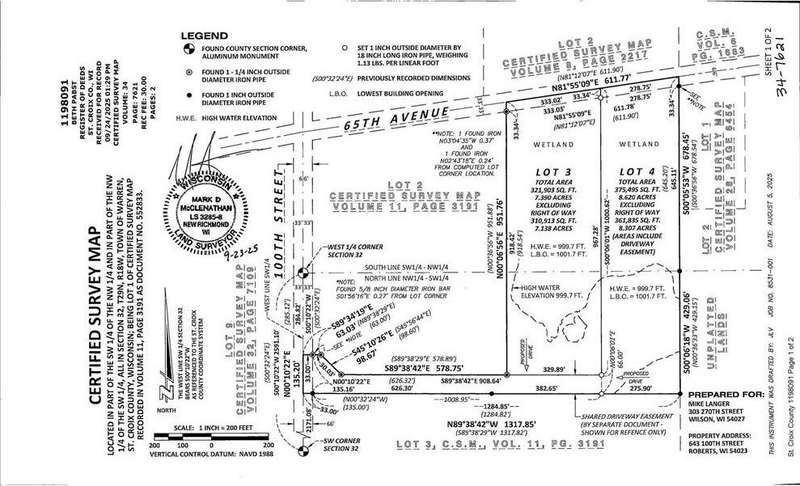 Tucked away on 8.62 acres, this private, heavily wooded lot offers endless possibilities to build the home you’ve been dreaming of! With rolling terrain and walkout potential, this beautiful lot is surrounded by a mix of mature hardwood and pine trees, abundant wildlife, and plenty of space for trails, hiking, hunting, or simply enjoying nature. Bring your own builder—no covenants restrict your vision. Enjoy peaceful country living with quick access to I-94 and nearby towns for all the conveniences you need. Don’t wait to bring your vision to life at 643 100th Street!