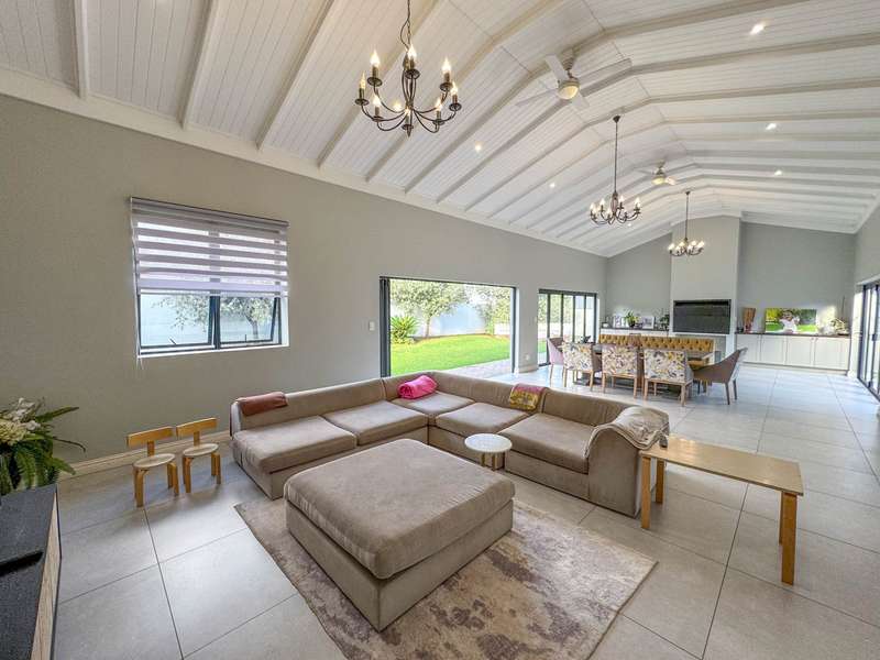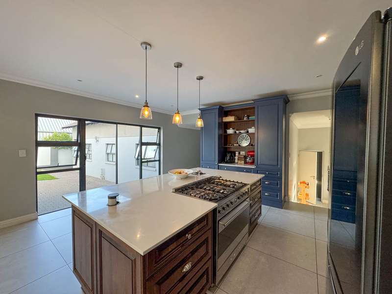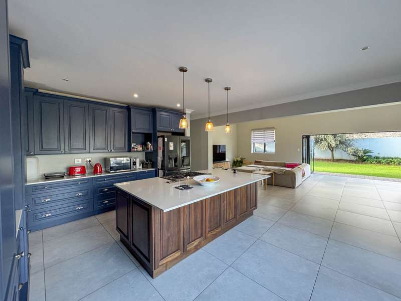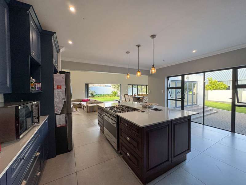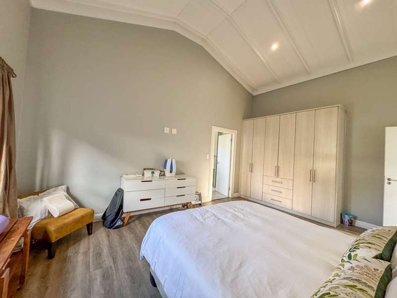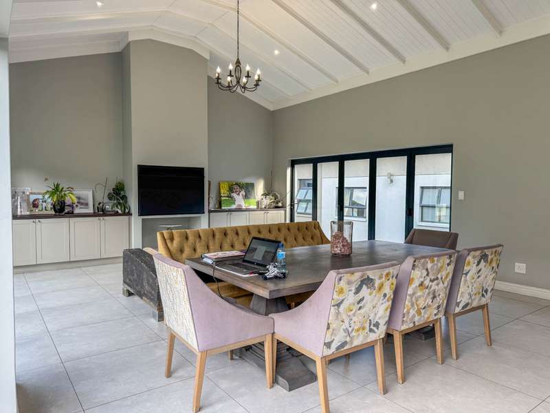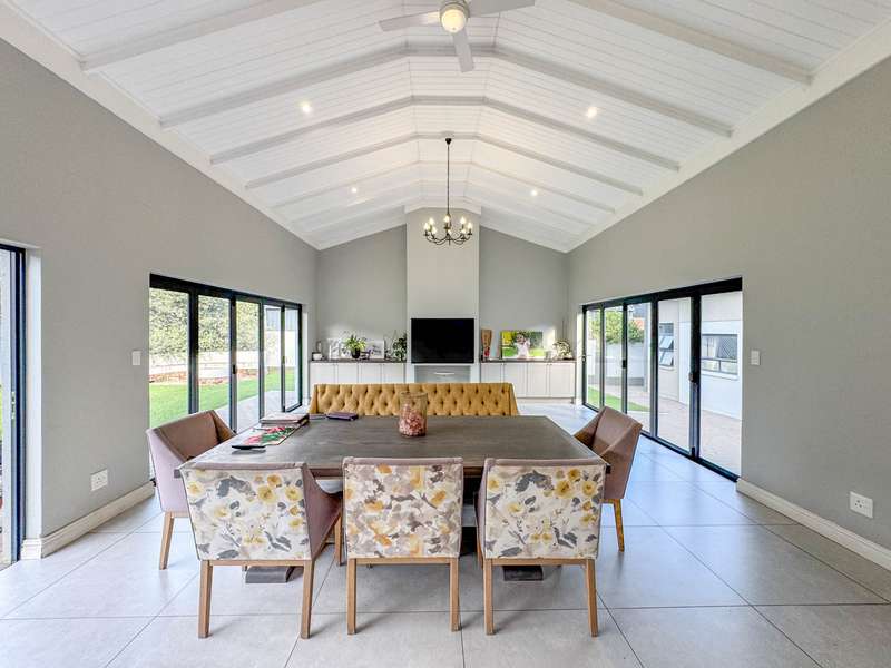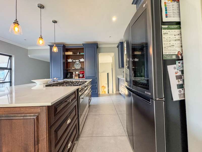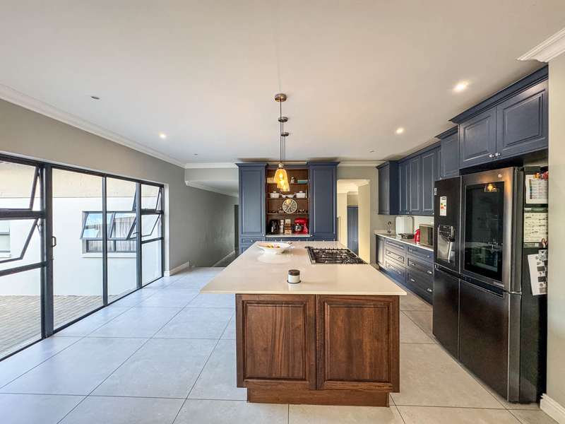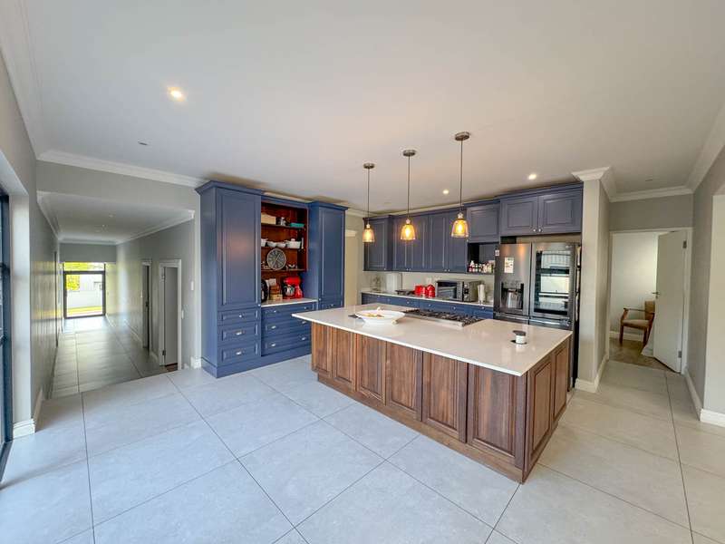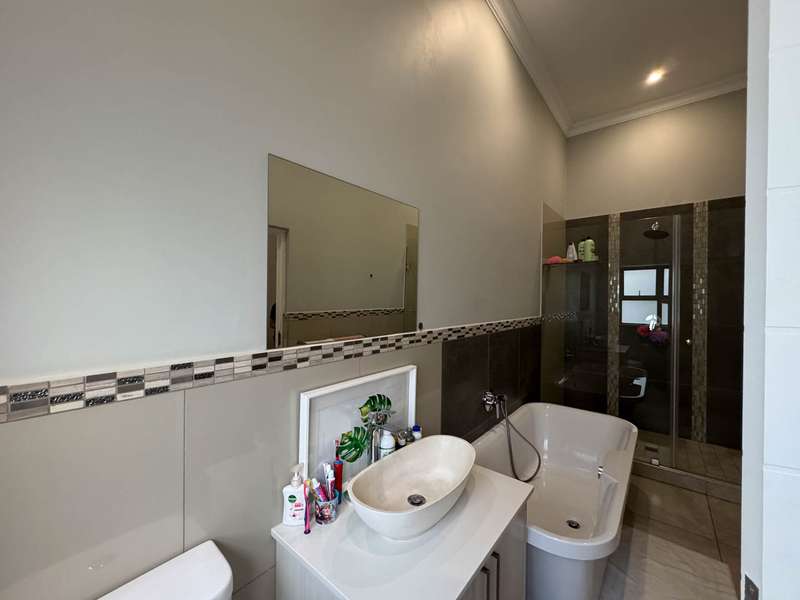 STUNNING MODERN FARM-STYLE HOME IN MIDSTREAM RIDGE Welcome to this large, single-storey family home in the prestigious Midstream Ridge — perfectly positioned near Midstream Primary School, beautiful parks, and all essential amenities. From the moment you enter the elegant entrance hall, you’re greeted by soaring high ceilings that create a sense of grandeur and light throughout the home. Each of the four spacious bedrooms is thoughtfully designed for comfort and privacy: Main bedroom with a luxurious walk-in closet and full en-suite bathroom with extra cupboard space Bedrooms 2 & 3 each with full en-suite bathrooms Bedroom 4 with shower Guest toilette conveniently located The study with built-in desk and cupboards offers the perfect space to work from home. The heart of the home is the gorgeous farm-style kitchen featuring a gas hob, ample workspace, and a separate scullery with space for three appliances. The expansive open-plan living, dining, and entertainment areas are beautifully finished with chandeliers, a built-in braai, and stacking doors that flood the space with natural light and open onto the established, private garden with a cozy boma — perfect for relaxed evenings around the fire. Additional features include: Linen/ironing room Full irrigation system Three garages Prime cul-de-sac location This home seamlessly blends modern luxury with timeless farm-style charm, offering the ideal setting for family living and entertaining. Don’t miss out — contact me today to arrange your exclusive viewing!