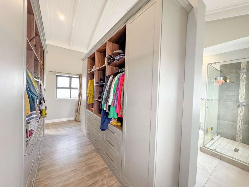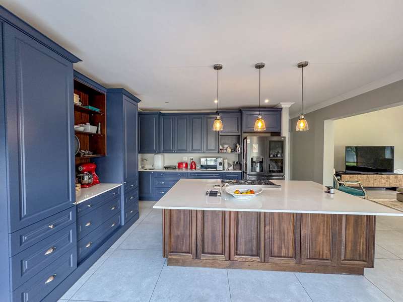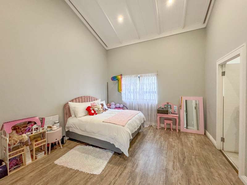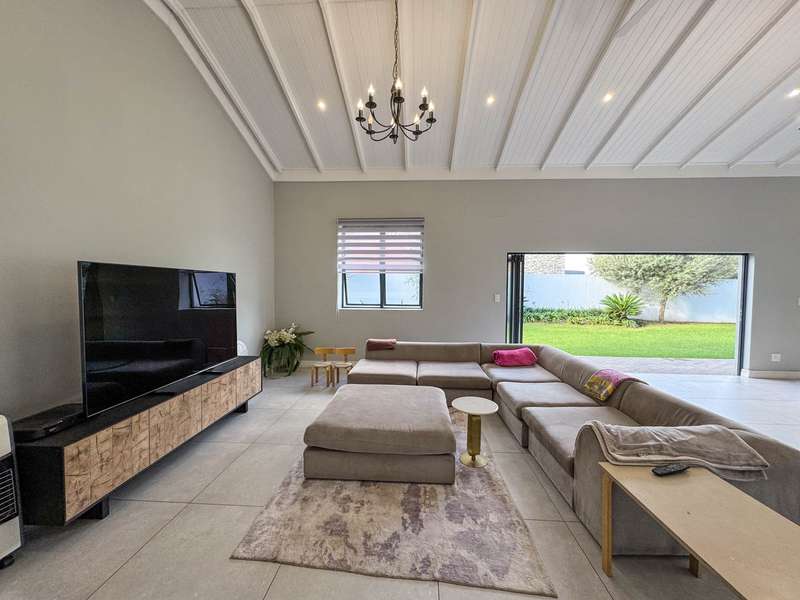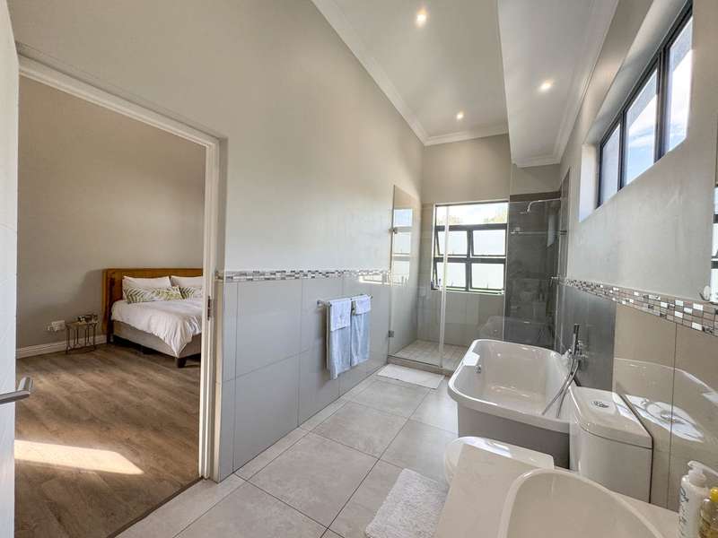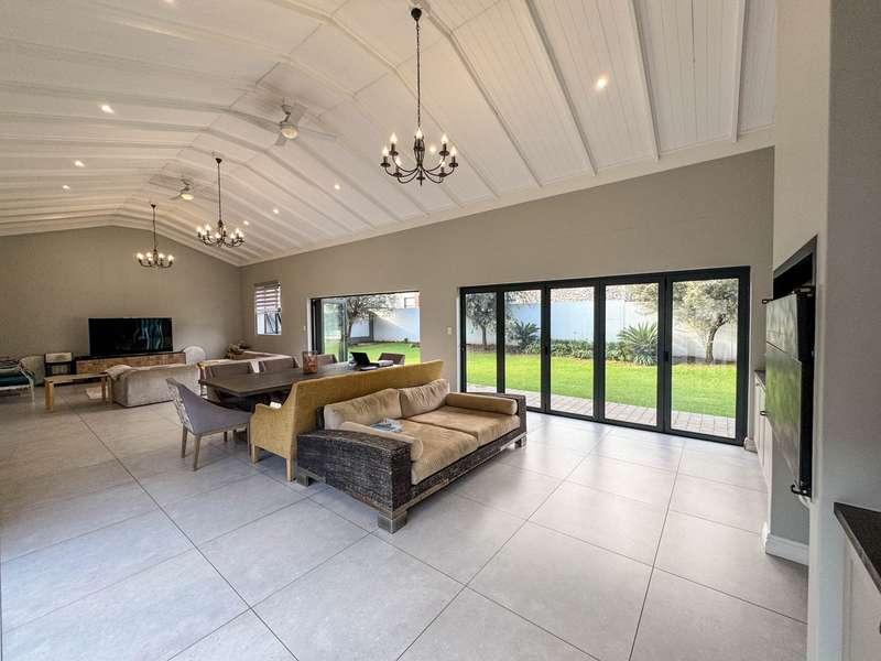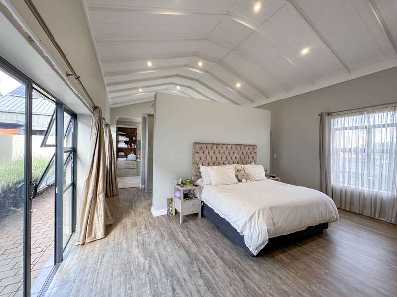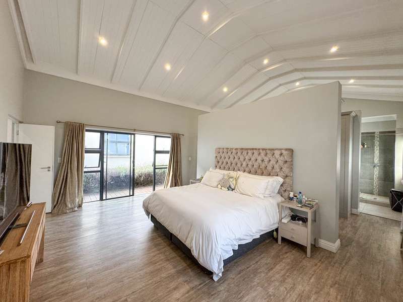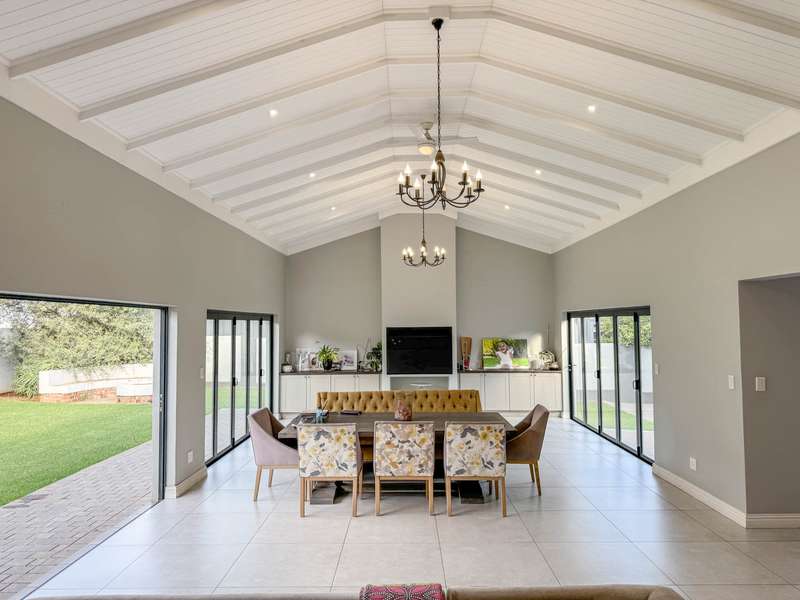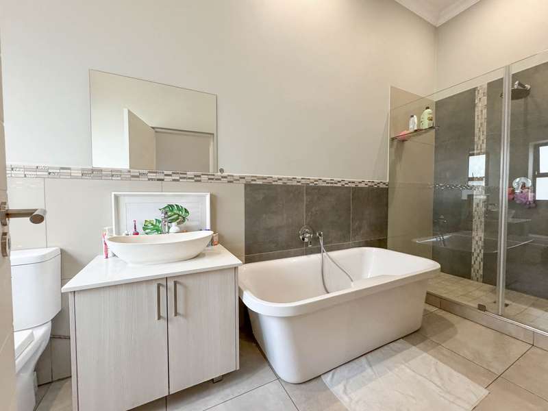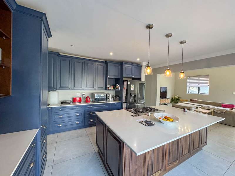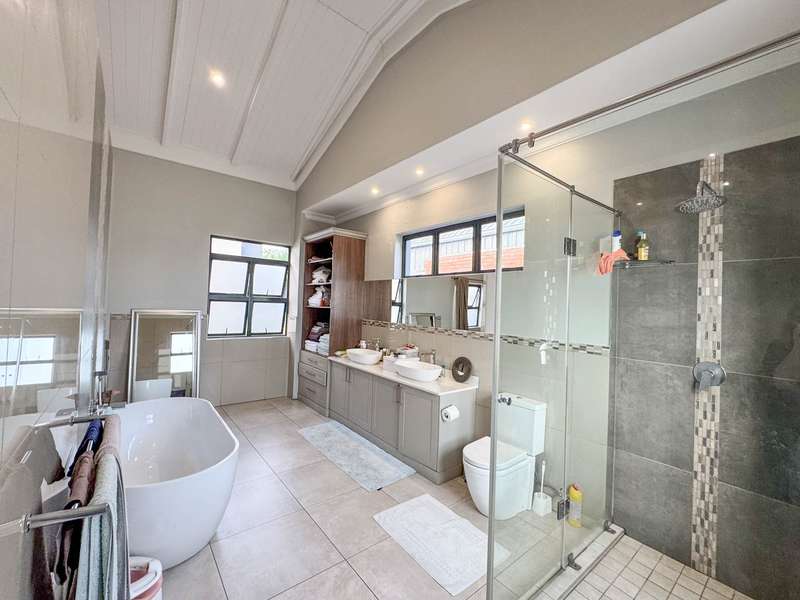 STUNNING MODERN FARM-STYLE HOME IN MIDSTREAM RIDGE Welcome to this large, single-storey family home in the prestigious Midstream Ridge — perfectly positioned near Midstream Primary School, beautiful parks, and all essential amenities. From the moment you enter the elegant entrance hall, you’re greeted by soaring high ceilings that create a sense of grandeur and light throughout the home. Each of the four spacious bedrooms is thoughtfully designed for comfort and privacy: Main bedroom with a luxurious walk-in closet and full en-suite bathroom with extra cupboard space Bedrooms 2 & 3 each with full en-suite bathrooms Bedroom 4 with shower Guest toilette conveniently located The study with built-in desk and cupboards offers the perfect space to work from home. The heart of the home is the gorgeous farm-style kitchen featuring a gas hob, ample workspace, and a separate scullery with space for three appliances. The expansive open-plan living, dining, and entertainment areas are beautifully finished with chandeliers, a built-in braai, and stacking doors that flood the space with natural light and open onto the established, private garden with a cozy boma — perfect for relaxed evenings around the fire. Additional features include: Linen/ironing room Full irrigation system Three garages Prime cul-de-sac location This home seamlessly blends modern luxury with timeless farm-style charm, offering the ideal setting for family living and entertaining. Don’t miss out — contact me today to arrange your exclusive viewing!
