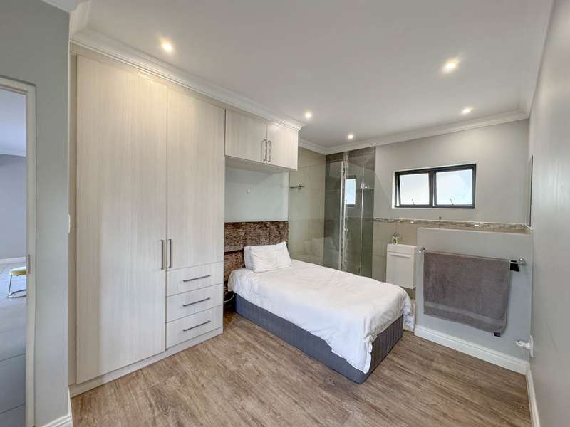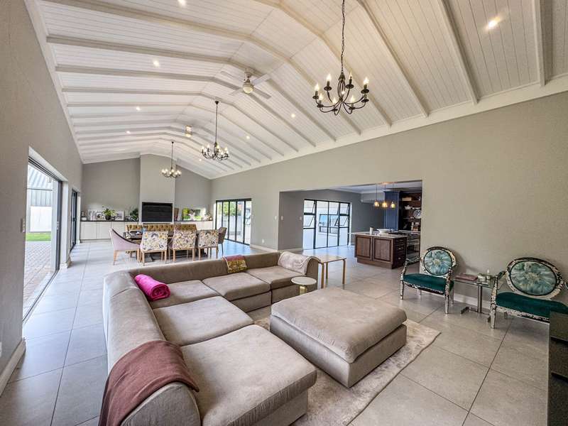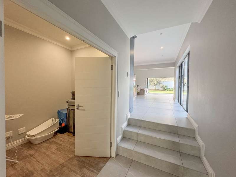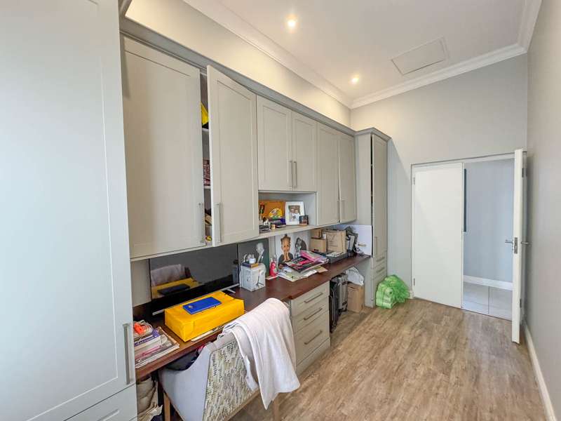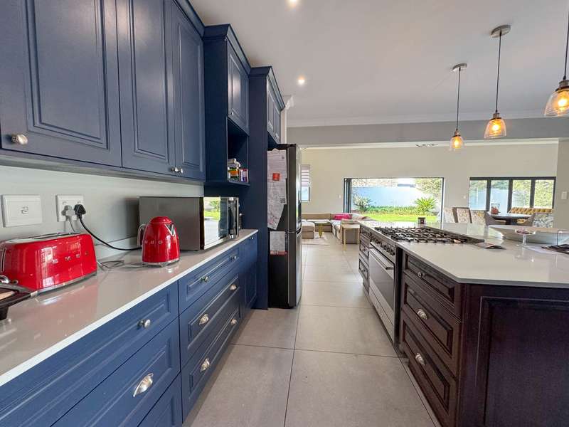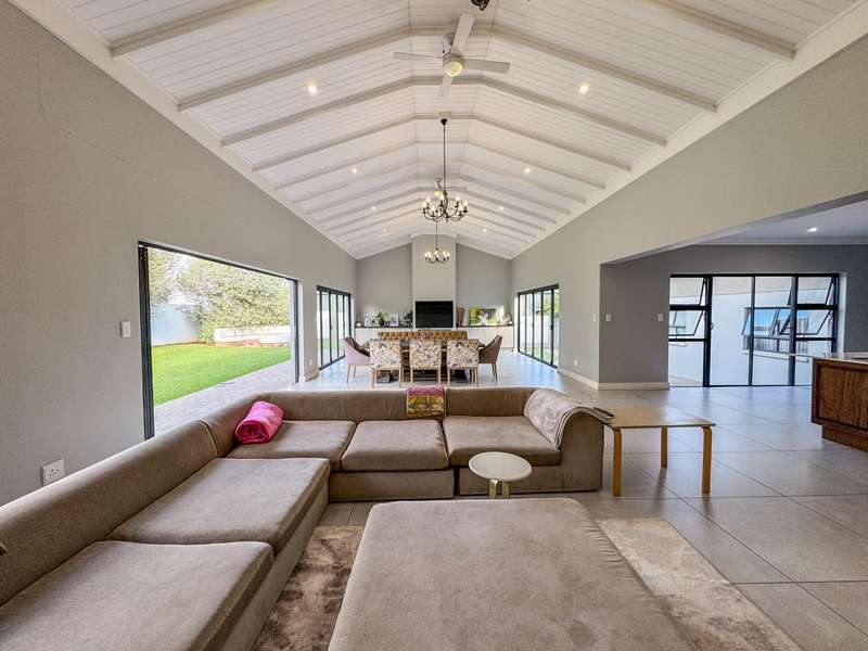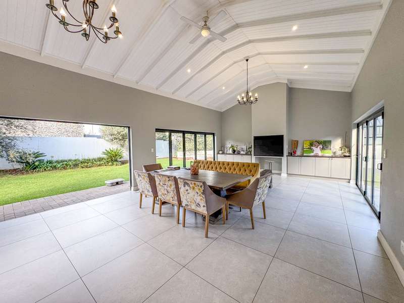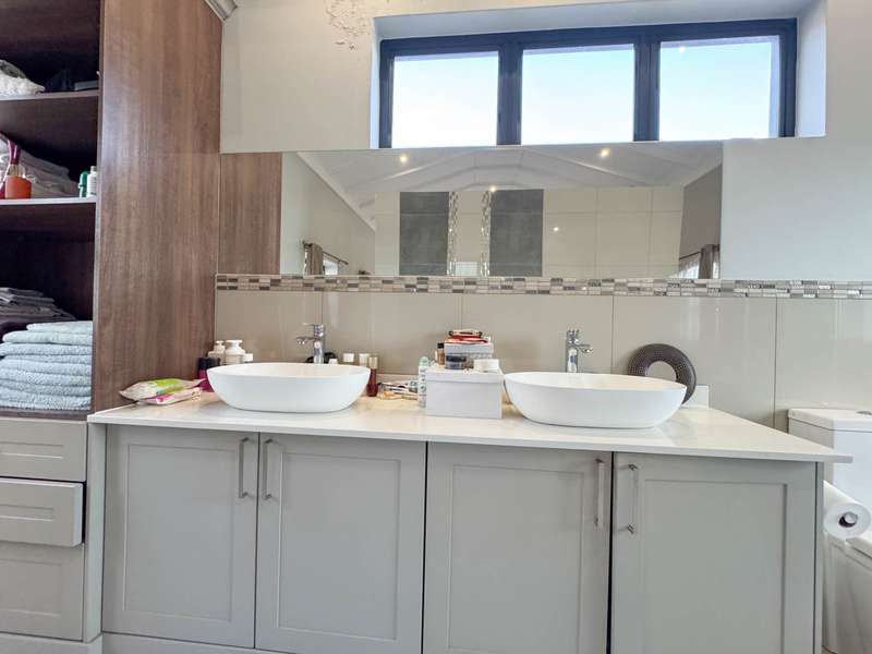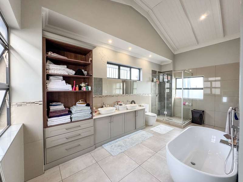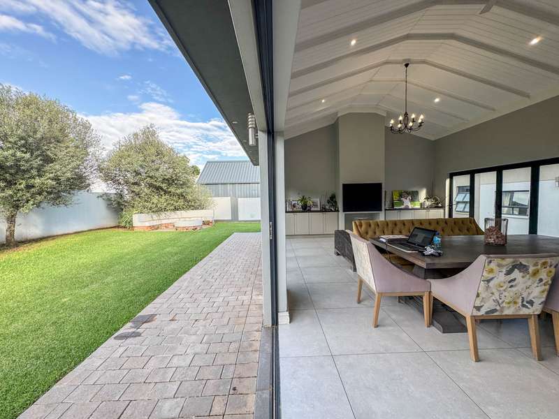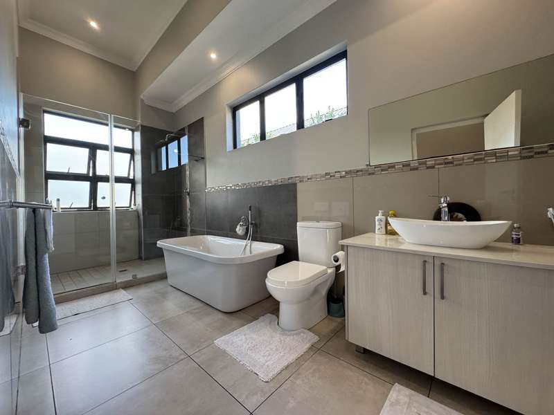 STUNNING MODERN FARM-STYLE HOME IN MIDSTREAM RIDGE Welcome to this large, single-storey family home in the prestigious Midstream Ridge — perfectly positioned near Midstream Primary School, beautiful parks, and all essential amenities. From the moment you enter the elegant entrance hall, you’re greeted by soaring high ceilings that create a sense of grandeur and light throughout the home. Each of the four spacious bedrooms is thoughtfully designed for comfort and privacy: Main bedroom with a luxurious walk-in closet and full en-suite bathroom with extra cupboard space Bedrooms 2 & 3 each with full en-suite bathrooms Bedroom 4 with shower Guest toilette conveniently located The study with built-in desk and cupboards offers the perfect space to work from home. The heart of the home is the gorgeous farm-style kitchen featuring a gas hob, ample workspace, and a separate scullery with space for three appliances. The expansive open-plan living, dining, and entertainment areas are beautifully finished with chandeliers, a built-in braai, and stacking doors that flood the space with natural light and open onto the established, private garden with a cozy boma — perfect for relaxed evenings around the fire. Additional features include: Linen/ironing room Full irrigation system Three garages Prime cul-de-sac location This home seamlessly blends modern luxury with timeless farm-style charm, offering the ideal setting for family living and entertaining. Don’t miss out — contact me today to arrange your exclusive viewing!