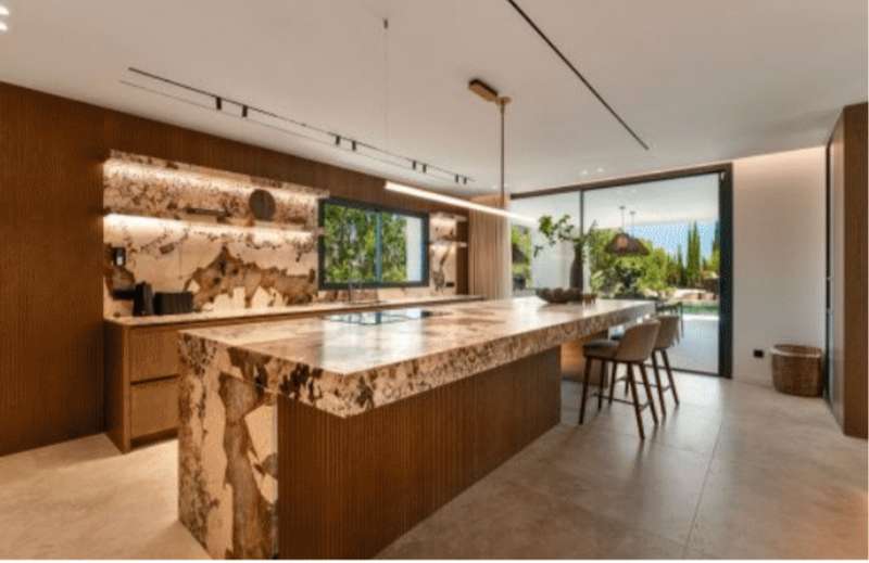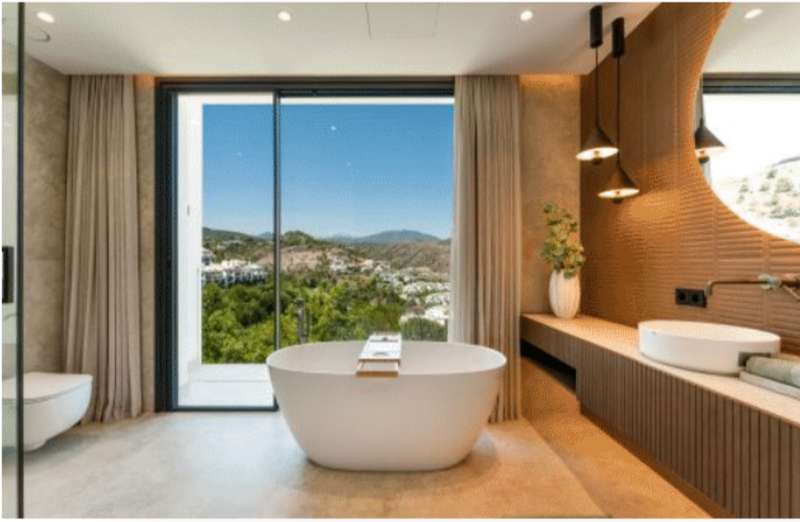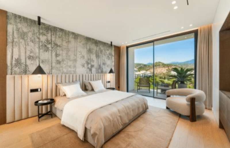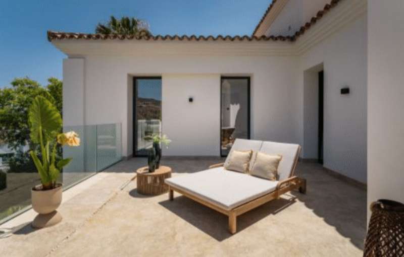 In the heart of the prestigious El Herrojo community in La Quinta lies Villa Sol Dorado—an exquisite residence where Andalusian tradition meets contemporary luxury. Recently fully renovated with top-quality materials, the villa perfectly blends timeless architecture with modern elegance. Spread across three levels, each space has been carefully designed with comfort and style in mind. The main floor welcomes you with expansive open-plan living areas, floor-to-ceiling windows, a state-of-the-art designer kitchen, and a stylish guest bedroom. The atmosphere here is light-filled and inviting—ideal for intimate family moments or grand entertaining. Upstairs, three spacious bedrooms each feature their own private terraces with breathtaking views of the mountains and rolling green hills. The master suite is a world of its own, boasting a private lounge, custom walk-in wardrobe, and a spa-inspired bathroom. The lower level is dedicated to wellness and leisure, offering a private gym, saun