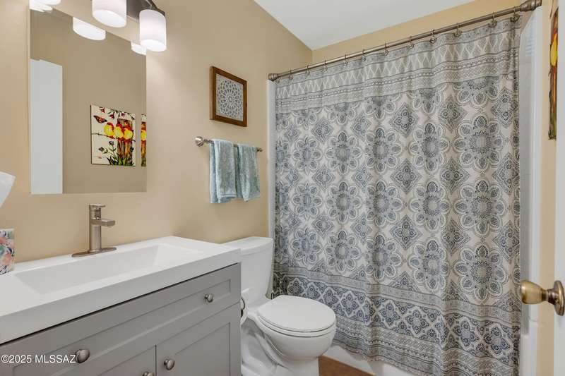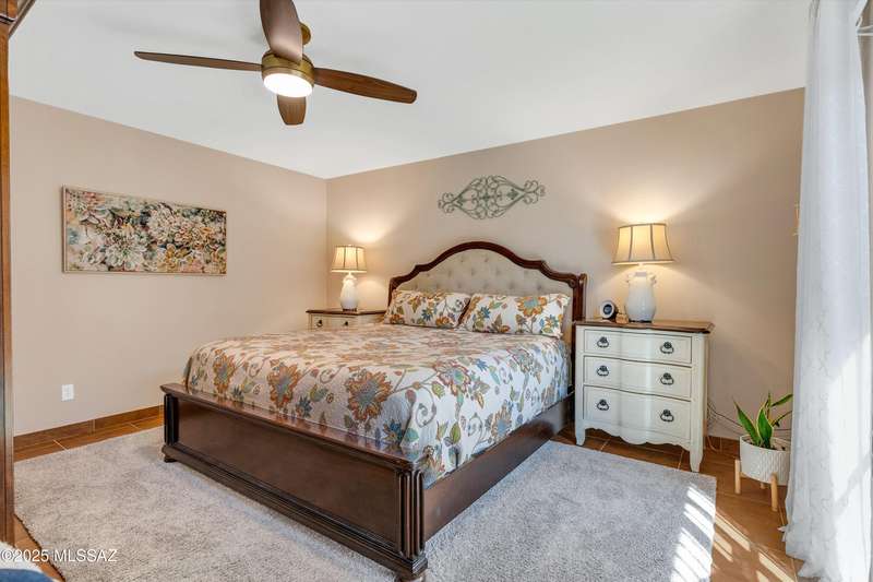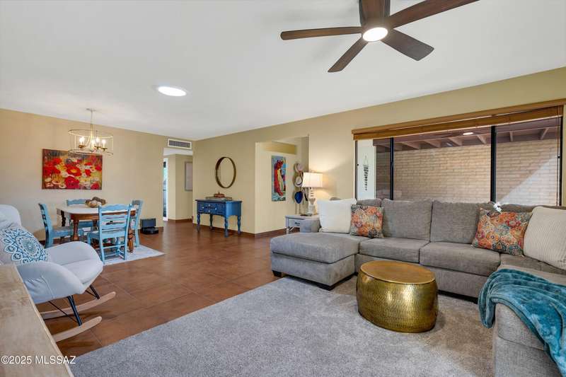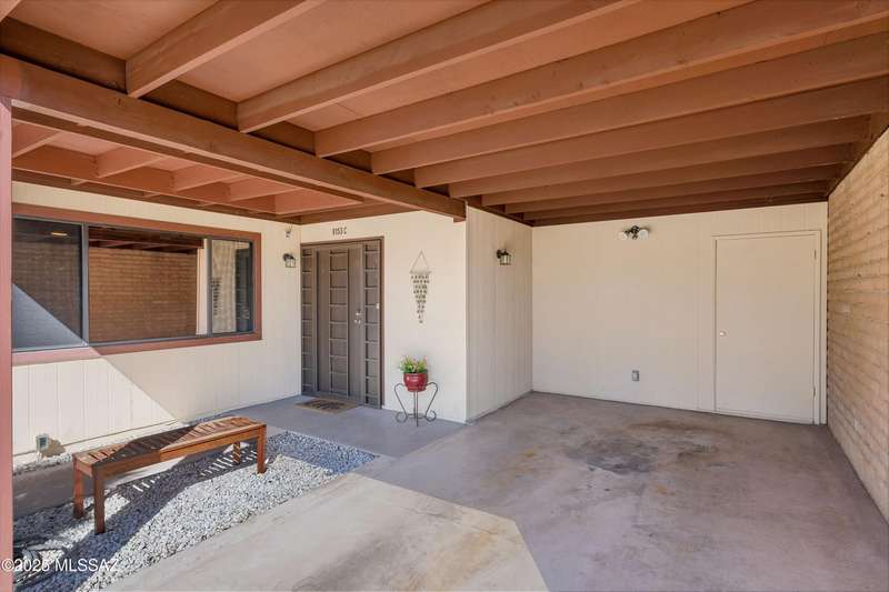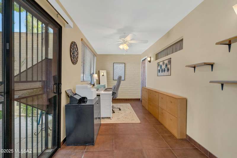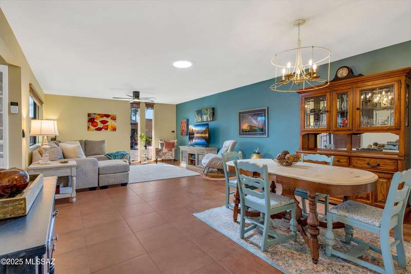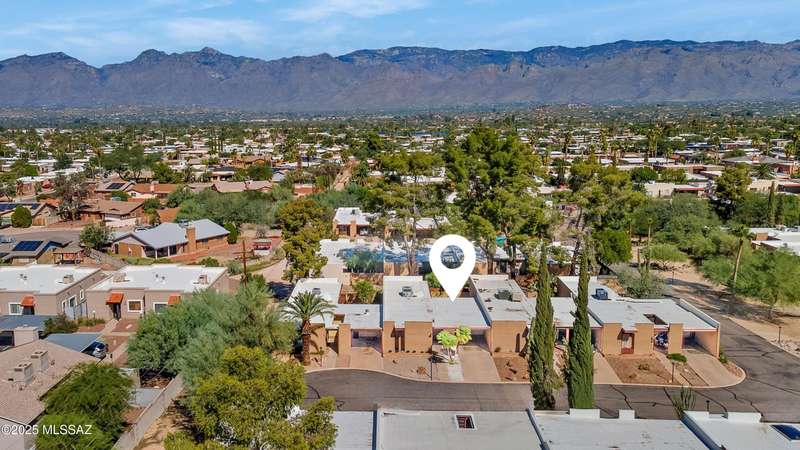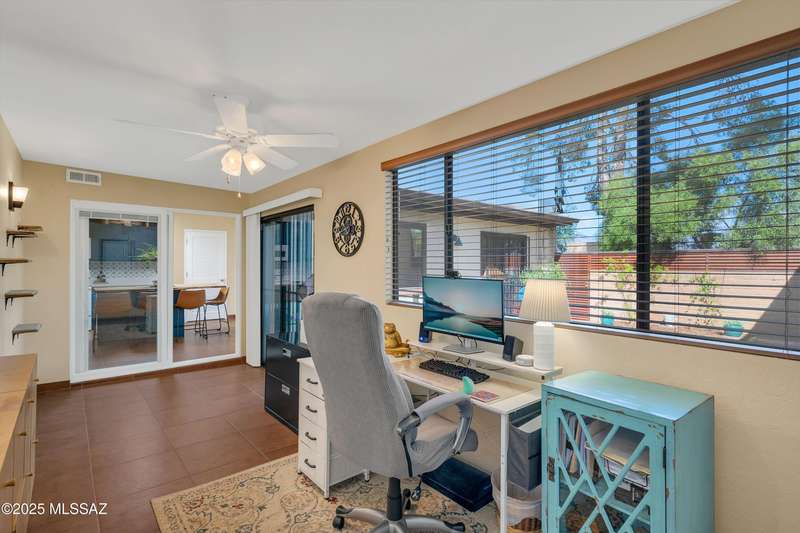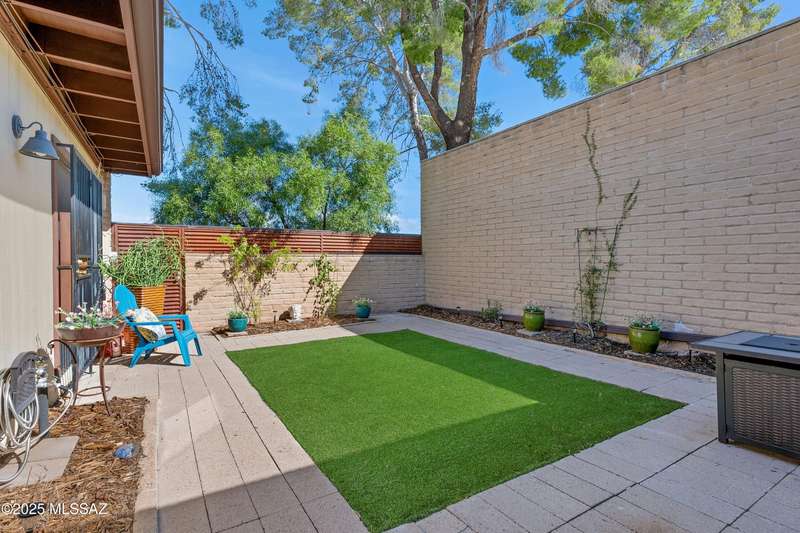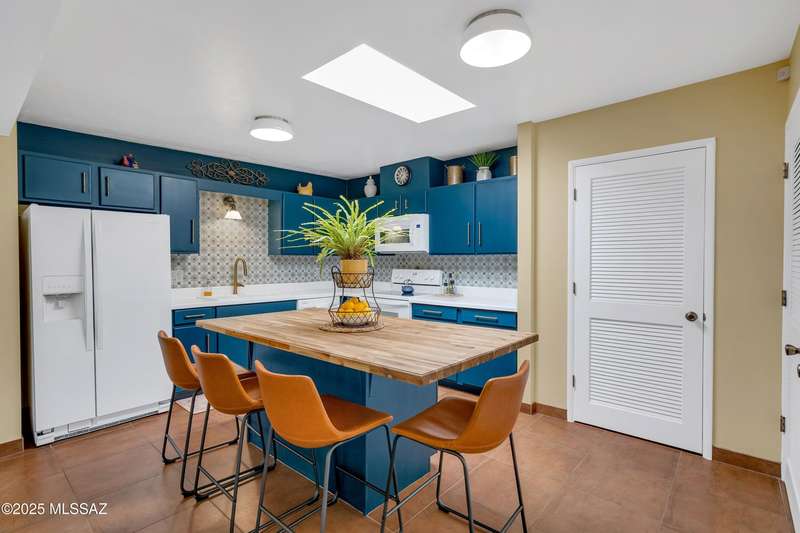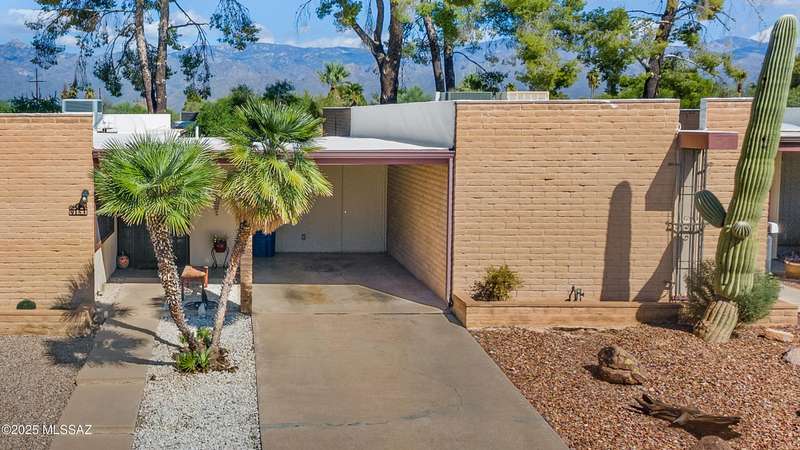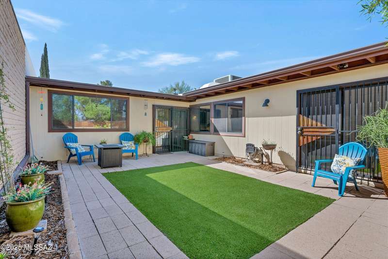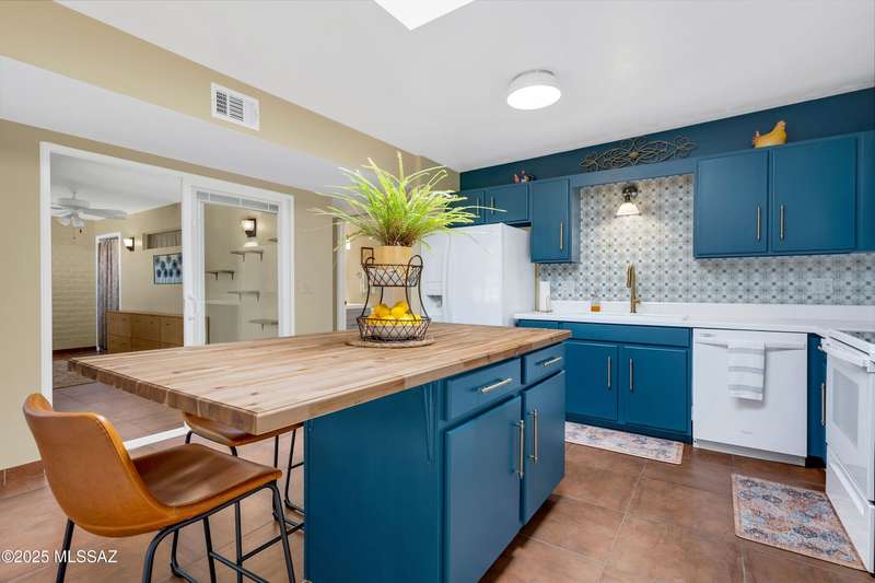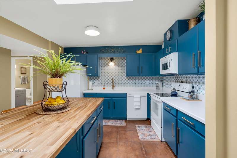 Move-in ready with quality updates throughout, this Las Placitas TH offers low-maintenance living in one of Tucson's hidden-gem communities. Tucked away with no through traffic, friendly neighborhood w/ a sparkling pool. This 2bed/2bath home features tile throughout & an enclosed bonus room with a view of the private backyard, perfect for an office/studio. The primary bedroom easily fits a king-size bed, & the kitchen & living room are brightened by skylights. Every detail has been thoughtfully chosen, giving the home a fresh, designer-inspired look that feels both stylish & comfortable. The Acacia butcher-block island is versatile, ideal as an eat-in space for guests or as a prep station. Reasonable HOA fees, & a charming, pet-friendly backyard. Newer water heater, 2024 roof recoat.