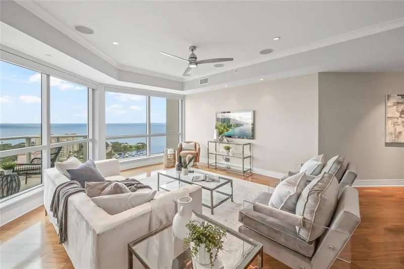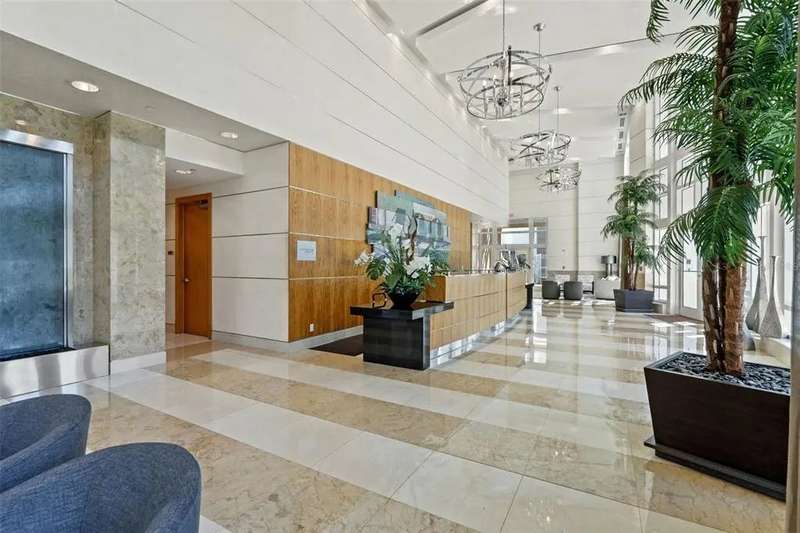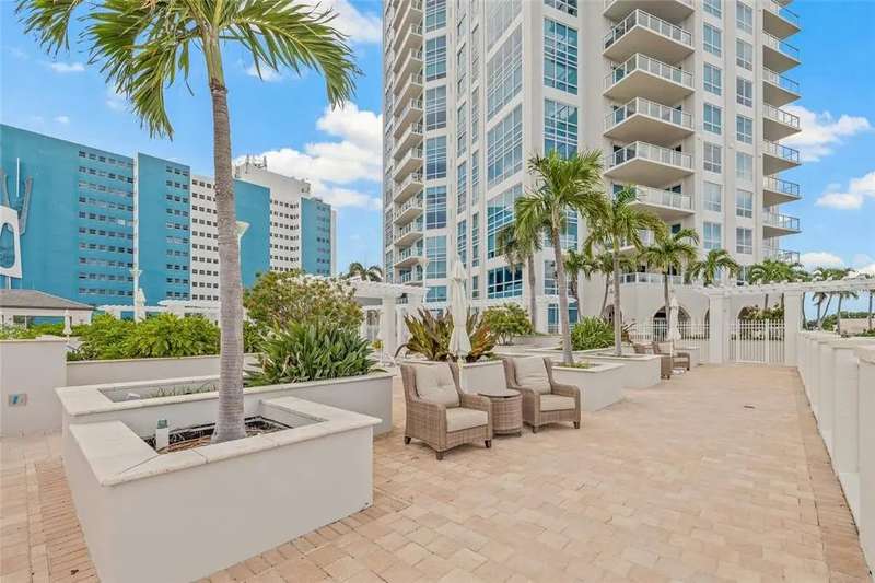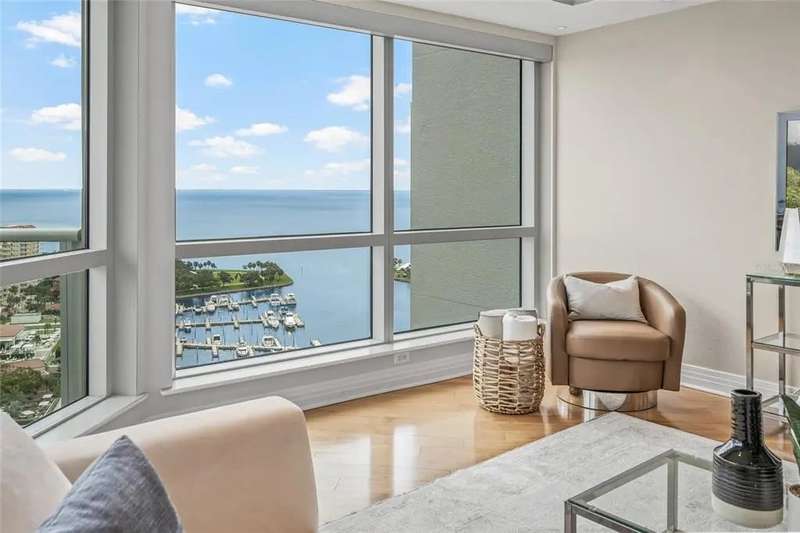 Sweeping views greet you from the moment you step through the private foyer into this 23rd-floor home overlooking the historic Vinoy Hotel! Few buildings in St Petersburg offer the Luxury Level of Amenities of 400 Beach Dr such as 24-hour concierge, expansive amenity deck, updated fitness center with modern equipment and expansive club room. This beautifully designed 2-bedroom, 2-bath residence offers 2,203 sq ft of upscale living with unobstructed views of Tampa Bay. From sunrise to sunset, take in the stunning backdrop of water and beautiful northeast views from nearly every room. Step off the elevator into your private foyer, a special feature compared to typical common hallway buildings. This quiet and secure entrance leads directly into your residence. As you walk into the main living area, you are immediately greeted by wall-to-wall windows, filling the space with natural light and water views. In addition to the two spacious bedrooms, this home features a generously sized office that offers flexibility as a media room or den—great for guests or working from home. The open layout is perfect for both everyday living and entertaining, and features Crestron electric shades and lighting throughout. Step out to the balcony—accessible from both the kitchen and the primary suite—for your morning coffee or an evening glass of wine with views of the illuminated St Pete Pier, Vinoy Marina and seasonal firework displays. This well-maintained residence offers the ease of low-maintenance with a lock-and-go lifestyle—ideal for full-time or seasonal living. The HOA fee covers an impressive array of amenities including 24/7 concierge service, heated lap pool and spa, fitness center to rival any local gym, multiple social rooms, outdoor fireplace for cool nights, immaculately maintained grilling stations, water, sewer, trash and low-cost high-speed internet and cable. Recently the HOA has shown its committed stewardship of the building with 2025 refresh of the outdoor amenities, fresh exterior paint in 2024 and investment in top fitness equipment. The home comes with two side-by-side covered parking spaces with an EV charger in the secured garage. Set in the heart of Downtown St. Pete on iconic Beach Drive, you’re just steps from parks, the Pier, waterfront trails, top-rated restaurants, boutique shopping, and world-class museums. Whether you're enjoying the vibrant downtown energy or relaxing in your private home with a view, this residence offers the best of both worlds. Call to set up your private showing today!
