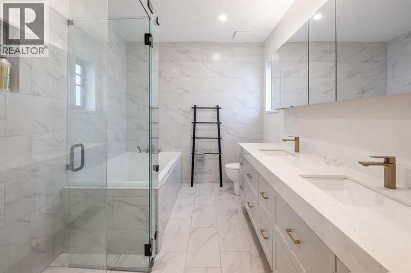 Meticulously renovated with no expenses spared, this stunning home features beautifully updated Heritage exterior paired with a contemporary interior, showcasing cutting-edge technology & premium finishes. The main floor boasts rare 10ft ceilings, providing generous space for family gatherings, entertaining & a dedicated work from home setup. Exceptional details including matte black triple-paned windows, engineered hardwood floors, energy-efficient features, gorgeous chef inspired kitchen w Italian-imported kitchen hardware & chic modern lighting, along w top-of-the-line Gaggenau & Forno appliances. The spa-like Master bath is a true retreat, with floor-to-ceiling tiles, heated floors, extra large soaker tub & a separate frameless glass shower. Exterior upgrades: new roof, siding & drain tiles. Step outside to a beautifully covered all-cedar deck, perfect for year-round enjoyment & a landscaped backyard. Includes a fully renovated, legal 2-bed basement, great opportunity for Airbnb, up to $3,800/mth revenues. (id:58403)