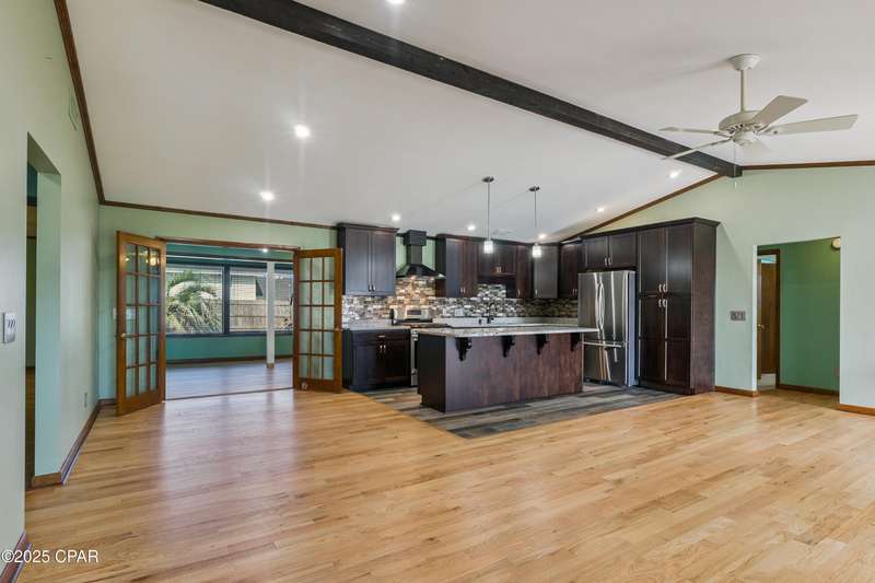 This beautifully maintained 3-bedroom, 2-bath home sits on an oversized corner lot at the end of a quiet road in the desirable North Ridge subdivision. Inside, you'll find a thoughtfully designed layout featuring a gas fireplace framed by a custom wood beam accent in the main living room--perfect for cozy evenings or entertaining.The kitchen is a chef's delight, complete with custom cabinetry, under-cabinet lighting, granite countertops, stainless steel appliances, and a gas range A spacious second living/family room offers versatility--ideal for gatherings, a home office, playroom, or media space.Out back, the fenced yard offers privacy and function, enhanced by a professionally installed French drain. This well-cared-for home blends comfort, style, and convenience--schedule your private tour today!*All measurements are approximate; buyer to verify if important.*