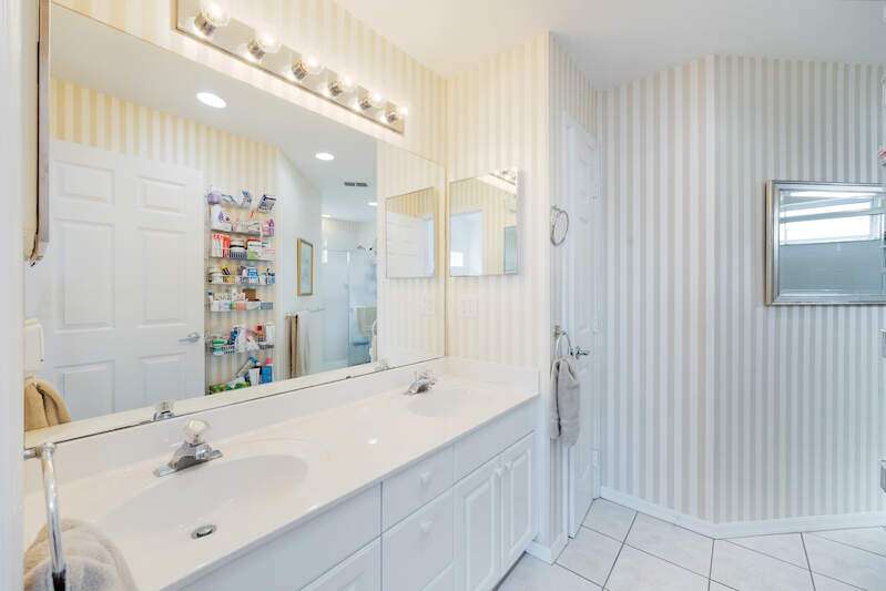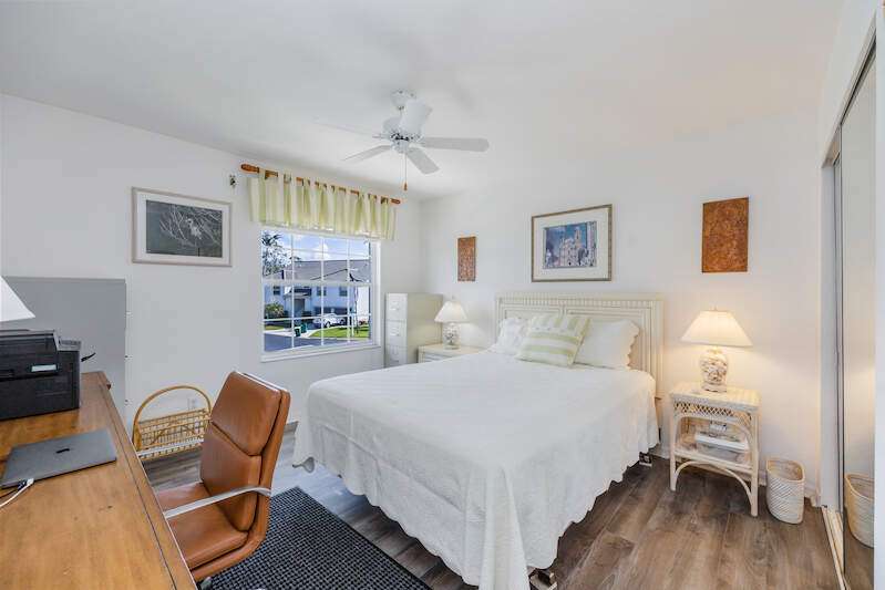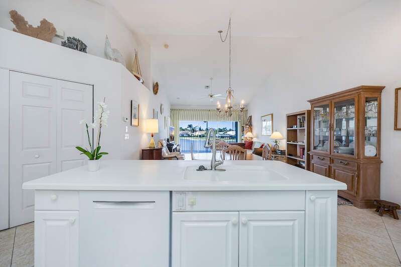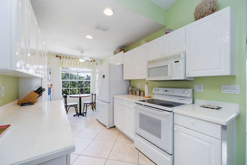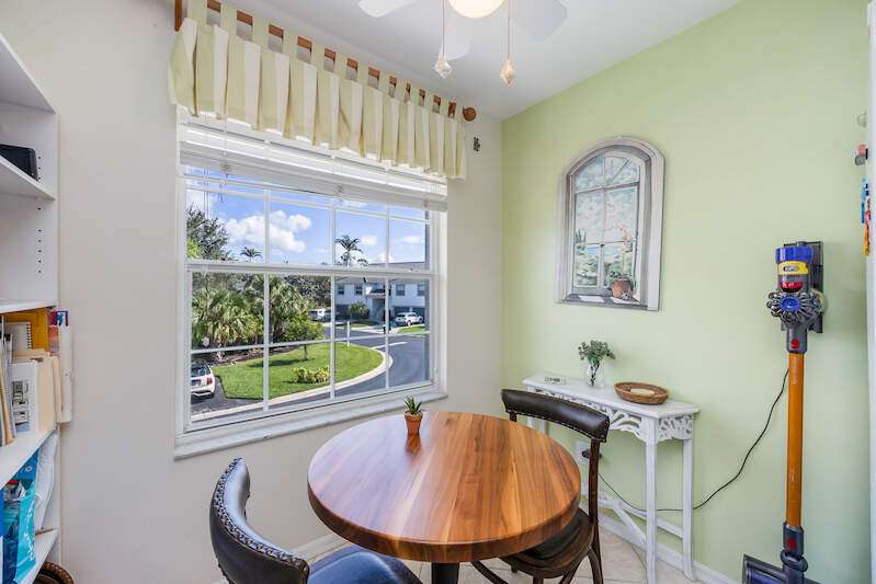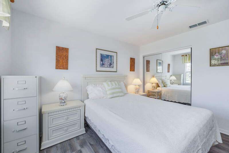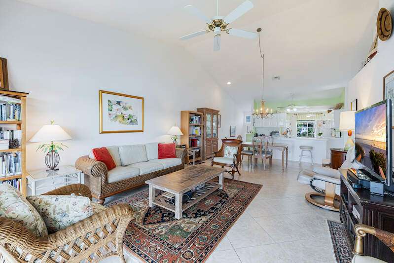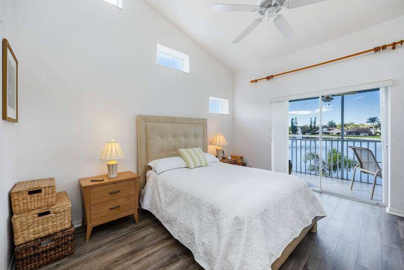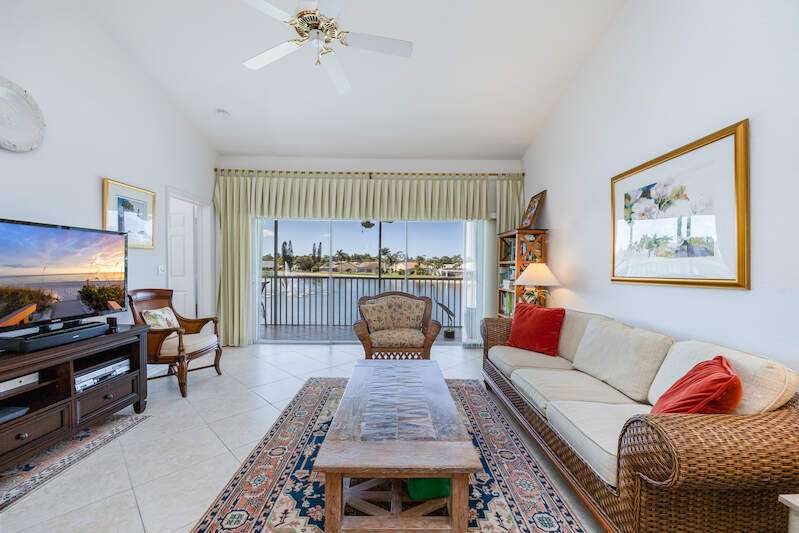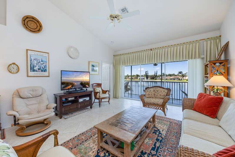 Partridge Pointe is a highly sought-after community within Berkshire Lakes. This one-owner unit is filled with natural light all day, featuring cathedral ceilings, light tile throughout, and wood flooring in the bedrooms. The spacious eat-in kitchen welcomes the morning sun, while the widened steps make them so much more functional to the second floor. The home offers two bedrooms and a long screened lanai with storm shutters on the sliders and windows, providing breathtaking southwest-facing views of the sparkling lake and open vistas on both sides of the condo. Enjoy stunning sunsets from the lanai, living room, or primary bedroom. The attached garage door was replaced and repainted less than two years ago, and the one-car garage includes shelving and additional storage space. The building's roof was replaced with tile in 2019, along with other buildings in Partridge Pointe, with no special assessment. Residents of this charming community enjoy access to a clubhouse with vibrant social activities, a beautiful pool, and a scenic two-mile walking trail around the lake. Berkshire Lakes is meticulously maintained and offers an outstanding location with quick, easy access to shopping, dining, I-75, downtown Naples, beaches, and arts and cultural events. This unit is offered turnkey furnished (excluding artwork) and is move-in ready. Why spend another winter in the cold when you could be here?