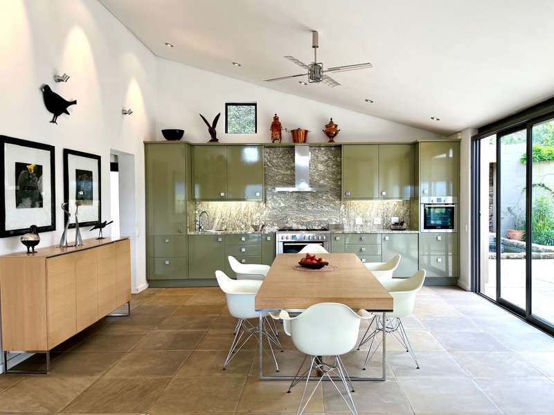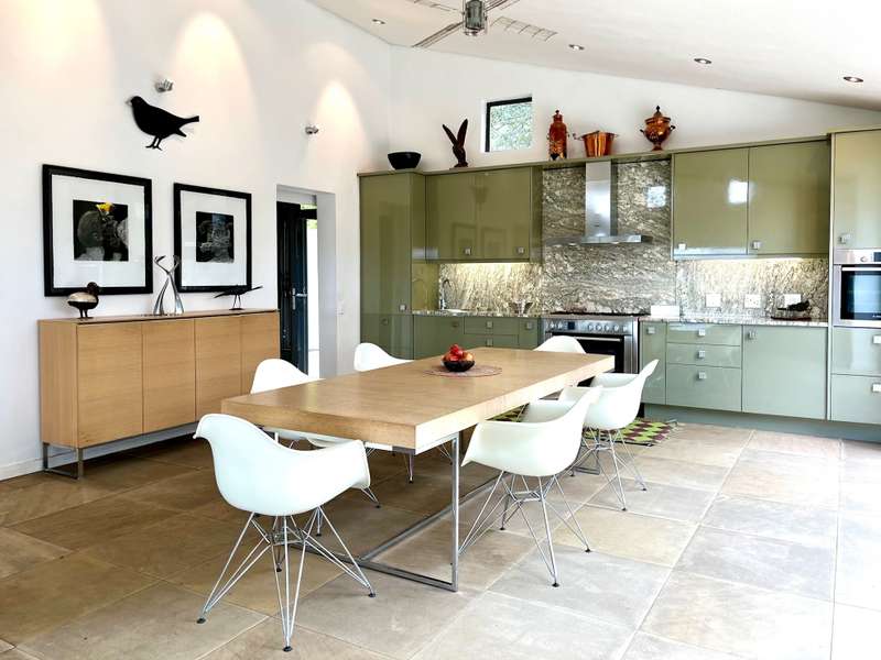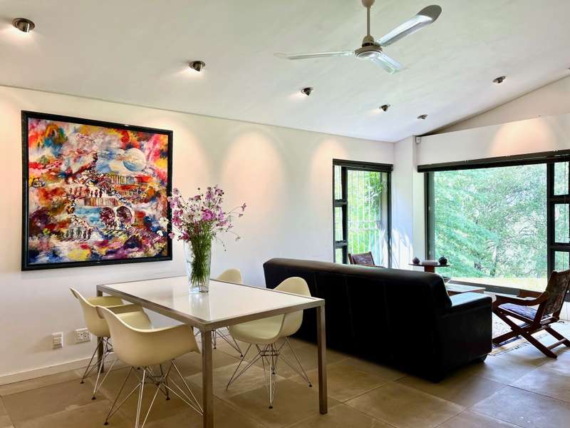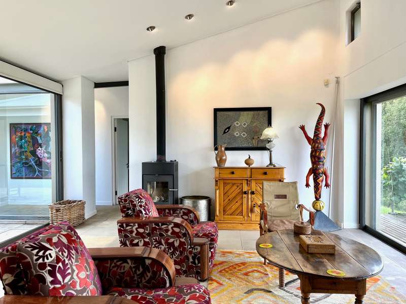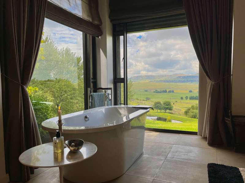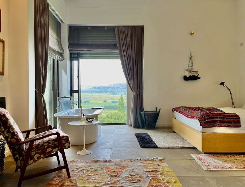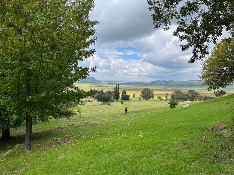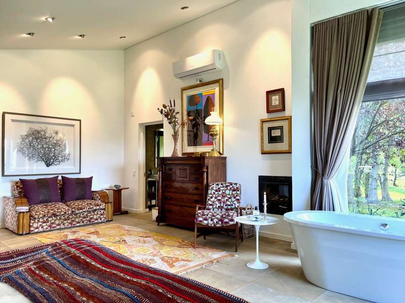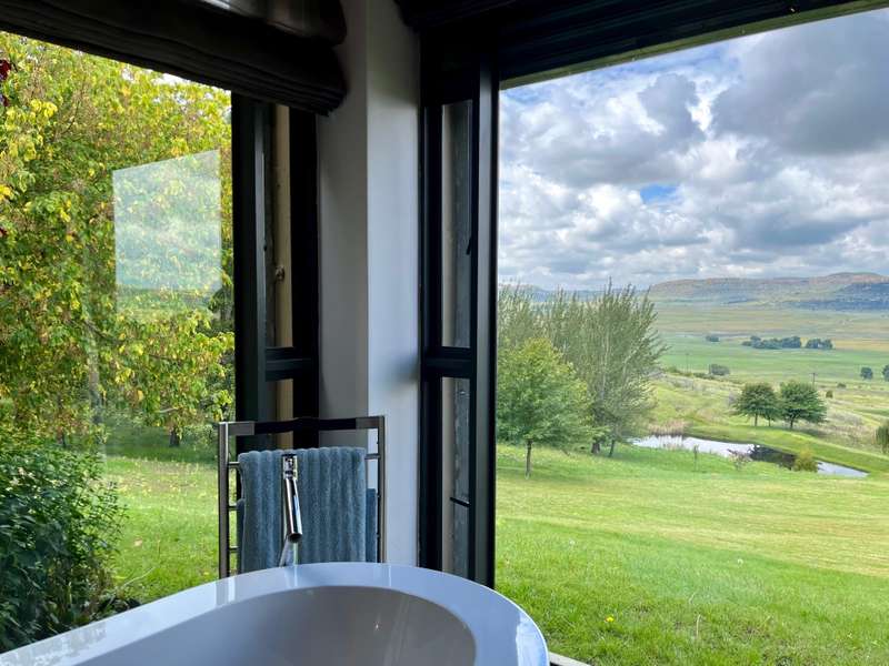 Perched dramatically on the side of an amphitheatre of the Grootnek mountain in the Eastern Free State, this architecturally designed 85-hectare property offers a truly extraordinary living experience. Masterfully hewn from the mountain, this modern sanctuary, with sandstone accents, provides spectacular panoramic views of the majestic surrounding mountain ranges. The main residence features two generous bedrooms, each with its ensuite bathroom, designed with luxurious comfort in mind, and thoughtfully positioned to maximize the breathtaking vistas. The open-plan living spaces create a remarkable sensation of "living in the sky," with the magnificent landscape unfolding before you from the deck and the enormous windows. A custom-built kitchen, a separate scullery, an outdoor pantry, a gas hob and an electric oven create the perfect space to cook and host dinner parties. A separate guest cottage provides additional accommodation with two more rooms, featuring ensuite bathrooms. The cottage has an open-plan living and dining area with a fitted kitchen. Discarded sandstone pillars frame a circular outside fireplace – a site for evening meditation that captures the magic of the unending countryside. The property boasts two dams and a reservoir, filled by three natural mountain springs that provide 27 000 litres of water per day, year-round. The springs feed into three water tanks which overflow into a reservoir. The garden, including the orchard with apple, cherry, lemon and persimmon trees, is serviced by a computerized irrigation system. The property's natural sandstone construction harmonizes beautifully with the surrounding landscape, creating a seamless connection between the built environment and the dramatic natural setting. This is more than just a home; it's an exclusive retreat that captures the essence of luxury living in one of South Africa's most picturesque regions. The property is situated between Rosendal and Ficksburg Architect - Johan Bergenthuin Featured in Visi Magazine February 2011 Underfloor heating throughout the main house and cottage Heated towel rails in all bathrooms in the main house and cottage Morso fireplaces in the main house and cottage Outside built-in braai at the guest cottage Outside fire pit Two fully-appointed staff accommodations Metal roller-shutter security over all windows and access points. No permanent residency on the farm. 3 phase electrical supply directly from Eskom Comprehensive plans and engineering specifications are available on request