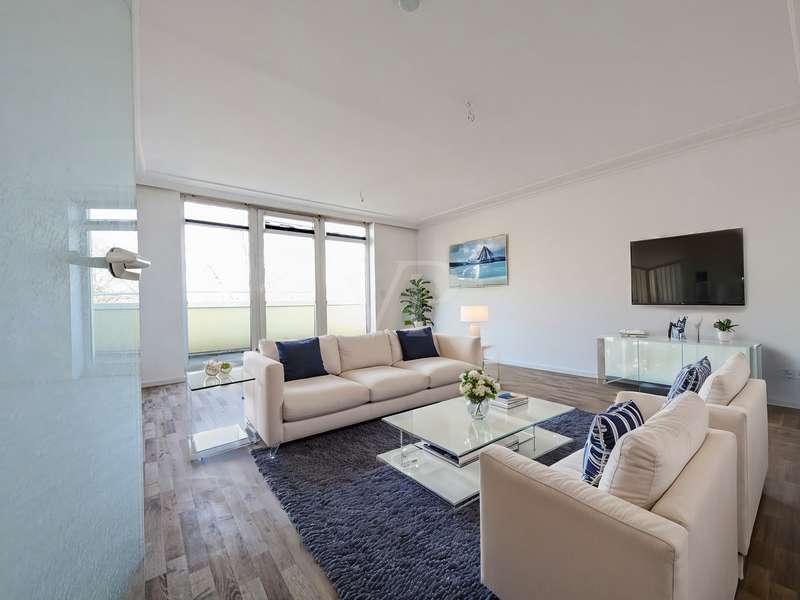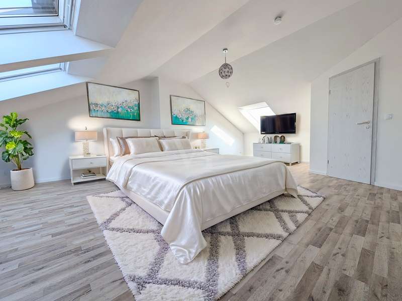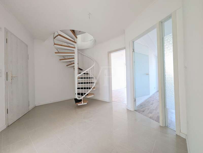 This spacious 4-room maisonette impresses with its brightness, modern furnishings and well thought-out room layout. It is located in a sought-after residential area of Cottbus. A comprehensive modernization/refurbishment has recently been completed. The apartment is located on the 3rd floor and in the attic. The spacious hallway leads into the light-flooded living room with access to the balcony. Another highlight is the bright study with a large window front, which offers ideal conditions for working from home or creative activities. The floor also has a cozy children's room, a separate kitchen and a modern bathroom with shower and bathtub. A washbasin combination has already been integrated here and is included in the offer. A spiral staircase leads to the top floor, where there is a spacious, air-conditioned and pleasantly bright living/sleeping area. If necessary, this very large room can be divided into two rooms with simple construction measures, creating a fifth room. There is plenty of natural light thanks to windows on both sides. There is another modern bathroom with shower and a practical storage room on this level. The entire apartment boasts high-quality materials: the walls are plastered and brightly painted, elegant, light-colored glossy tiles have been laid in the hallway and kitchen, while the living rooms are fitted with vinyl in an attractive wood look. The entire living space is heated via underfloor heating. A separate cellar compartment provides additional storage space. An optional parking space in front of the house can also be purchased. Be inspired by this unique maisonette apartment - arrange a viewing today!