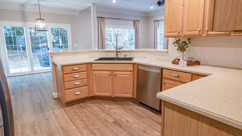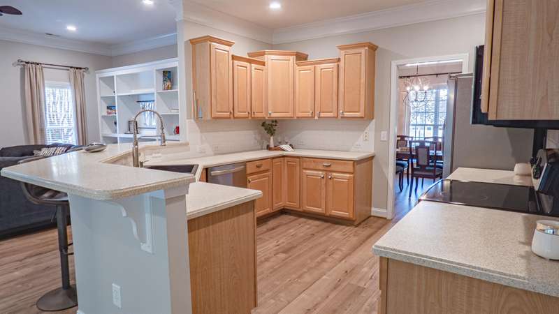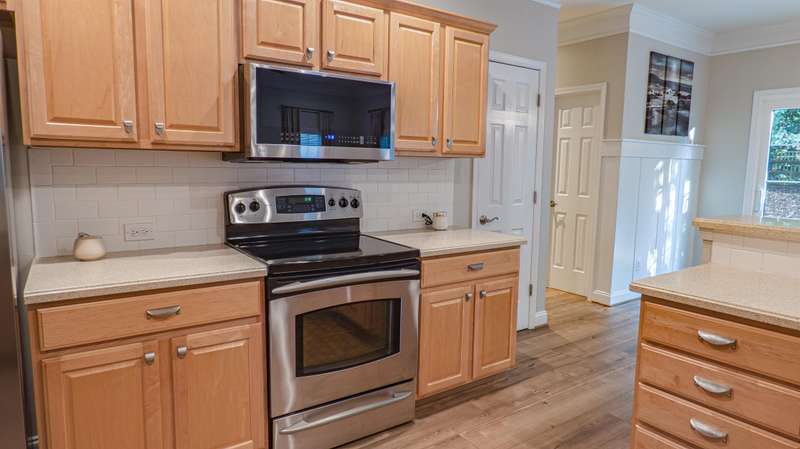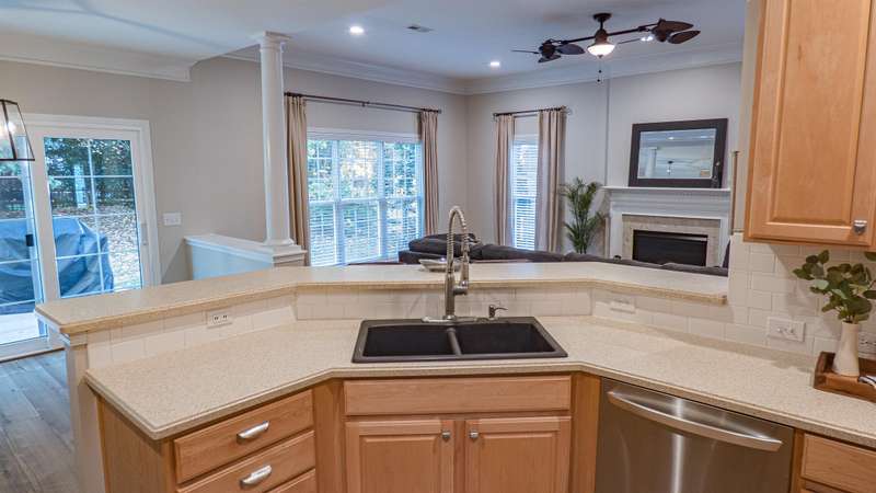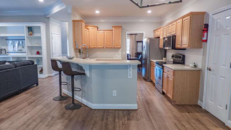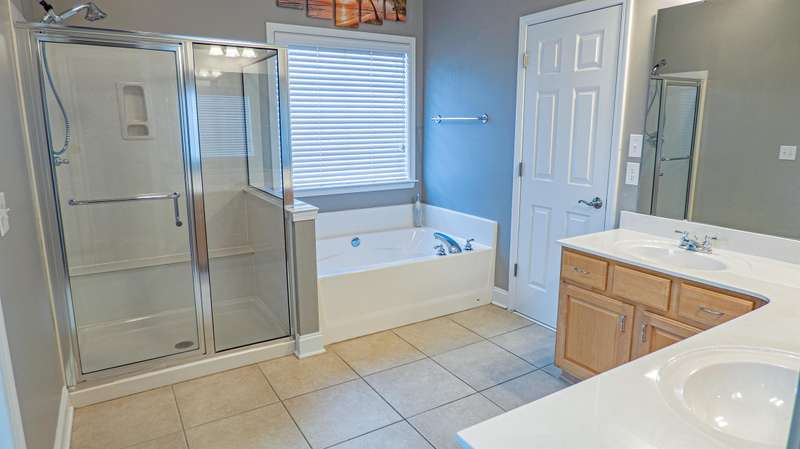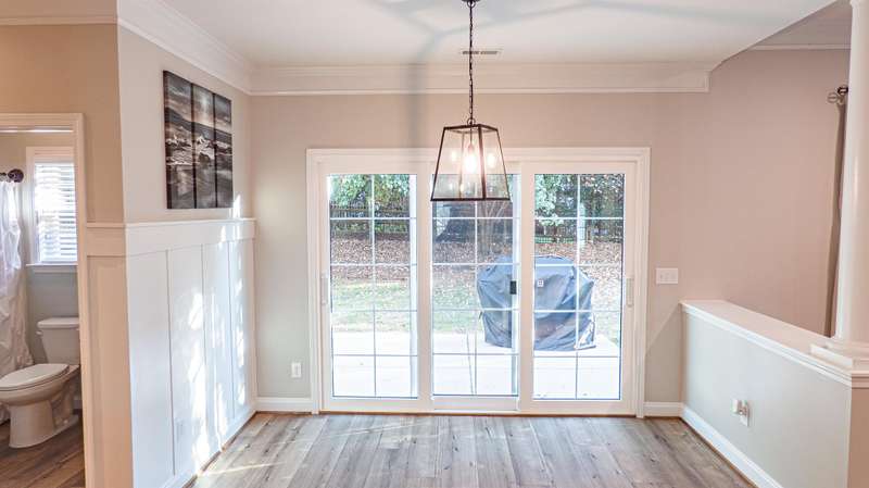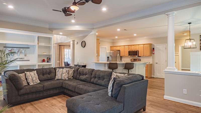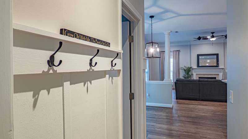 Welcome to this beautifully maintained home that blends comfortable living with thoughtful design details throughout. A covered front porch invites you inside, where a bright two-story foyer opens to spacious living areas filled with natural light. The main level features wide vinyl plank flooring and two-piece crown molding for a cohesive, stylish look. The great room, highlighted by a gas fireplace, built-in bookshelves, and dual ceiling fans, flows seamlessly into the eat-in kitchen, creating an inviting open-concept layout. The kitchen offers solid surface countertops, tile backsplash, a pantry, and a refrigerator that conveys with the home. The large dining room offers an elegant dining option while the breakfast area off the kitchen features a three-panel glass sliding door (two panels are operational) that opens to a concrete patio to the fully fenced, private backyard backed by mature trees. A large guest bedroom and a full bath on the main floor provides flexibility for visitors or multi-generational living. The hall from the garage entry features board-and-batten trim with hooks for daily essentials, while the garage offers sealed flooring and built-in shelving for additional storage. Upstairs you will find a huge bonus room?currently styled as a theater room complete with blackout drapes and color-changing lighting to create an immersive viewing experience. The primary suite features a tray ceiling, two-piece crown molding, a decorative niche, and a ceiling fan. The primary bath includes a separate soaking tub, an enlarged walk-in shower with bench, a private water closet, and a large walk-in closet with walk-in attic access for convenient storage. One of the two secondary bedrooms upstairs has direct access to the hall bath, which offers dual sinks and a linen closet. The laundry room is equipped with an included washer and dryer, built-in cabinetry, and a sliding barn door for a stylish touch. This home offers a comfortable floor plan, flexible living spaces, and charming details inside and out, all in the desirable neighborhood of Laurel Park - offering a clubhouse, two pools, pond, playground, and tennis courts. Located about 5 minutes from I-85 and the shopping and restaurants offered at the Afton shopping centers.