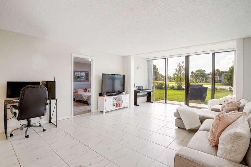 ALL AGES WELCOME****Beautiful lakefront condo on first floor offers stunning waterviews. Watch the gorgeous sunset from your livingroom. Plenty of naural light. Updated kitchen, freshly painted in neutral colors, laminate floors in bedrooms, tile in main areas. Close to pool. Manned gate and roving security. Association has good reserves. Close to restaurants, beaches, hospitals, airport, etc