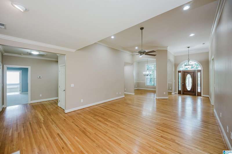 Amazing floorplan with main level living plus versatile spaces upstairs and down. This full brick beauty sits on a half acre lot in the desirable Woodlands of Hoover. The main level includes a 2 car garage, master suite with a sitting area and glamorous bath, kitchen with all the cabinets and counter space you could need, a huge pantry, laundry room with sink, dining room open to the vaulted greatroom, office nook, bedrooms 2 and 3 and a full bath. Off the living area is a spacious screened porch overlooking a very usable yard with privacy and a pretty wooded view past the level landscaped area. You will find a big bonus room up perfect for a craft room, man-cave or bunk room, plus the daylight basement with a den, bedroom and bath-ready for in-laws, guests or teens. Walk right out to the peaceful quiet covered patio with a swing. Quality finishes, gorgeous hardwoods, neighborhood pocket park, streetlights plus a 3rd garage bay down for your workshop & storage. A must see!