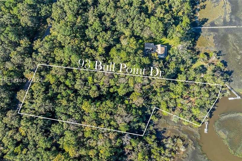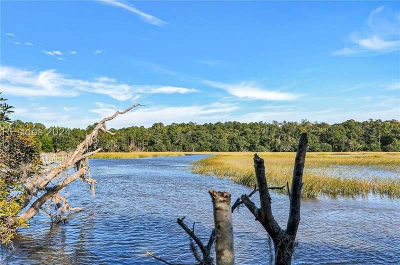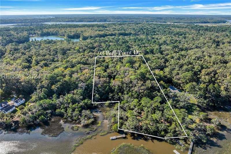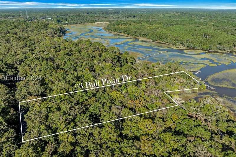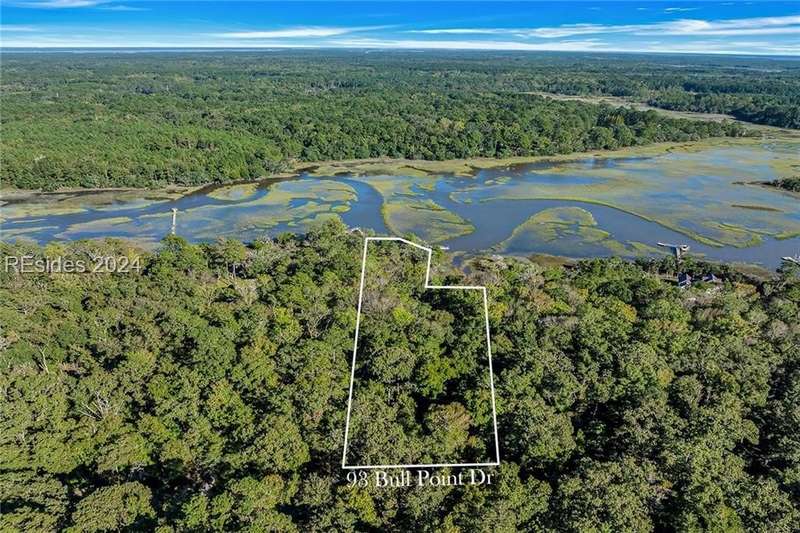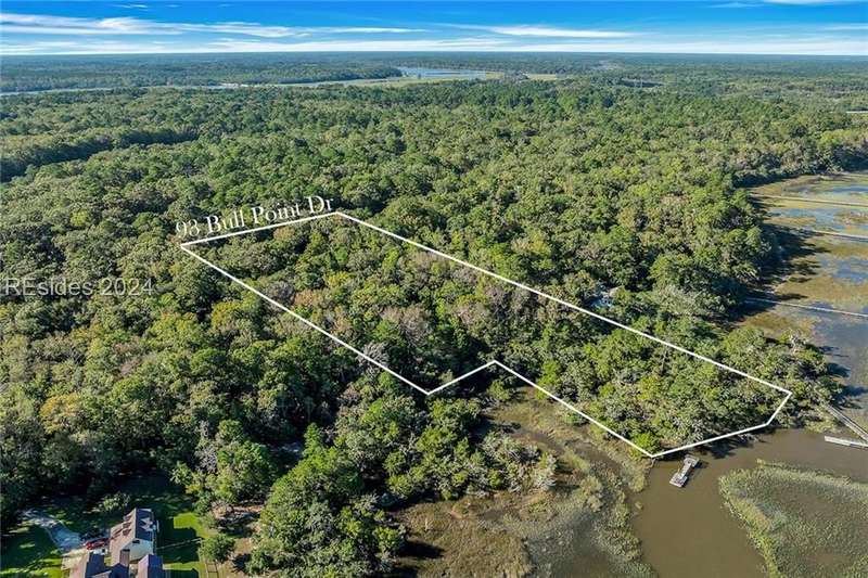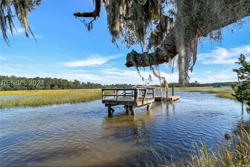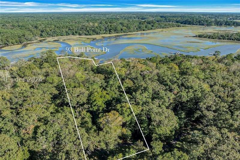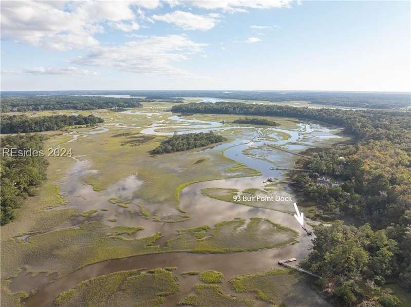 Great opportunity to build your dream home on one of the finest homesites in the coveted community of Bull Point. Eastern Views of Huspah Creek w/ 2.23 acres, many Live Oaks draped in Spanish Moss. Easy access to view on a wide path to the water and private dock. No timeframe to build. Master Dock plan for Bull Point shows approx. 1.6 feet of water at median low tide. Short boat ride to the deep waters of Huspah Creek. Bull Point has many lakes, pickleball courts, deep water docks, boat storage, pool, leisure trails and security gate. Certified Natural Wildlife Habitat by NWF