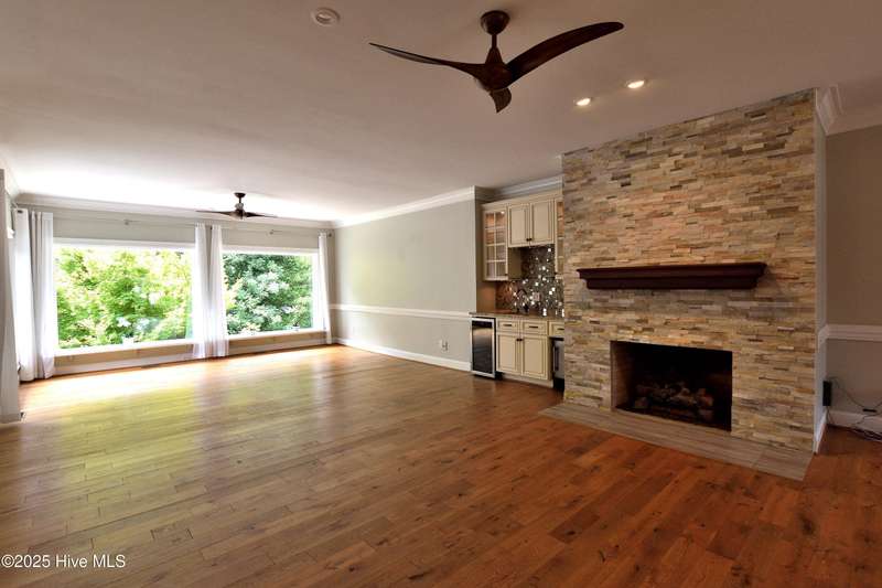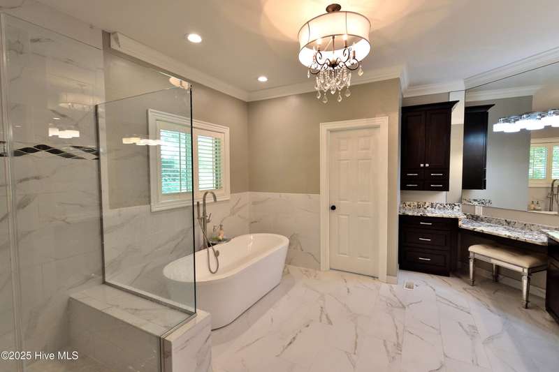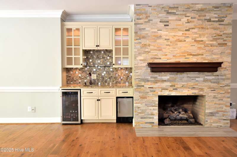 This stunning custom-built home blends timeless craftsmanship with modern upgrades throughout. Featuring custom woodwork, hardwood floors on the main level, and an open-concept floor plan this home was designed with both comfort and entertaining in mind. The great room is large enough for 2 sitting areas and boasts a beautiful stone fireplace, custom wet bar with built-ins & icemaker & refrigerator and beautiful light from the large windows. Enjoy a fantastic dinner in the formal dining room. The updated kitchen has a new gas stove & stainless-steel refrigerator & dishwasher create an inviting space for gatherings. The main-level primary suite offers two spacious custom designed walk-in closets and a luxurious bathroom with a rainforest shower, beautiful soaking tub, double vanities, and a makeup vanity. Upstairs, you'll find a large media room complete with a mounted tv, reclining leather couches, a mini-refrigerator, custom cabinets & bookcases; plus three additional bedrooms-one currently used as a billiards room and 2 full bathrooms. Two bedrooms share a jack & jill bathroom & have walk-in closets. Additional features include a study/home office, new hot water tank, side-entry garage, new roof and gutters 2018, and a professionally landscaped yard. Enjoy the outdoor living with this private backyard, deck with new Trex decking and railings, and a new concrete walkway leading from the driveway to the heated, unfinished basement with exterior access. There are 2 walk-in attic storage rooms. This beautiful custom-bult home is filled with thoughtful upgrades and timeless charm-don't miss your chance to make it yours! Note: HOA is optional and $70.00 per year.