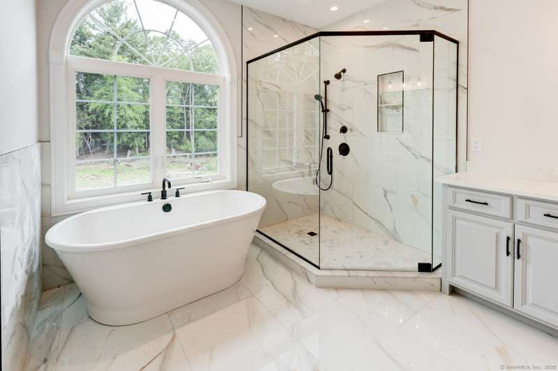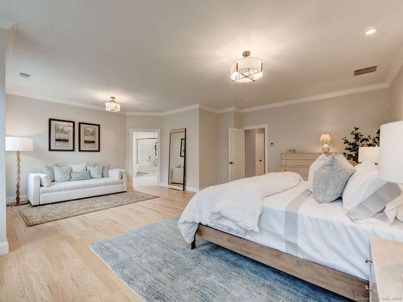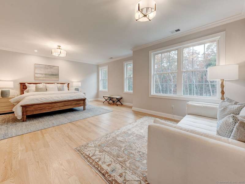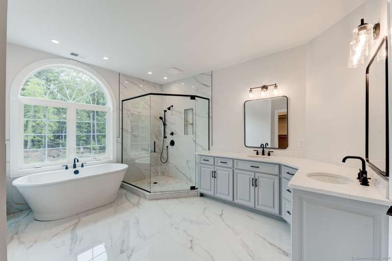 Completed New Construction by premier builder, Reggie Jacques, this picture-perfect Colonial combines exceptional craftsmanship, luxury finishes, & an unbeatable location. Set on a private cul-de-sac, the home makes an unforgettable first impression w/ its elegant stone facade, wraparound porch, & over 2 acres of beautifully landscaped grounds w/ irrigation system. Step inside to a grand two-story foyer that opens to an impressive, light-filled layout. Formal living & dining rooms offer timeless appeal, while the dramatic family room steals the show w/ soaring ceilings, a wall of windows, and striking millwork surrounding the fireplace. The designer kitchen is the centerpiece of the home, featuring custom ceiling-height cabinetry, quartz countertops, a statement hood, black hardware, & a spacious island-perfect for entertaining. The main level also offers a flexible bedroom suite, ideal for guests or a home office. Upstairs, the luxurious primary suite provides a private retreat with a