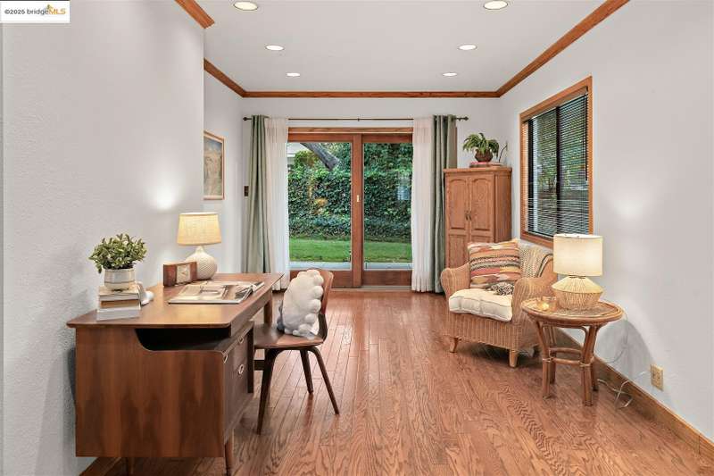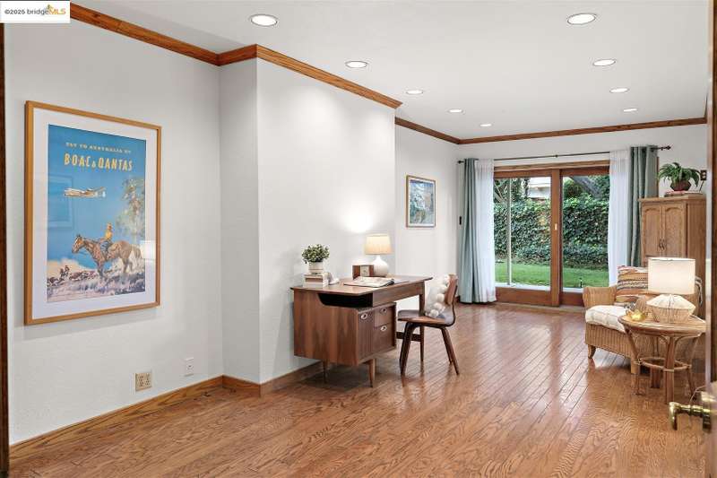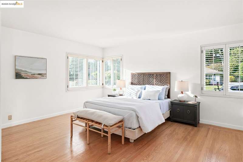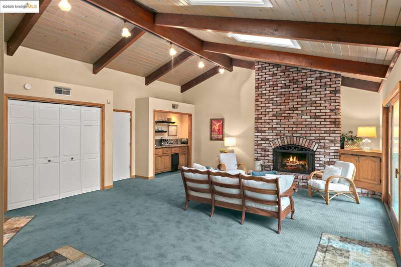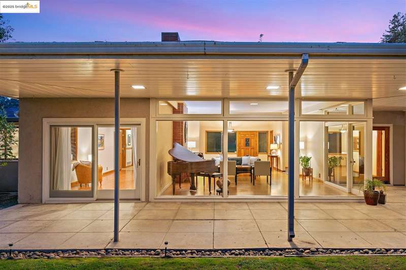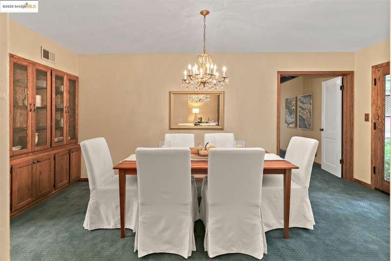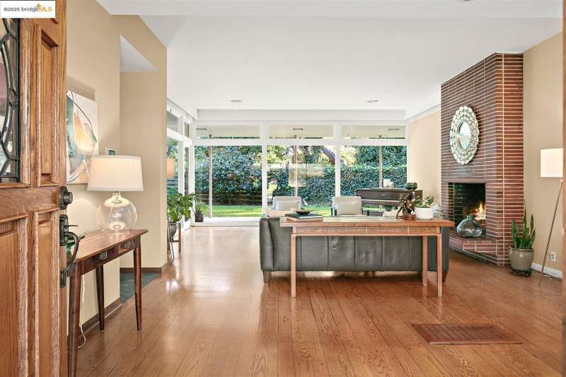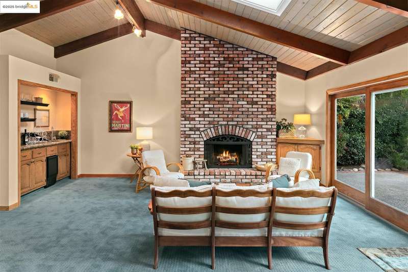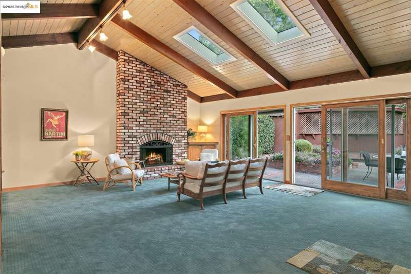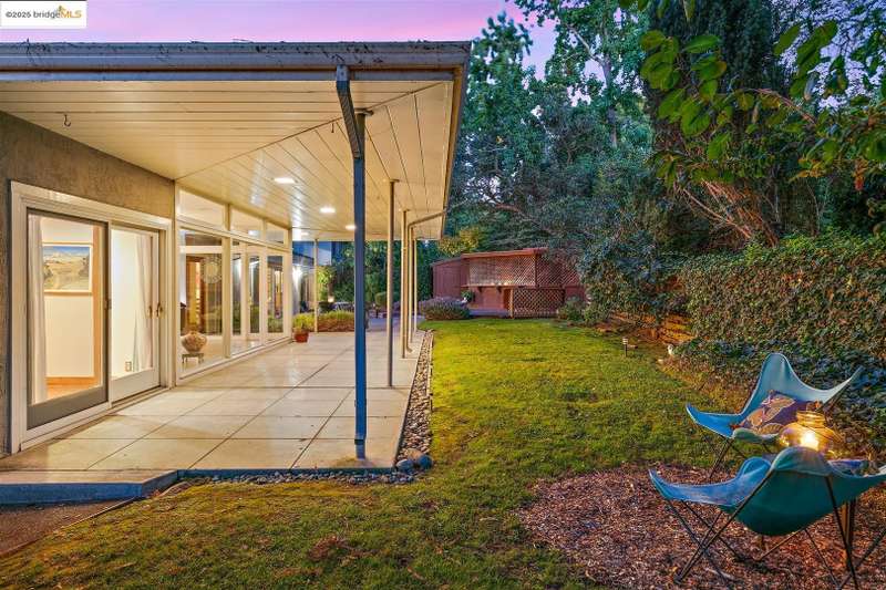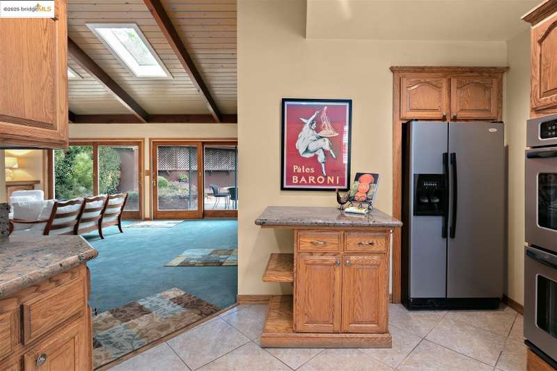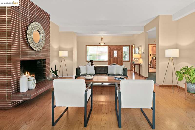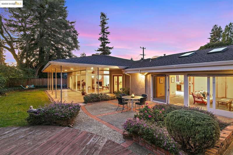 <strong>Stunning Bay-O-Vista Mid-Century Retreat – An Entertainer’s Dream</strong> Nestled in a peaceful corner of Bay-O-Vista near the entrance to Lake Chabot Regional Park, this beautifully maintained mid-century home combines timeless design with modern updates and exceptional indoor-outdoor living. Step through the inviting covered front patio into an expansive living room featuring a grand fireplace, random plank hardwood floors, and a dramatic wall of windows overlooking the lush backyard. The updated kitchen is a chef’s dream with stone countertops, stainless steel appliances, skylights, recessed lighting, and a five-burner built-in cooktop, opening to a comfortable eat-in area and a formal dining room with built-in cabinetry. Perfect for entertaining, the home offers generous gathering spaces, including a large family room with vaulted wood ceilings, skylights, a full bar, and a second fireplace. Sliding glass doors from both the family room and third bedroom create a seamless flow to the private, professionally landscaped backyard — complete with a spacious patio, grassy area, mature lemon tree, and a covered outdoor fireplace. This home features three bedrooms and three bathrooms*, including a spacious primary suite with three closets, a large vanity, and a walk-in shower. The attached two-car garage offers laundry facilities, a workshop area, and ample built-in storage. Tucked away in a tranquil enclave yet offering instant access to I-580, this home is ideally located near downtown San Leandro, the Oakland Zoo, Sequoyah Country Club, and Redwood Canyon Golf Course. Experience the best of Bay-O-Vista living — style, space, and serenity all in one extraordinary home. *Published Bath count and Square Footage differ from the public record. Buyer to investigate with the city. Neither seller nor listing agent has verified the accuracy of any of these sources of information.