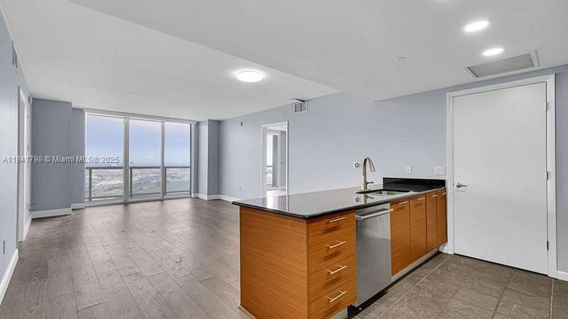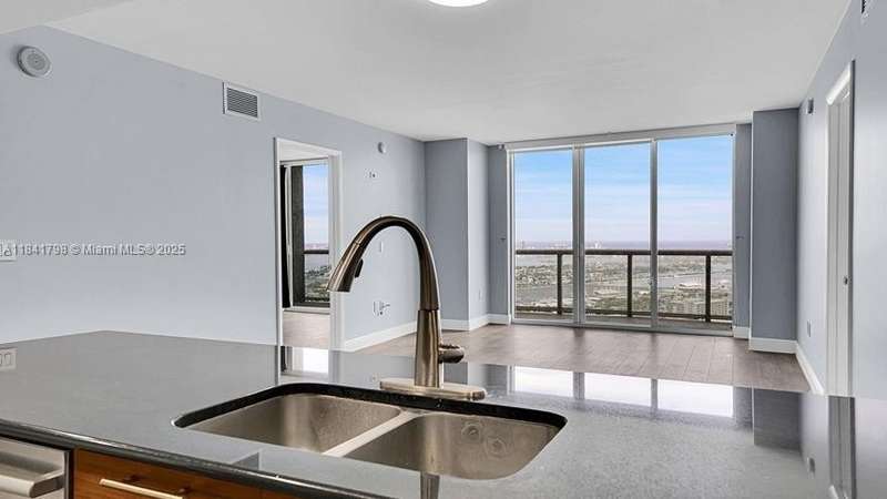 Top Floor Unit with Direct Bay View. 2 Split Beds 2 Full Baths Plus Den (13 X 10). This freshly painted penthouse offers breathtaking views of Biscayne Bay, Miami Beach, and sunrise skies. Features include granite counters, stainless steel appliances, new AC, electric blinds, and more. Building offers Basic TV Cable / internet, water, garbage, one assigned parking, EV Charger, and Amenities: infinity pool with cabanas, spa, Yoga Classes - Pilates studio, gym, lounge, business center, 24/7 concierge, and valet. Pet-friendly. Within walking distance from Kaseya Center, Whole Foods, Free transportation, and top dining. Owners require Renter’s Insurance