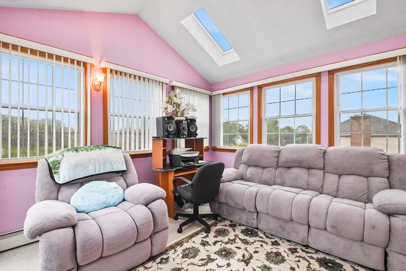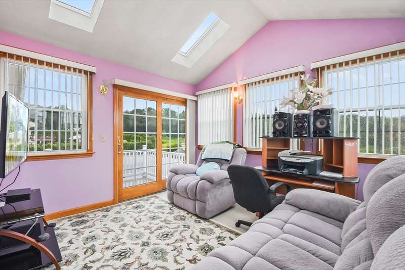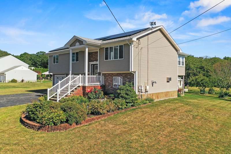 Experience comfort, space, and timeless charm in this thoughtfully built 3-bedroom, 2.5-bathroom home on over half an acre of land in sought-after Seekonk. From the moment you enter, you're greeted by the warmth of refinished hardwood floors and a layout designed for both relaxation and entertaining. The main level features a spacious living room, kitchen, and formal dining area that opens into a stunning sunroom with skylights. The sunroom leads out to a private deck overlooking a large yard with fruit trees and raised garden beds. Additional highlights include a two-car garage, brand-new roof, and solar panels that produce energy credits, adding value and savings. Upstairs, you'll find three generously sized bedrooms, including a peaceful primary suite with a private en-suite bath. The finished lower level includes a second kitchen, laundry area, and open space perfect for guests and recreation.