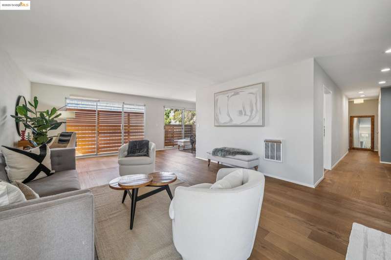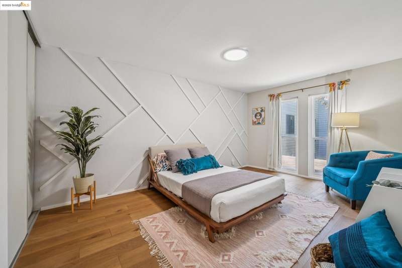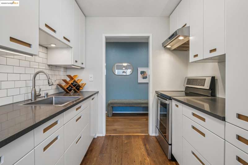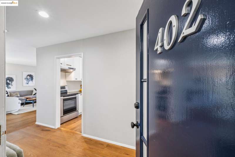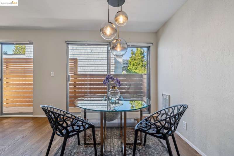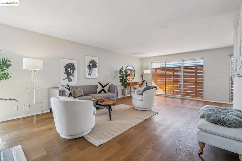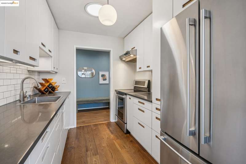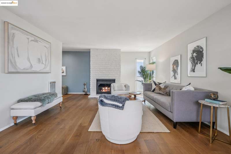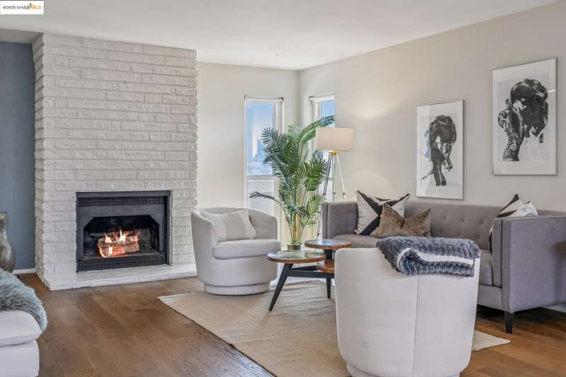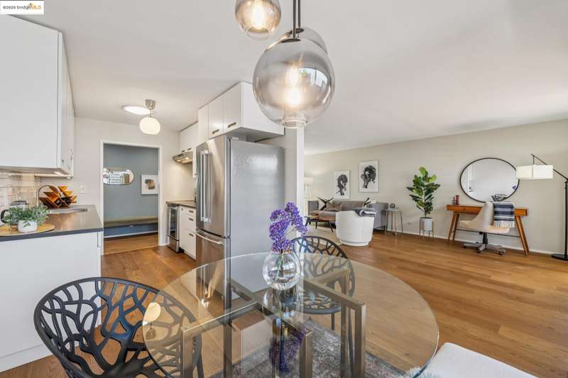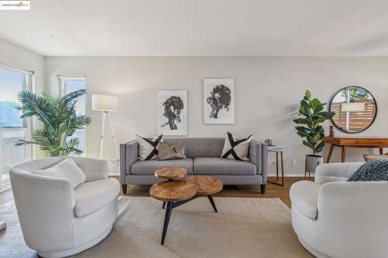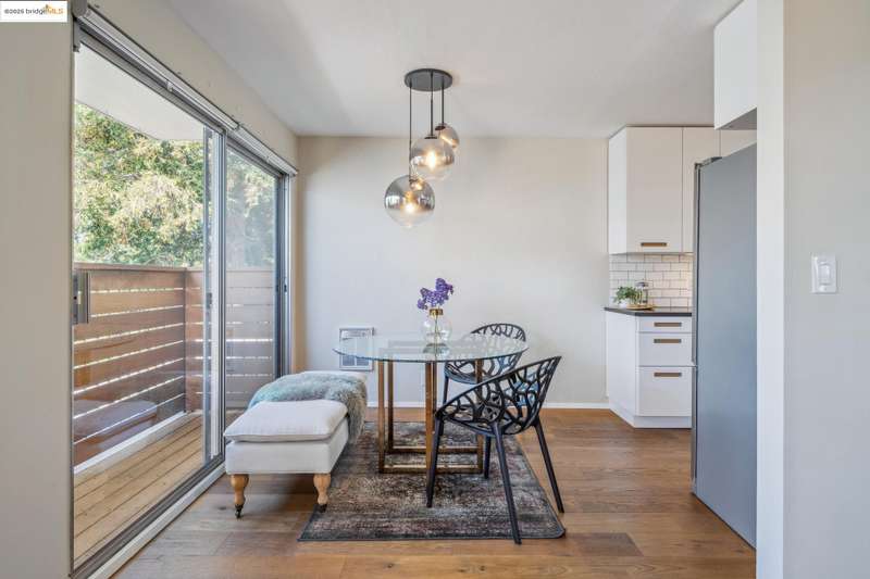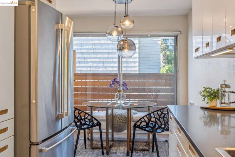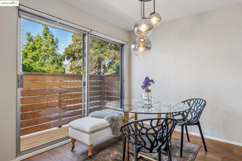 Welcome to the Penthouse. This refined residence offers an exceptional blend of sophisticated design, expansive living spaces, and modern finishes, all just blocks from Lake Merritt. Thoughtfully remodeled, the kitchen pairs sleek modern updates with the timeless warmth of natural oak floors that flow throughout the home. The generous living room, complete with a charming brick fireplace, creates a welcoming centerpiece. An elegant dining area, accented by striking modern lighting, provides the perfect setting for gatherings large or small. The crown jewel of this home is its expansive penthouse rooftop deck, encircled by a custom redwood fence that ensures both privacy and style; an ideal space for al fresco entertaining, while taking in neighborhood views. The oversized primary bedroom is equipped with an en-suite half-bath and a walk-in closet. Additionally, the oversized second bedroom boasts multiple double slider closets. Both bathrooms feature modern vanities, lighting, and mirrors. Skylights throughout bathe this penthouse unit in abundant natural light. Convenience is woven into the design, with additional ample closets off the foyer for organized storage. Close to all the restaurants and shops along Grand and Lakeshore. Blocks from Whole Foods and access to nearby I-580.