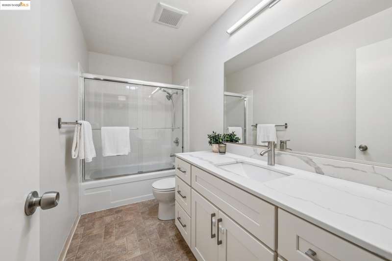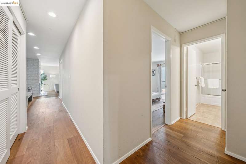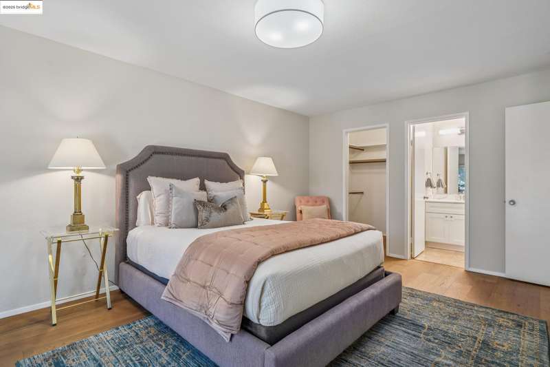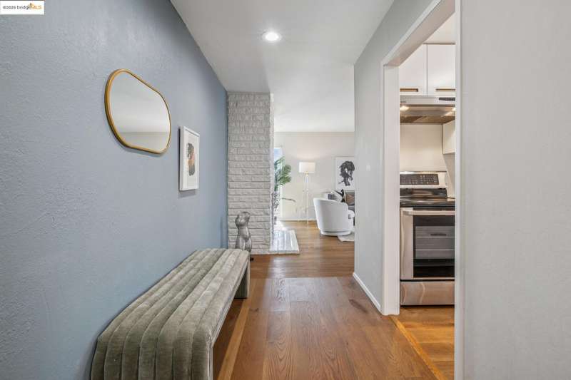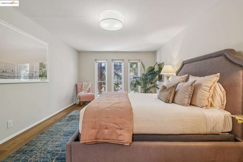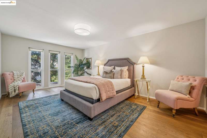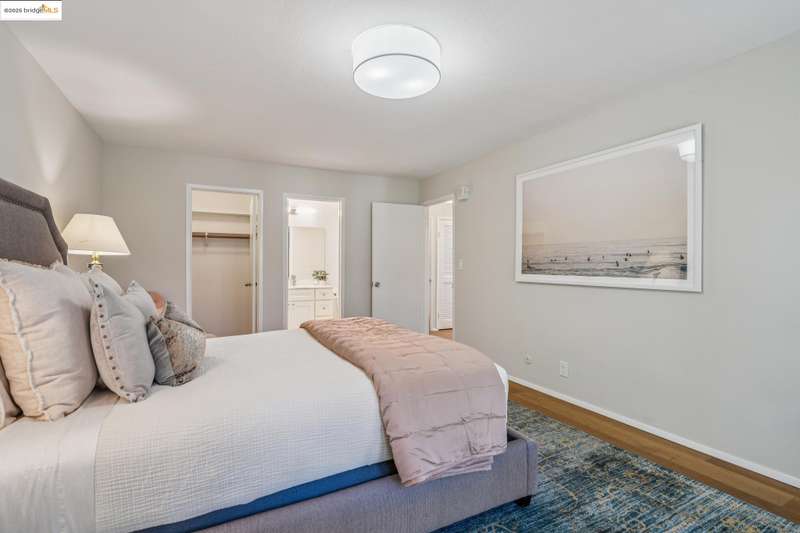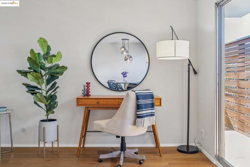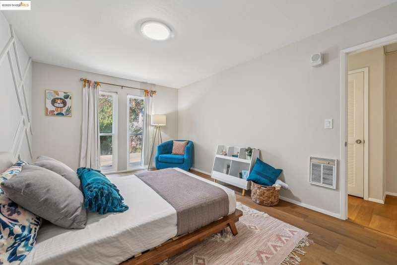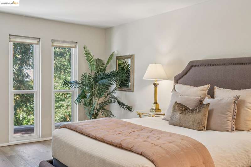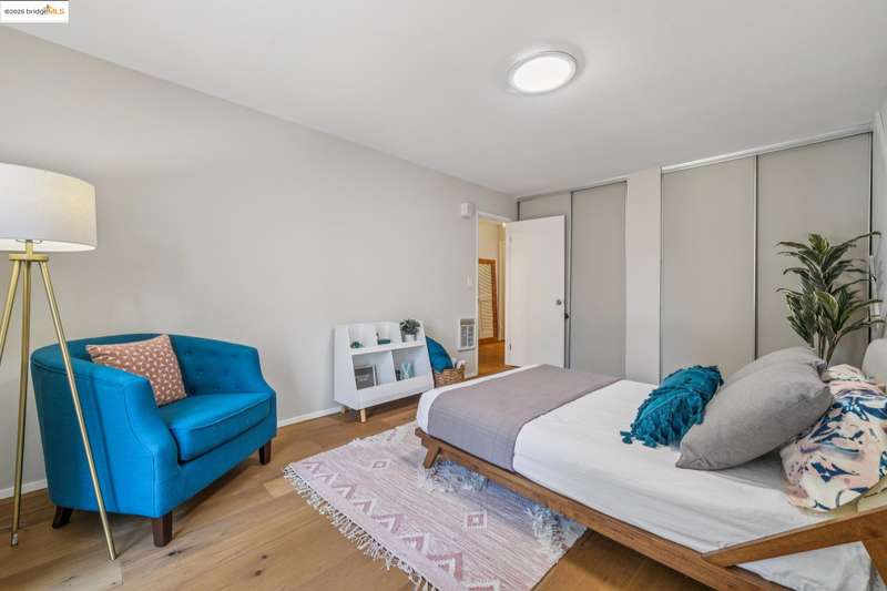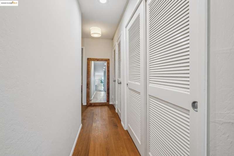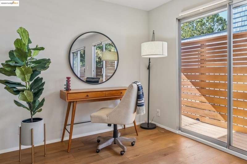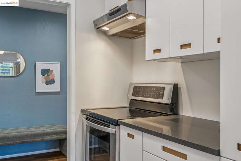 Welcome to the Penthouse. This refined residence offers an exceptional blend of sophisticated design, expansive living spaces, and modern finishes, all just blocks from Lake Merritt. Thoughtfully remodeled, the kitchen pairs sleek modern updates with the timeless warmth of natural oak floors that flow throughout the home. The generous living room, complete with a charming brick fireplace, creates a welcoming centerpiece. An elegant dining area, accented by striking modern lighting, provides the perfect setting for gatherings large or small. The crown jewel of this home is its expansive penthouse rooftop deck, encircled by a custom redwood fence that ensures both privacy and style; an ideal space for al fresco entertaining, while taking in neighborhood views. The oversized primary bedroom is equipped with an en-suite half-bath and a walk-in closet. Additionally, the oversized second bedroom boasts multiple double slider closets. Both bathrooms feature modern vanities, lighting, and mirrors. Skylights throughout bathe this penthouse unit in abundant natural light. Convenience is woven into the design, with additional ample closets off the foyer for organized storage. Close to all the restaurants and shops along Grand and Lakeshore. Blocks from Whole Foods and access to nearby I-580.