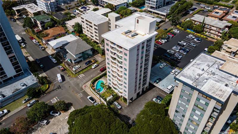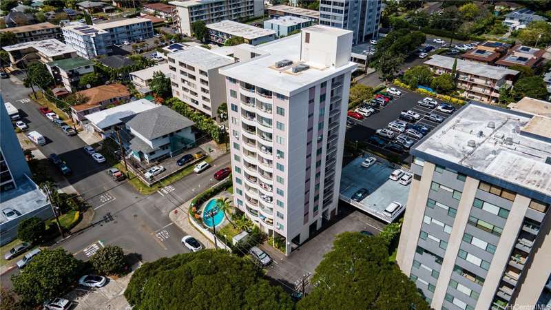 Beautiful 2 bedroom/1 bath corner unit at the "Punahou Manor" with spectacular city, mountain, Manoa Valley, ocean views and recently redone! Located in Makiki-Punahou neighborhood - close to two major hospitals, art museums, downtown Honolulu, freeway onramps, supermarket, Punahou School and Maryknoll School. Beautiful lanai with sunset views with washer and dryer in unit. 1 covered parking stall. Includes refrigerator, washer and dryer, drapes, range/oven.