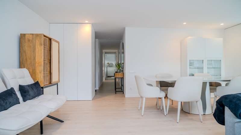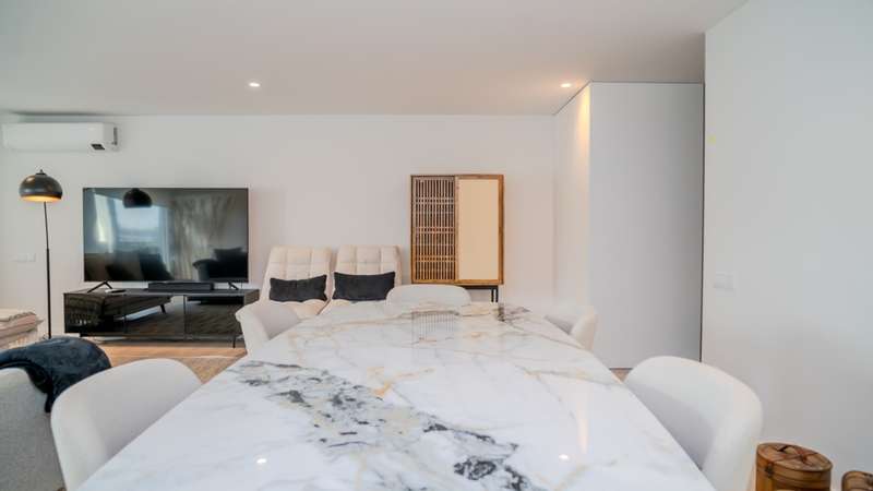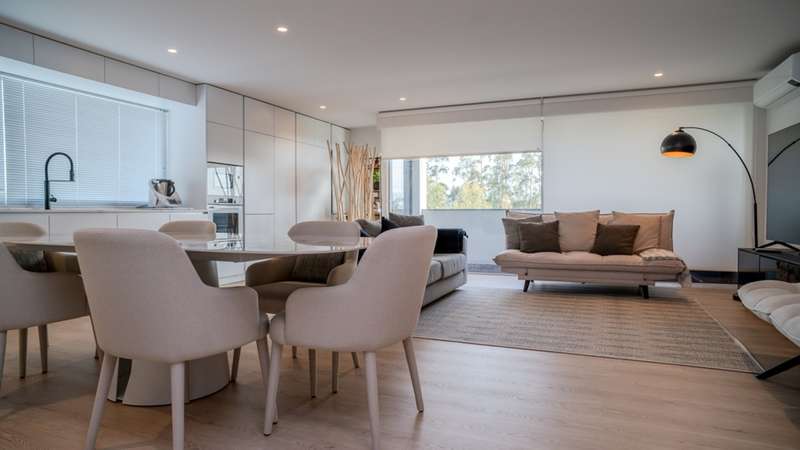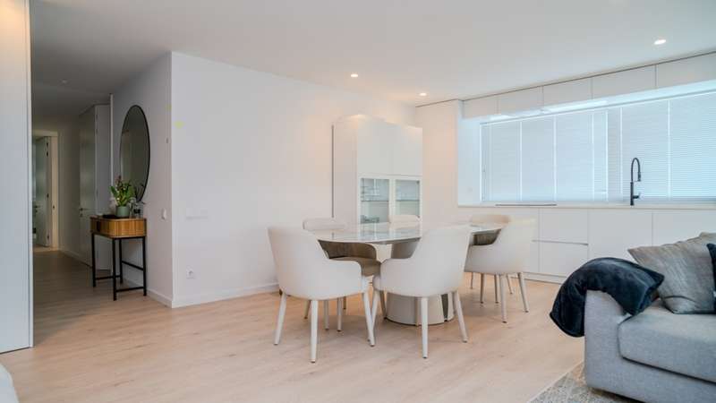 Fantastic four-bedroom apartment with two fronts - east and south - in the prestigious Maia Design II building, located in a central area of Maia that is undergoing urban consolidation. This semi-new apartment has very large spaces and lots of light. Its social area consists of a living room with a fully equipped open-plan kitchen, as well as a dining area. This space also has access to a magnificent south-facing balcony. The private area of the house consists of four bedrooms with built-in closets, one of which is a suite with a dressing room, plus a full bathroom and a service bathroom. Very well situated in a central area of Maia, this apartment has parking for 2 cars, for greater comfort and convenience. Close to Maia's main public services, as well as the transport network of the Porto metropolitan area, as well as a hypermarket and several convenience stores. 2 minutes from the center of Maia and 7 minutes from Francisco Sá Carneiro International Airport. CHARACTERISTICS:Area: 142 m2 | 1 530 sq ft Bedrooms: 4 Bathrooms: 3 Garage: 2 Energy efficiency: A FEATURES: Four bedrooms; One suite; Air conditioning; Solar panels;