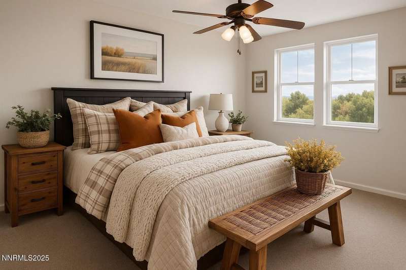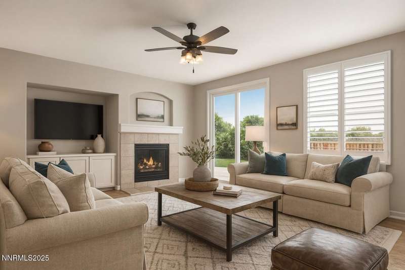 Welcome to your dream home in Wingfield Springs! Nestled in a serene Sparks community near Red Hawk Gold Course, this stunning 4 bedroom, 3 bathroom home offers over 2,500 Sq ft of living space. Step inside to a grand living/dining area with high ceilings and plenty of light. The kitchen boasts a breakfast bar, pantry, and sunny nook that flows into the family room where there's a cozy gas-log fireplace. A main-level guest suite adds convenience and flexibility for visitors or multi-generational living. Upstairs discover a spacious loft and an additional full game/media room...perfect for movie nights, a home office or playroom. The primary suite is your personal retreat, featuring a garden tub, walk-in closet and lovely views. Outside, enjoy an expansive level landscaped yard with mature fruit trees, and plenty of space for gatherings, gardening or just a quiet afternoon relaxing. With modern utilities, thoughtful upgrades and a community that balances tranquility with accessibility, this home is truly move-in ready.