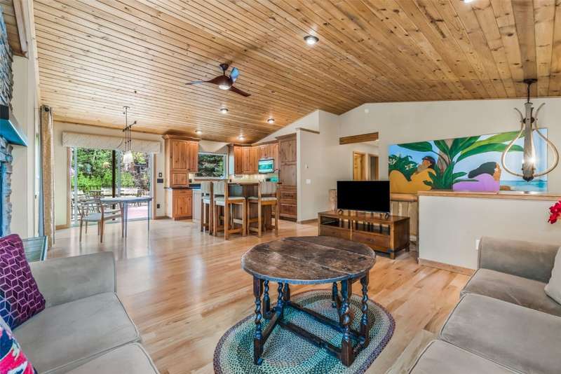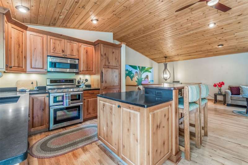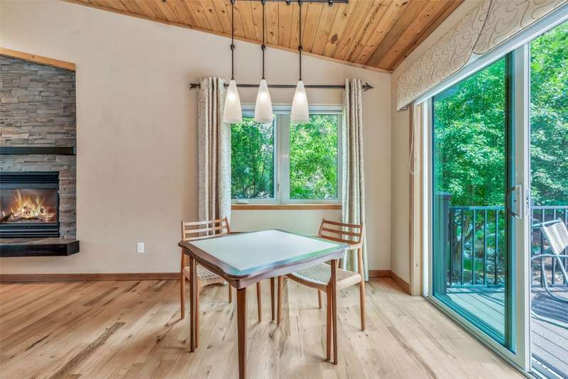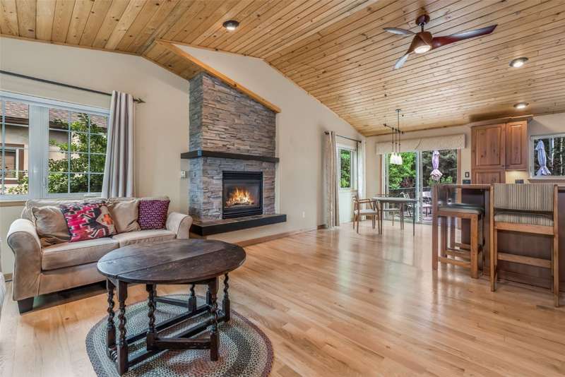 This 2,004 square foot, 4 bedroom, 3 bathroom, half duplex is located within the coveted and established Bear Creek neighborhood in the heart of the mountain area. The meticulously maintained home has an open floor plan with lofted tongue and groove wood ceilings, hardwood floors, a magical back deck with xeriscaped yard, and a covered front porch with ski resort views. The living room features a cozy, stacked rock, gas fireplace to keep you toasty warm that seamlessly connects to the dining area and gourmet kitchen. The kitchen has custom cabinetry, an island with bar seating, a fleet of stainless steel appliances and granite counters. The back deck is where you will find your own private oasis, with mature foliage and landscaping to provide you with privacy for dining alfresco or simply enjoying the fresh alpine air. Main floor living is easy with a primary bedroom with ensuite bathroom, plus two additional bedrooms and shared bath, just down the hall. On the lower level is a large family room/flex space, a fourth bedroom, full bathroom, and laundry room. The HUGE, oversized, heated, two car garage has all the space to store gear and toys needed for a proper mountain lifestyle and more. The Bear Creek neighborhood, with community pond and trails, is located just 1 mile away from the Steamboat Ski Resort and has easy access to the Core Trail and the bus route.