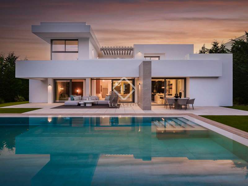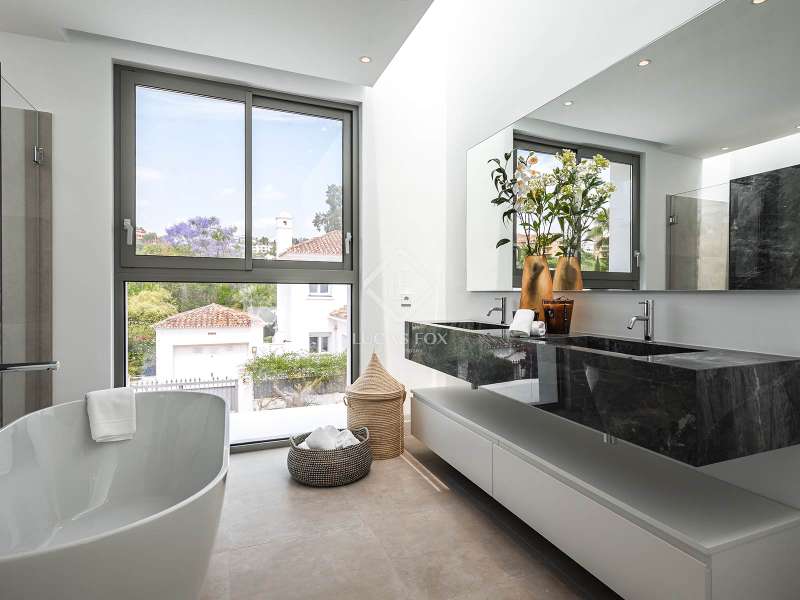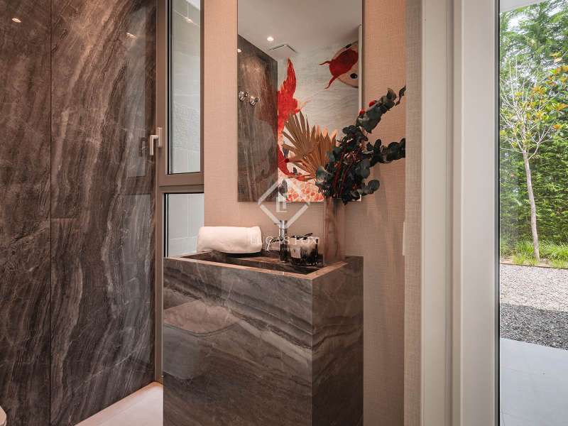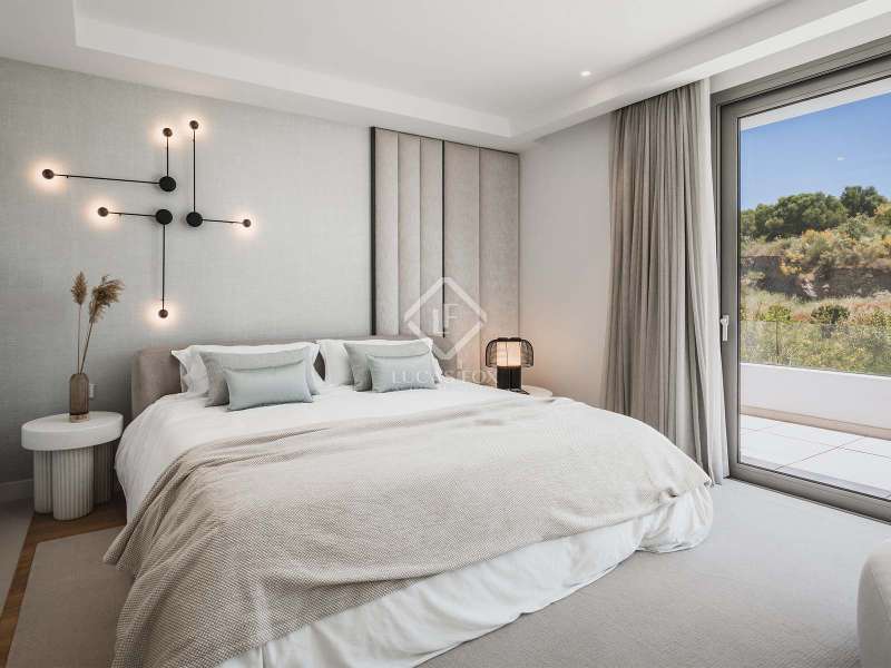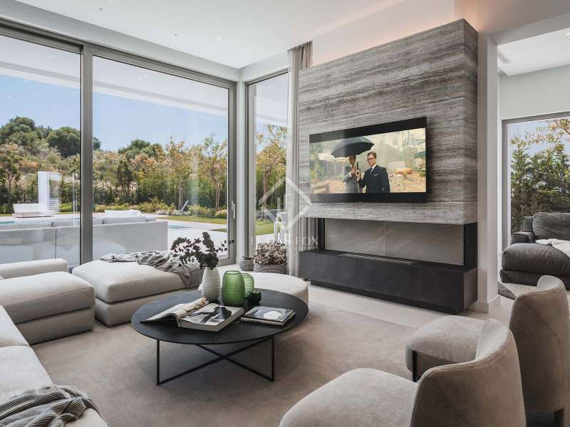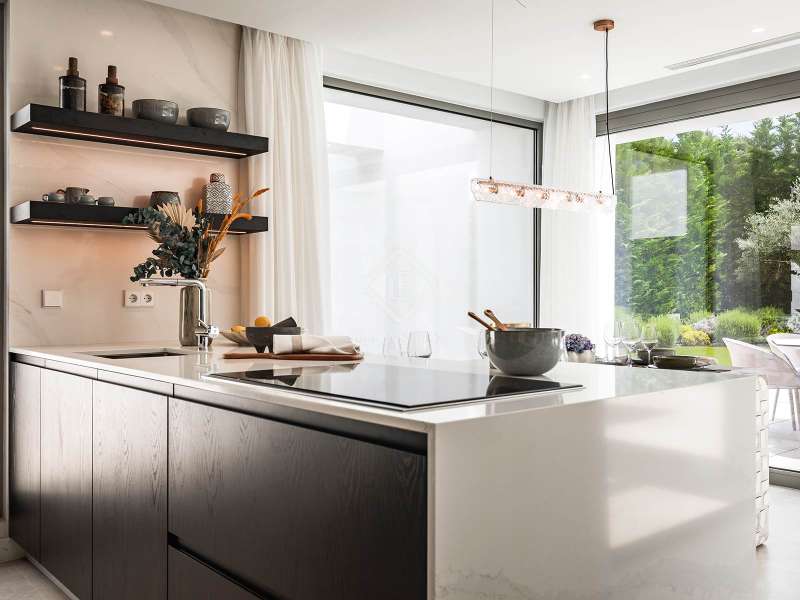 King's Hills comprises nine detached villas that vary slightly in terms of size, style and layout, but all built in harmony with the same specifications and finishes. Each villa is built over three floors and has a southerly to south-easterly aspect, comprising a ground level with a spacious and stylish open-plan living and dining area with a modern practical kitchen with high-end German appliances, combining cutting-edge technology with warm sculptural design. The living area has access to the terrace and the private garden and swimming pool. The bedrooms have en-suite bathrooms, electric blinds and wooden floors, giving the homes a feel of warmth and elegance, combining practicality and comfort. The spacious multipurpose basement can be fully personalised with the possibility to build further bedrooms, gym, games room, study, etc. In addition, there are two covered parking spaces for each villa. Light and airy interiors with a fireplace, stone and wood features can be found in these attractive homes. Floor-to-ceiling windows offer optimum light and create a continuous space between the outdoors and indoors. All the villas are finished to the highest standards with luxury fittings and top quality materials. The warm colours and natural materials used give these exceptional homes a modern look. Sliding doors seamlessly merge the outdoors with the indoors, allowing the spaces to be flooded in natural light, creating a relaxing, laid-back yet glamorous atmosphere. The wood flooring in the bedrooms give the villas a feel of warmth and elegance. Modern lines and crisp eye-catching designs, grey marble tiling, chrome fixtures, Villeroy & Boch sanitary ware, beautiful lighting and minimalist decor combine beautifully to give the bathrooms a neat contemporary finish. The master bathrooms all have elegant and sophisticated stand-alone baths, as well as walk-in showers. The modern and innovative kitchens fitted with high-end Neff appliances are very stylish and practical, combining cutting technology with state-of-the-art design. Please contact us for further details.