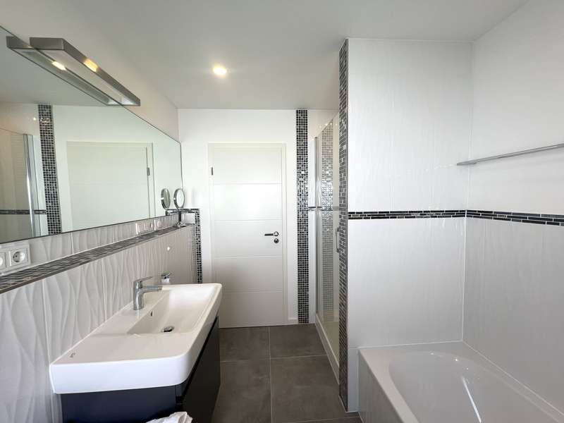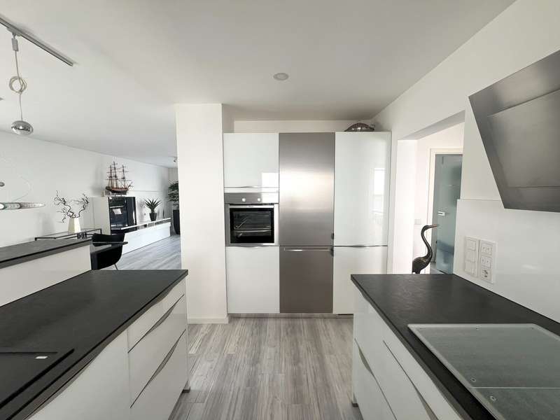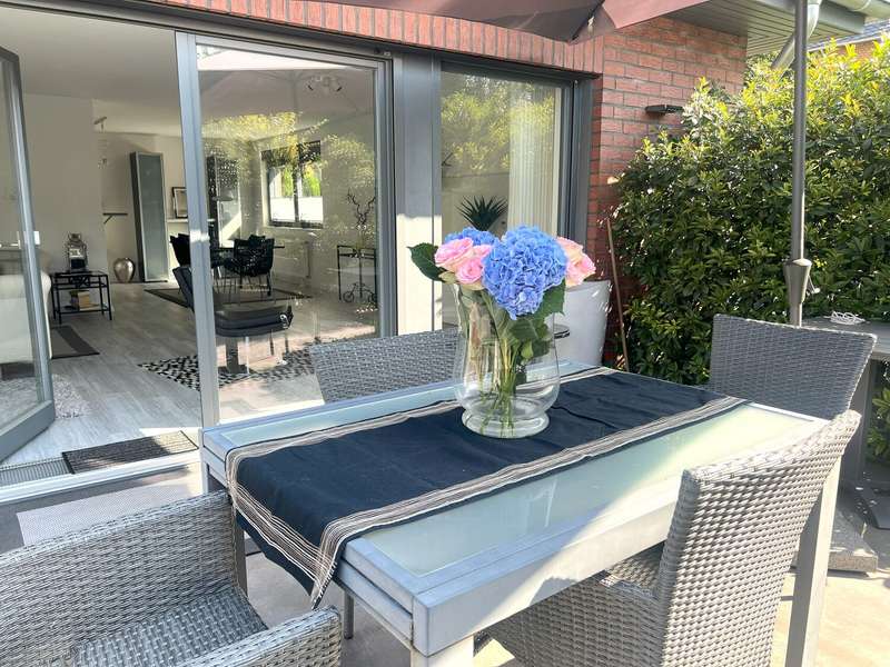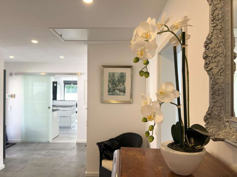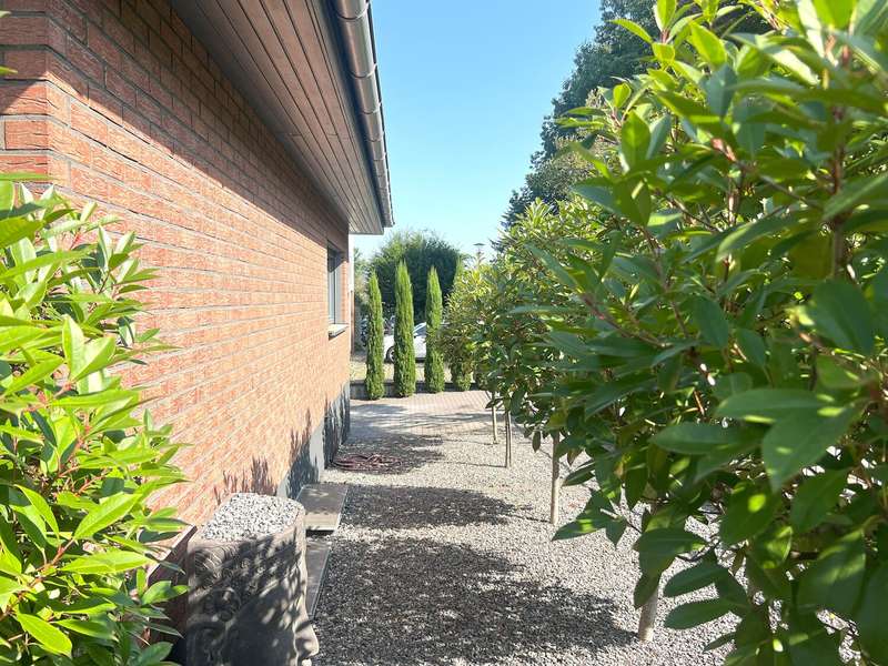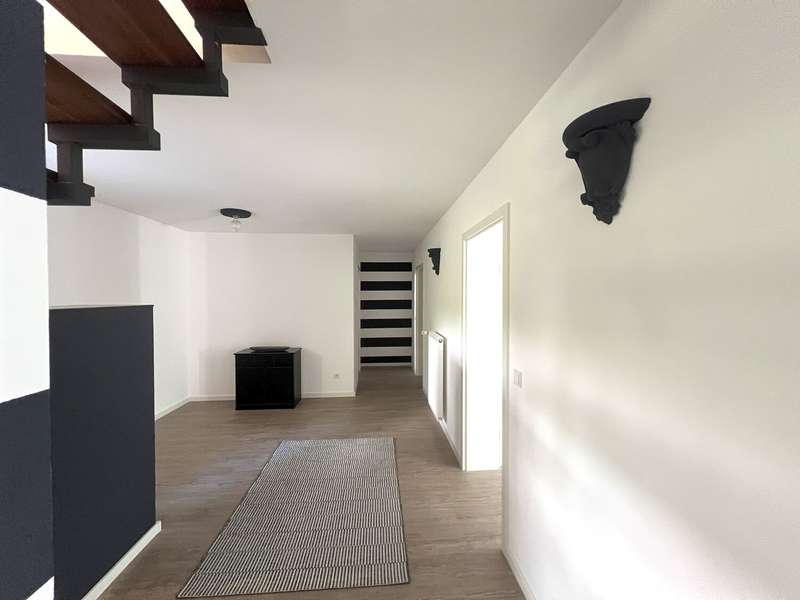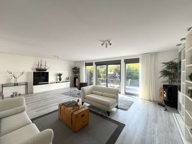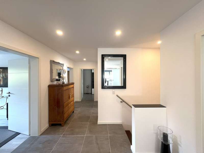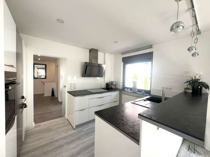 Welcome to this spacious bungalow which, with a living space of approx. 205 m² spread over two levels and a plot area of approx. 450 m², offers a modern home with comfortable furnishings. Built in 1976, the house underwent extensive refurbishment between 2015 and 2018 and has been in a contemporary condition ever since. The bungalow impresses with its well thought-out room layout, which offers a wide range of possible uses. The central living and dining area forms the heart of the house. Here, spaciousness and cosiness combine to create a harmonious living ambience that invites you to enjoy convivial evenings with family or friends. The open-plan kitchen fits perfectly into the room concept and was also renovated as part of the refurbishment. Large windows flood the living spaces with plenty of natural light and create an inviting atmosphere. Direct access to the terrace extends the living space into the countryside in summer. The plot has been designed to be easy to use and offers space to relax as well as opportunities for gardening or playing outside. As part of the modernization, key aspects such as the electrics, plumbing, windows, interior design, bathrooms and floor coverings were completely renewed. The central heating system from 2005 reliably ensures a pleasant living climate all year round. The energy efficiency of the property is also very good thanks to the measures taken in recent years. Further features include a practical utility room, a separate guest WC and ample storage space on the garden level. The garden level itself has an additional separate entrance from the outside. Ideally suited as a home office, for a self-sufficient family member or as an addition to the first floor. The high-quality choice of materials and careful workmanship are noticeable in all areas. The floors were finished with easy-care, durable coverings. Subtle colors and clearly structured rooms underline the functionality of the house without sacrificing homely accents. The building is located in a quiet residential area with easy access to shopping facilities, schools and public transport. The bungalow is ideal for families and anyone who appreciates spacious living on one level. Naturally, this timeless residential ensemble has two outdoor parking spaces and a storage room that can be accessed from outside.