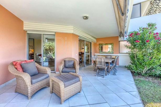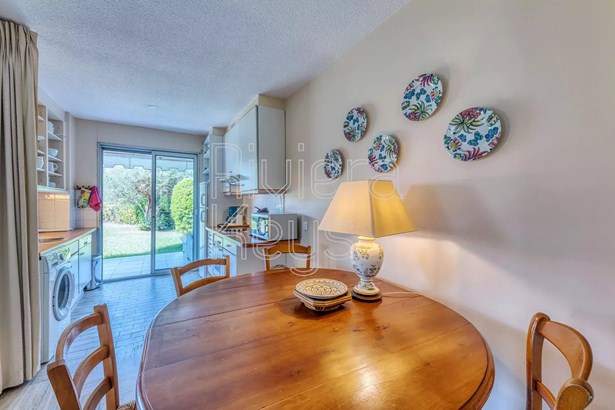 Located in a quiet residential complex featuring a swimming pool, tennis court and children's play area, this garden-level apartment of approximately 93 sqm offers a peaceful lifestyle just five minutes from the center of Antibes and the beaches of Juan-les-Pins.In good condition throughout, the apartment includes a spacious living room with an open-plan kitchen, three bedrooms including one en-suite, and a shower room.A private garage, a cellar and an outdoor parking space are also included.