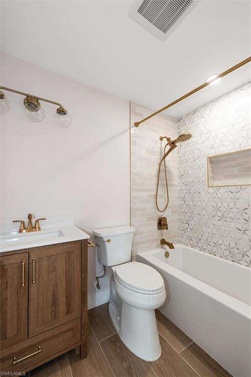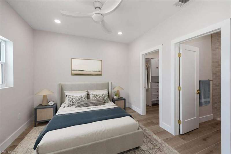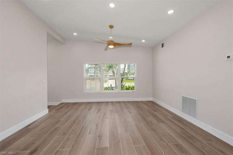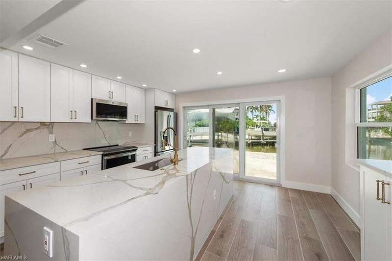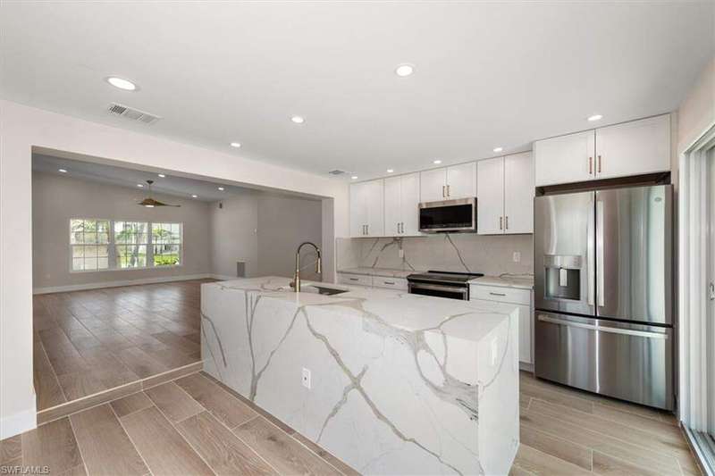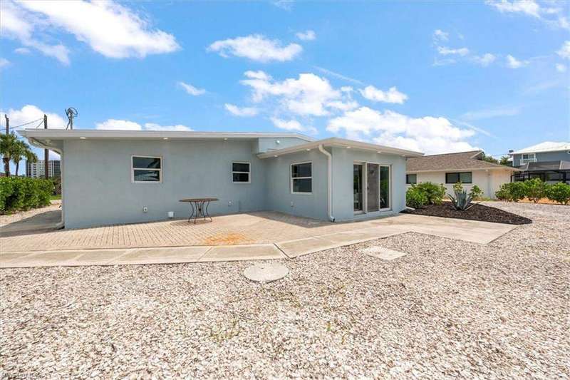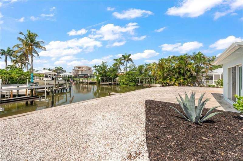 Meticulously remodeled 3/3/1 direct Gulf access home only steps from the white sands of the Gulf. When you step into this home you will immediately notice the attention to detail and upgraded finishings throughout. The interior of this residence features an open floor plan, plank porcelain tile throughout, upgraded lighting and the desired split floor plan. With two en-suite bedrooms your guests or family can enjoy the privacy and comfort of their own custom tiled walk-in shower. The kitchen boasts a huge Island fit for a Chef, bright white soft close shaker cabinetry and stunning waterfall quartz counters. The rear yard has amazing long water views down the canal and has plenty of room for a pool, Tiki hut and so much more! Customize your dock where you have quick boating access to the Gulf and all that SW Florida has to offer. This amazing S End home is only minutes to the airport, Ft Myers, Bonita Springs and Naples where you can enjoy 5-star shopping and dining. All work was fully permitted and nearly everything is brand new, including plumbing, electrical, all interior finishings, the roof and so much more, which helps to keep insurance rates affordable. No water intrusion during Milton or Helene and flood insurance is in place. Seller motivated!