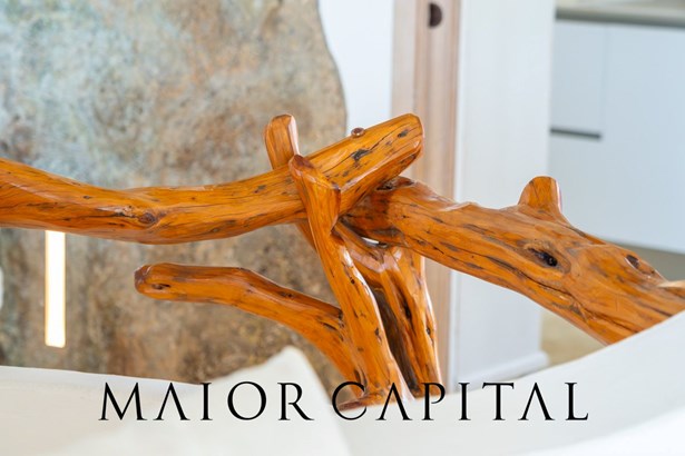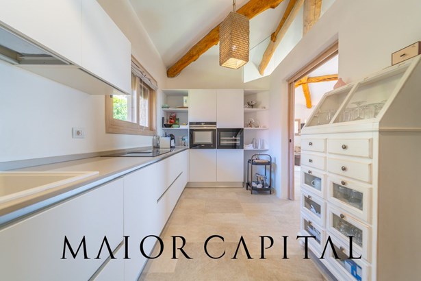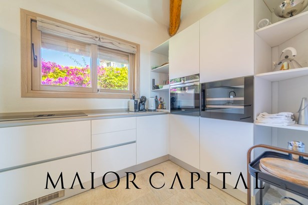 This luxury property stands out for its contemporary Mediterranean style, harmoniously blending traditional elements with modern lines softened by elegant architectural curves. Recently renovated with high-quality finishes, it is spread over two levels. On the main floor, a bright living area with exposed wooden beams and large windows welcomes guests into a sophisticated and welcoming environment. The living area opens to the outside onto a furnished porch, ideal for relaxing or dining at sunset with the scent of the sea.