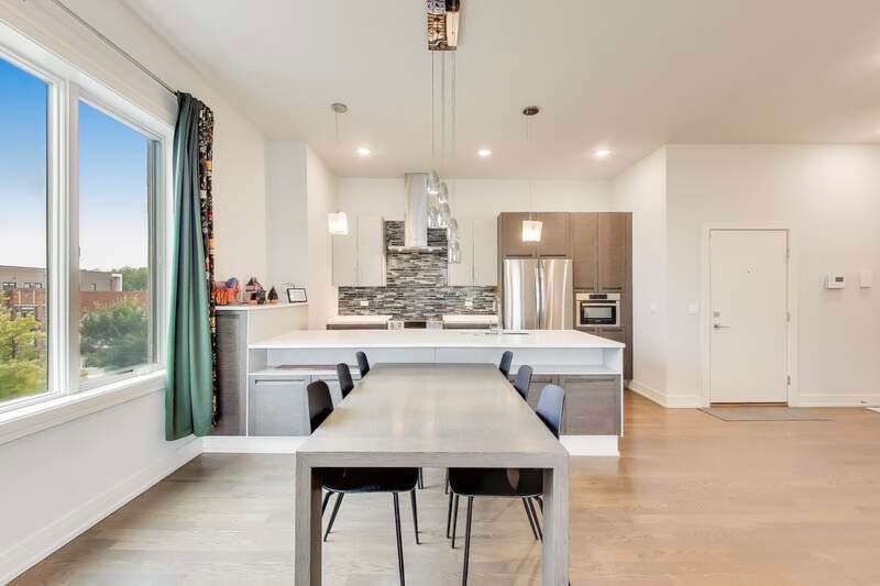 MULTIPLE OFFERS RECEIVED. BEST AND FINALS DUE OCT 12 BY 4P. Welcome to your sun filled, penthouse level, Lincoln Square oasis! Located near Winnemac Park, this 3 bed (plus office), 2 bath penthouse features a sleek modern design throughout, hardwood floors and all the natural light you could ever need. Walking in, you'll immediately notice the expansive and inviting living/dining room with a modern kitchen ready for the chef in the family. A deck sits off the living room and is the first of two relaxing outdoor spaces for you to enjoy. The large primary bedroom features plenty of space for a king sized bed, a walk in closet and a en-suite with a steam shower. Walking upstairs, you'll find a wonderful flex space that is perfect for an office, gym or reading room. That room leads you right outside to the huge private 19x27 deck with newly refinished decking perfect for outdoor dining, hanging out with friends and movie nights! Central heat and AC, washer/dryer, garage parking, updated lighting, new window treatments, building security, round out this wonderful property! You'll love being close to restaurants, shopping and of course, Winnemac Park. Schools include the highly regarded Chappell Elementary and Amundsen High School. Welcome home!