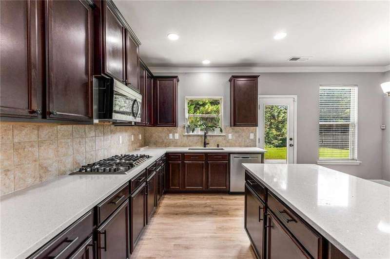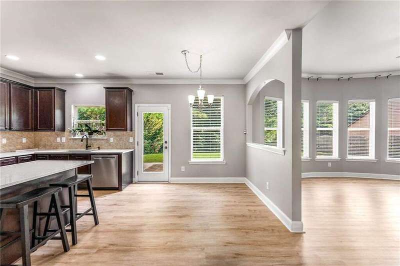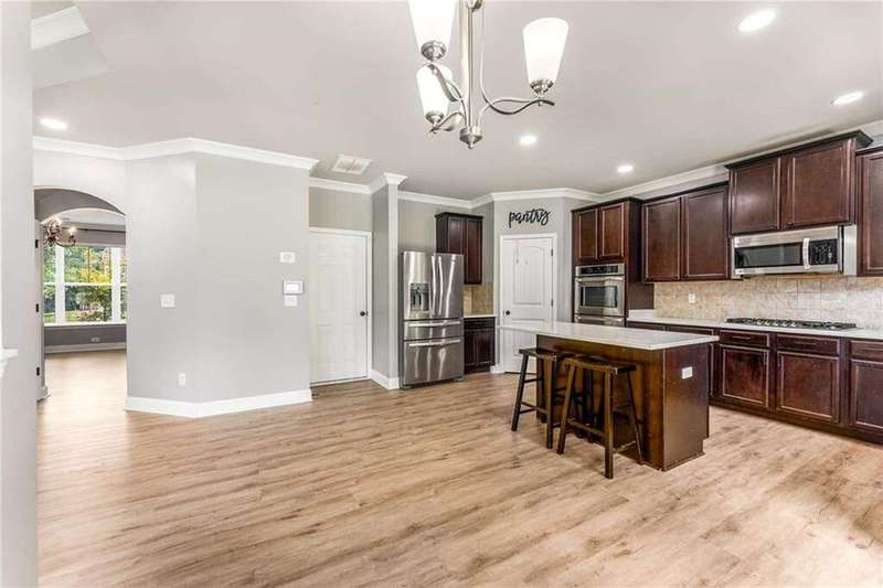 Welcome to 265 Huntleigh Chase Drive, a spacious and beautifully designed traditional home located in the desirable Huntleigh Chase community of Dallas, GA. Built in 2016, this impressive 5-bedroom, 3-bath residence offers over 3,100 square feet of living space on nearly half an acre, blending modern upgrades with timeless comfort. Step inside and you'll be greeted by a bright and open floor plan, where a dramatic wall of windows fills the two-story family room with natural light and creates a warm, inviting atmosphere. The gourmet kitchen is a true centerpiece of the home, featuring granite countertops, stainless steel appliances, a breakfast bar, and a seamless view into the living area-perfect for entertaining and everyday living. From the kitchen, enjoy views of the fenced, private backyard, offering plenty of space for relaxation or play. The main level also includes a private guest suite, ideal for visitors or multi-generational living. Upstairs, the oversized owner's suite is a luxurious retreat, complete with a separate sitting area and a spa-like en-suite bath. Four additional spacious bedrooms and two more full baths provide ample room for family, guests, or a home office. With its traditional architecture, thoughtful layout, and prime location near shopping, dining, schools, and major commuter routes, this home is truly a must-see. Don't miss the opportunity to make 265 Huntleigh Chase Drive your dream home in Paulding County!
