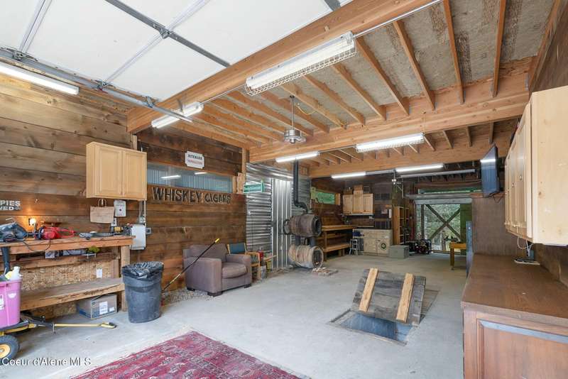 Lakefront Estate with Guesthouse (ADU), Workshop, Garden, Cabin - Motivated Seller! This one-of-a-kind gated with 2 residences private lakefront estate offers flexibility, income potential, secluded and stunning views--all on a private 1.6 acre parcel in a gated community. The unique custom main home features 3 beds, 3.5 baths, river rock accents, flagstone floors, 3 gas & 1 electric fireplaces, heated floors, a/c and a snowglobe-like living room with panoramic views of the clear spring-fed lake and surrounding mountains. High speed internet and a backup generator provide modern comfort. Above the 1,200 sq ft mancave workshop, a 3-bed, 1-bath guesthouse (ADU) include a/c, 220 V power, and generator ready electrical--ideal for guests, multi-gen living, or rental income. The grounds slope slightly down to the fenced 10 raised garden beds, greenhouse, chicken coop, boathouse, and cozy lakeside cabin with electricity, woodstove, bunkbeds, and shower adds even more versatility. Fish from a private shoreline or relax in the beauty of this rare setting. Seller is motivated--bring your offer! An incredible opportunity to own a peaceful, income-producing private lake retreat.
