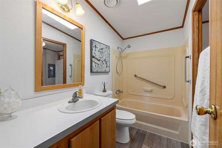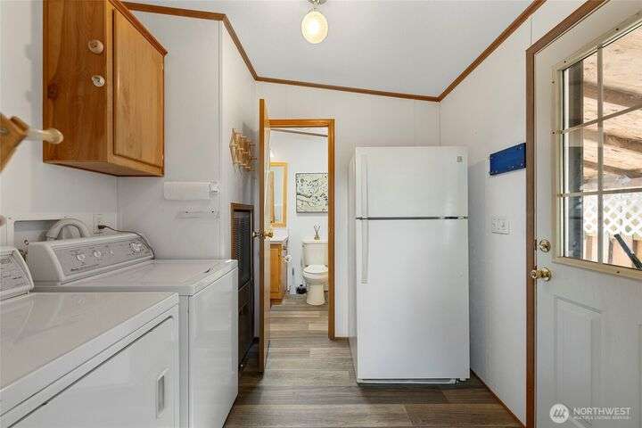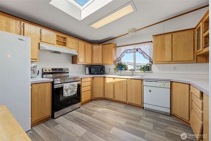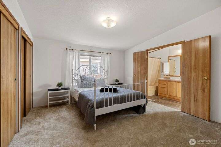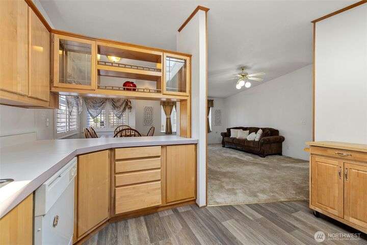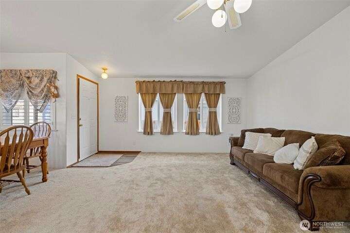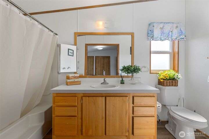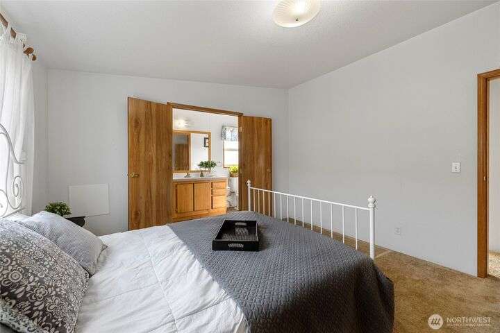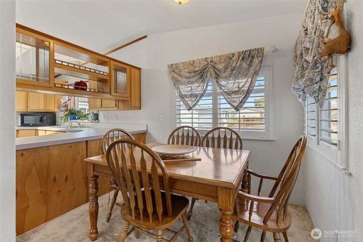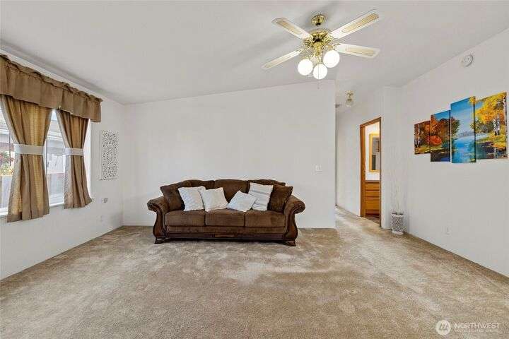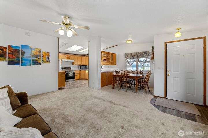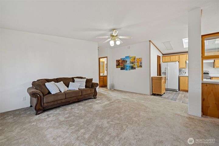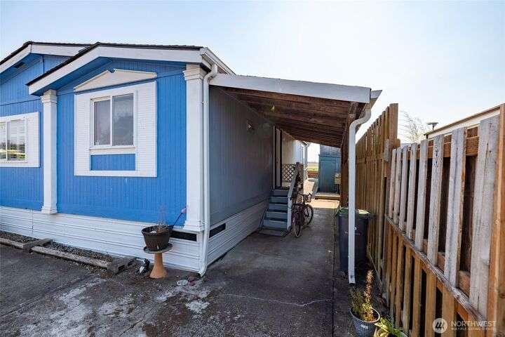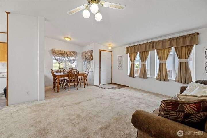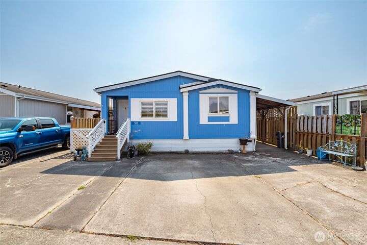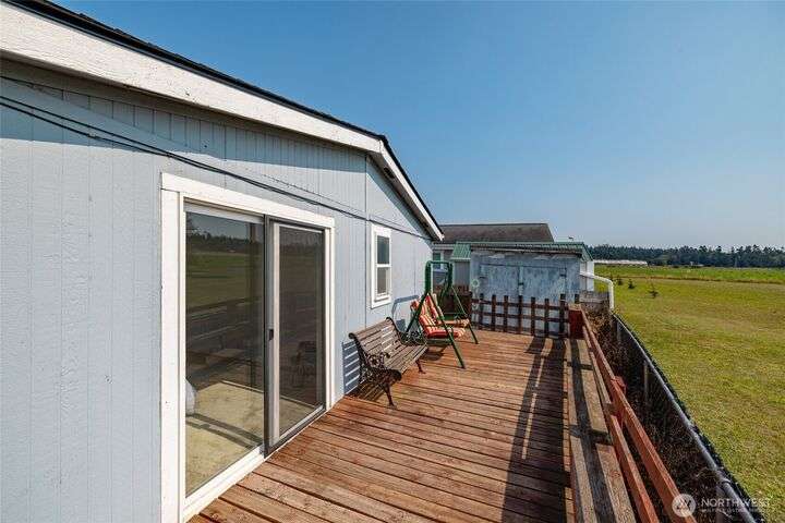 Welcome home! This listing offers a charming move in ready 2-bedroom, 2-bathroom home in a peaceful 55+ community with stunning views of the farmland and sometimes even a peek at the Olympic mountains. The property features a spacious, open floor plan with generously sized bedrooms. The laundry area is conveniently located near the rear door, off the kitchen. The expansive deck provides the perfect space to enjoy the serene picturesque sunset views. The park's monthly fees are reasonable, at $750, covering garbage, water, and sewer, It’s an affordable opportunity for senior living with a relaxed, scenic lifestyle and these homes do not come up very often in this Coupeville park on Whidbey Island.