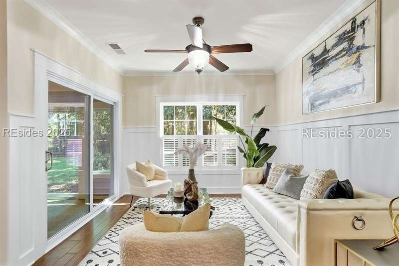 Freshly painted and move-in ready, this inviting home in the gated Rose Hill community offers comfort, versatility and timeless Lowcountry charm. The main level features a spacious primary suite, guest bedroom and a flex room ideal for an office or fourth bedroom. The open layout connects the living and dining area to a glass-enclosed porch overlooking a peaceful backyard, perfect for relaxing or entertaining year round. Upstairs, a welcoming loft with a cozy study area provides additional living space and storage. Residents enjoy 24/7 gated security, golf cart friendly roads, three pools, equestrian center, polo field, tennis and pickleball courts, a championship 18-hole golf course, walking and biking trails, clubhouse with restaurant, boat launch and a waterfront pavilion. Ideally located in Bluffton near shopping, restaurants and schools, and just a short drive to Hilton Head, Savannah, and Beaufort - this home offers the perfect blend of serenity, security, and Lowcountry living.