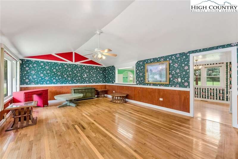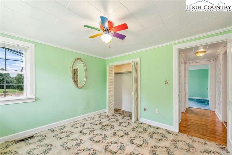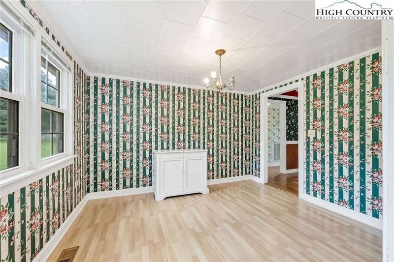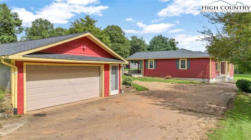 RENTERS ARE OUT! HOME HAS BEEN PROFESSIONALLY CLEANED! Located just 5 miles from the scenic Blue Ridge Parkway, this flexible 9.23-acre property combines open space, privacy & possibility. With no zoning restrictions, it's well-suited for a mini-farm, homestead, multi-home compound, or future investment build. Gently rolling lawns are partially fenced with wooded borders, multiple potential homesites, and room for gardens, livestock, or expansion.The home is a solid 3BR/2BA (note: 3rd BR & 2nd BA are unpermitted) and would benefit from some updates & creativity. A covered back porch leads into a mudroom/laundry area. From there, the primary bedroom with ensuite bath is straight ahead, while the kitchen sits to the left. The kitchen offers generous cabinet space and a pass-through window to the vaulted living room. A cozy dining area connects the two. The living room is spacious and filled with natural light. At the far end of the home are two additional bedrooms and a full bath?both bathrooms include tub/shower combos.Outbuildings add even more value: a detached 1-car garage, two barns (one with a loft), a storage shed, and a spring house (not in use). A small workshop near the house makes a great candidate for a creative studio, garden shed, or future guest cottage.Whether you envision a quiet country retreat, a working farm, or a place to build something new, the land offers freedom to shape your future. The revitalized downtown Wilkesboro + North Wilkesboro Speedway are within easy reach, while just 20 minutes away is historic downtown West Jefferson's shops, galleries, and eateries. Boone?with its university vibe and urban amenities?is less than an hour away. Hop on the Blue Ridge Parkway for a Sunday drive for an outdoor adventureA rare opportunity for those seeking usable land, flexibility, and a foothold in the High Country.