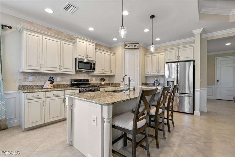 Welcome to Watermark. This impeccably kept White Sand II model by Neal Communities was built in 2016 and is being sold FULLY FURNISHED. Offering 3 bedrooms plus a spacious den, 2 bathrooms, over 1,900 square feet of living space, and a large 2 car garage, this floor plan lives very comfortably. With one of the most popular floor plans in the development, you're offered a bright and welcoming space from the moment you step in the door. Situated on a very desirable lot with southern exposure and an expansive backyard, you'll enjoy the private setting offered here. Outside, the screened in lanai offers a heated POOL with full remote automation and ample deck space. Upgrades throughout including electric roll down kevlar hurricane shutters installed by Storm Smart, a new AC unit (2023), fresh exterior paint (2025), stunning millwork and feature walls throughout, granite countertops, an under-sink carbon filter in the kitchen, a new beverage refrigerator, stainless steel appliances, and so much more. This home is the definition of move in ready. A rare offering in Southwest Florida, Watermark offers natural gas service to each home allowing for the kitchen range, dryer, water heater, and a stub out for a future outdoor kitchen to be supplied by natural gas. Watermark offers some of the best amenities in the area including a resort style pool & spa, outdoor cabana area, fitness center, 4 pickleball courts, a tennis court, a basketball court, bocce courts, a dog park, and a large community lawn all for extremely reasonable HOA dues. Situated in one of the most convenient locations in SWFL you'll enjoy access to tons of shopping and dining options, I-75, RSW International Airport, and the soon to be completed state of the art Lee Health Medical Campus. With so much to offer, this home is one of the best available in our market today.