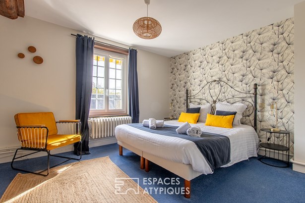 The main mill includes five elegant guest rooms, each with its own private bathroom. The top floor offers breathtaking views of the park and the river, while the first floor features a library, a meeting room, and a space that can be used as an office or massage room. The private section includes three bedrooms and two bathrooms. On the ground floor, a hall leads to an office with a wood-burning stove, a kitchen opening onto a bright veranda, and a spacious living room with a dining room. The mill wheel, dating back two centuries, gives the property a medieval and magical atmosphere. A detached cottage, sleeping six, offers three bedrooms, two bathrooms, a fully equipped kitchen, and a living room with a fireplace-ideal for entertaining family and friends. The barns, in excellent condition, house a pool house with a bar and offer numerous possibilities for conversion: reception rooms, workshops, wellness areas, or an extension of the accommodation. A cold room and a workshop complete this versatile property.
