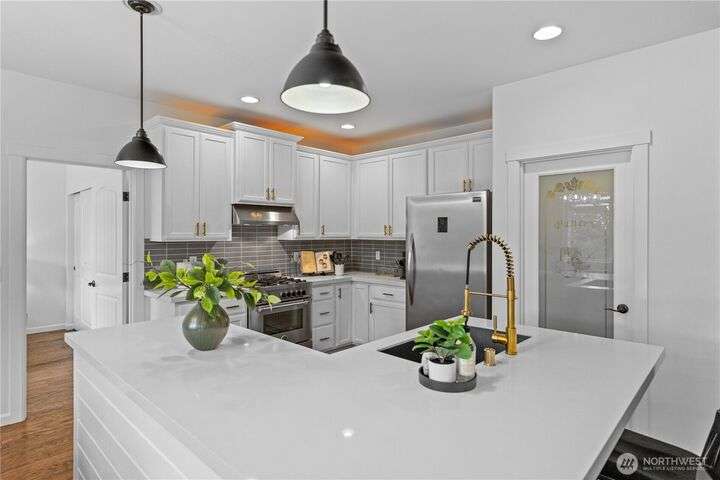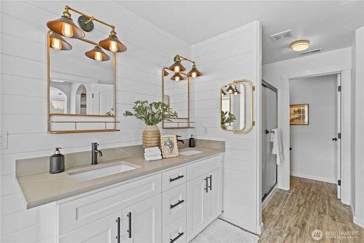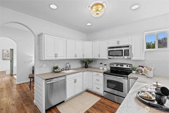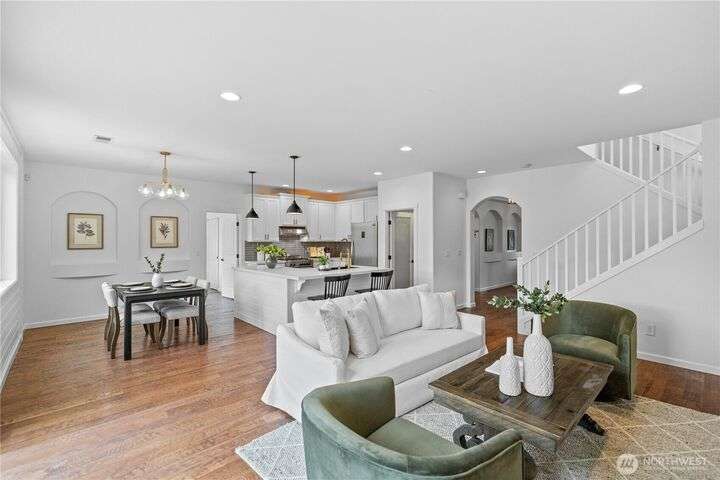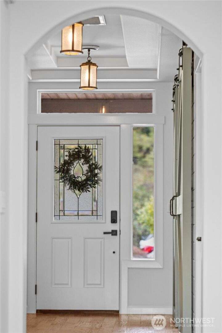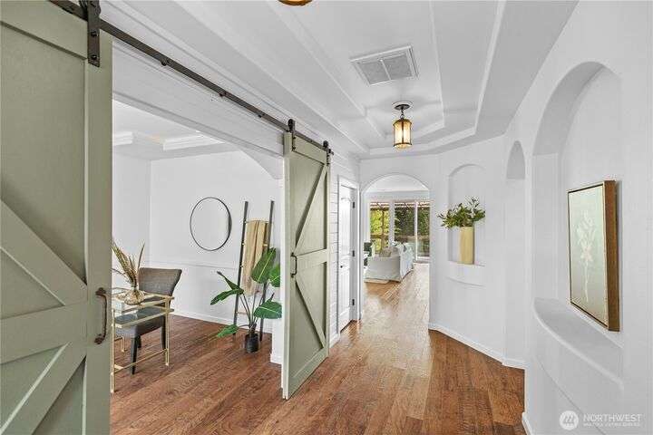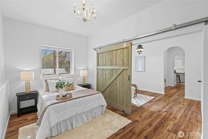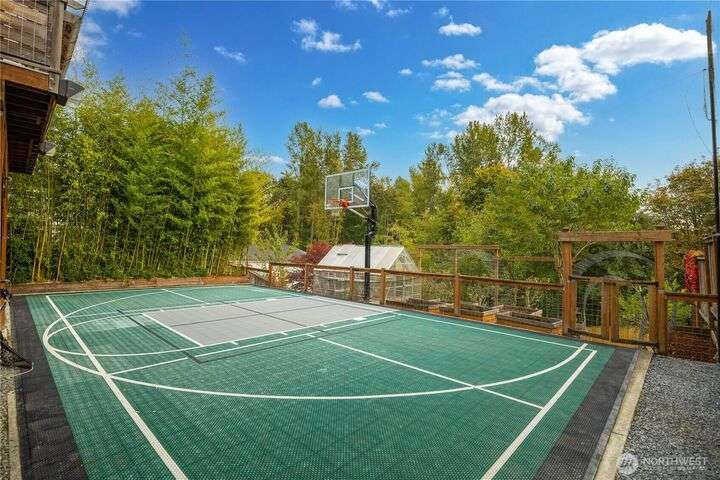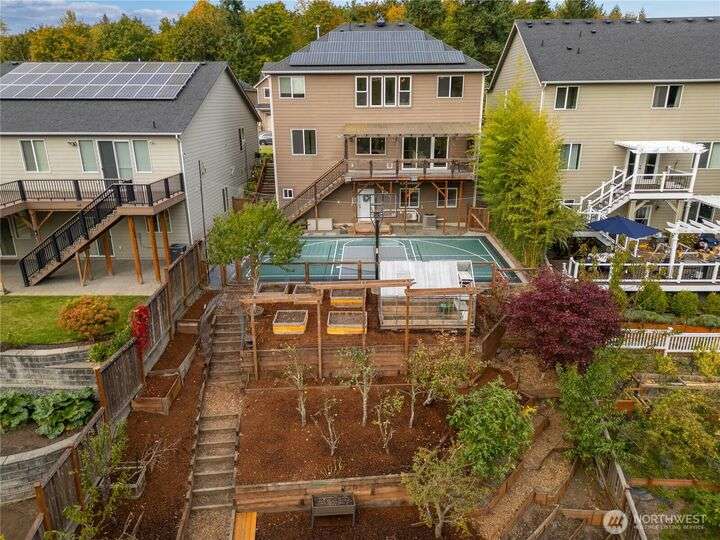 A PNW DREAM!Sweeping territorial views set the tone for luxury living in this beautifully updated home, offering a serene and sophisticated retreat. Custom dual barn doors for an ideal office or formal dining space on the main. Bump-out niches, perfect for seasonal decor. Bright white walls & new carpet throughout create a clean and inviting canvas. Updated light fixtures, hardwood floors, remodeled bathrooms, custom windows in the primary, balcony extension, AC, solar panels added! Private in-law suite, featuring a living room, a full kitchen, ample storage, and a remodeled bathroom. The expansive yard features terraced garden beds, an orchard of fruit trees & regulation-sized sports court- accommodating pickleball, basketball &volleyball.