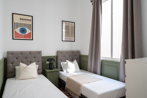 Nestled on the first floor of a charming, small building right off Calle Carretería in Málaga’s historic center, this apartment blends Scandinavian minimalism with Andalusian light. West-facing and graced with three lovely balconies, it offers an abundance of natural light. The living room is a highlight, featuring wooden ceiling beams and a versatile iron-and-glass partition that can create a cozy office or even a third sleeping area.With two airy bedrooms, a bathroom, and a kitchen nook perfect for relaxing with a coffee, this home is fully furnished and move-in ready. Plus, it comes with a tourist license, making it a brilliant opportunity for both living and investment in the heart of Málaga.