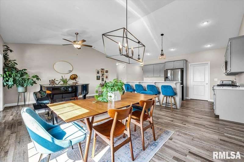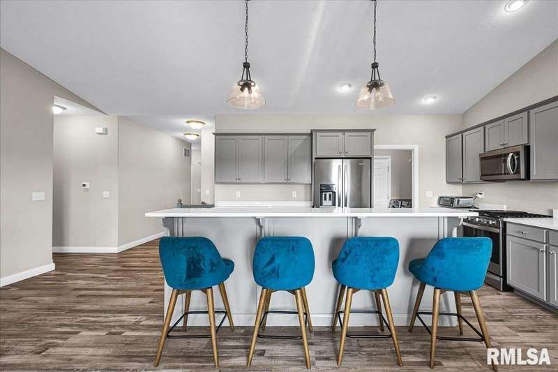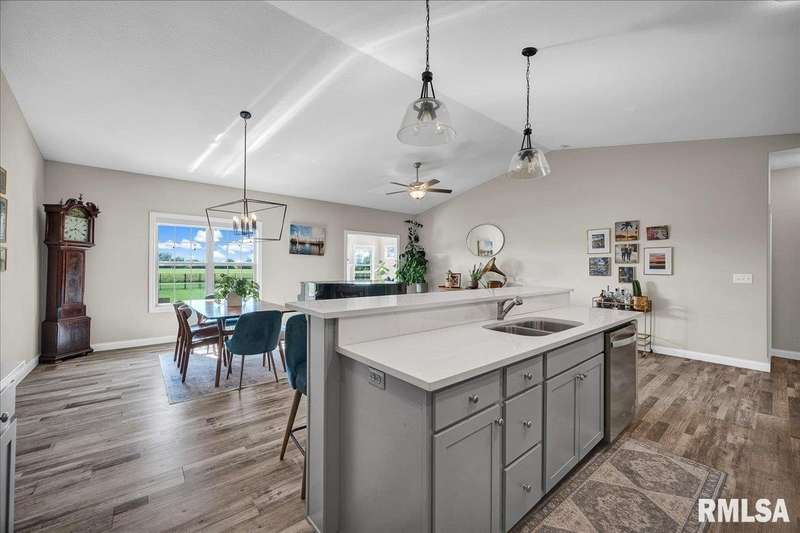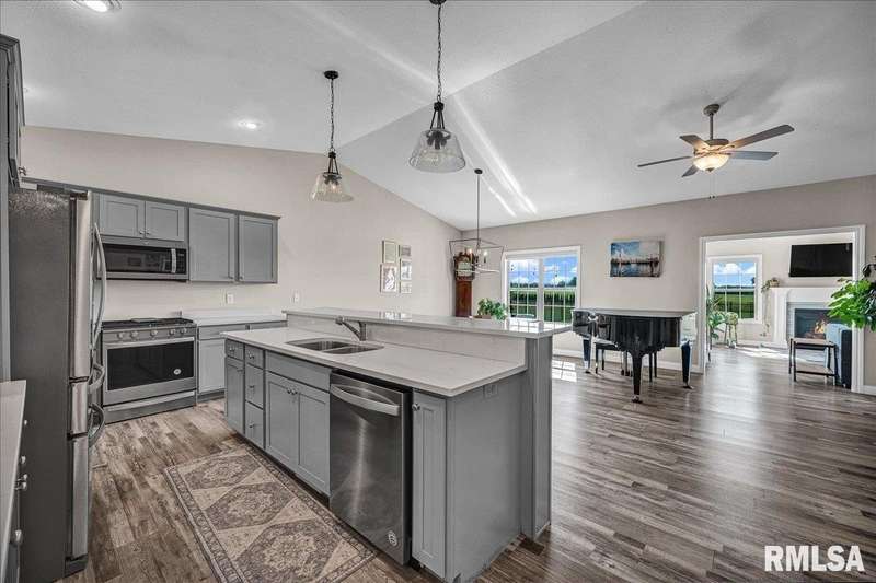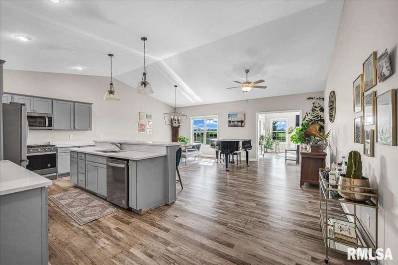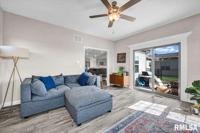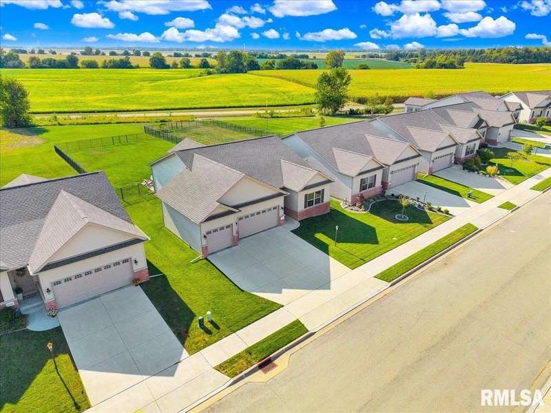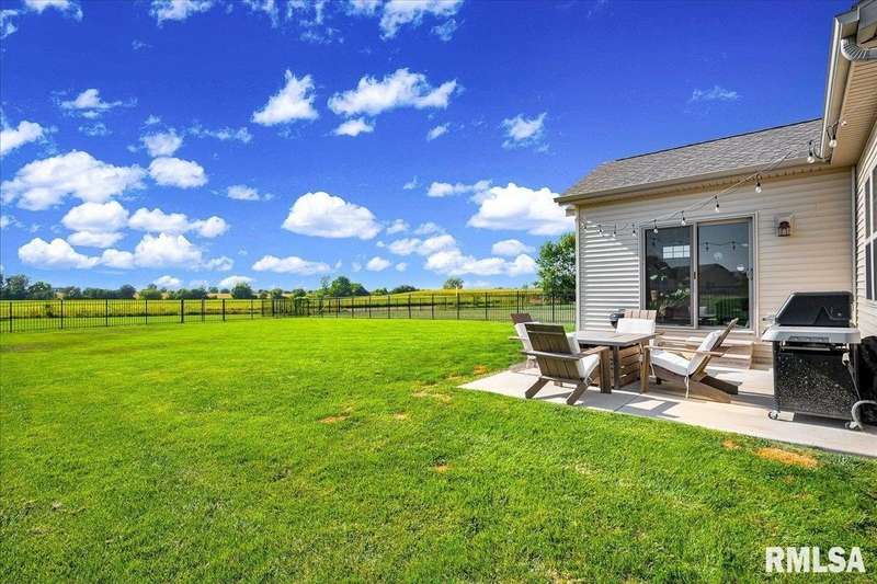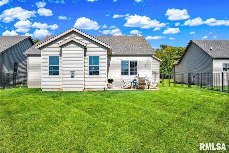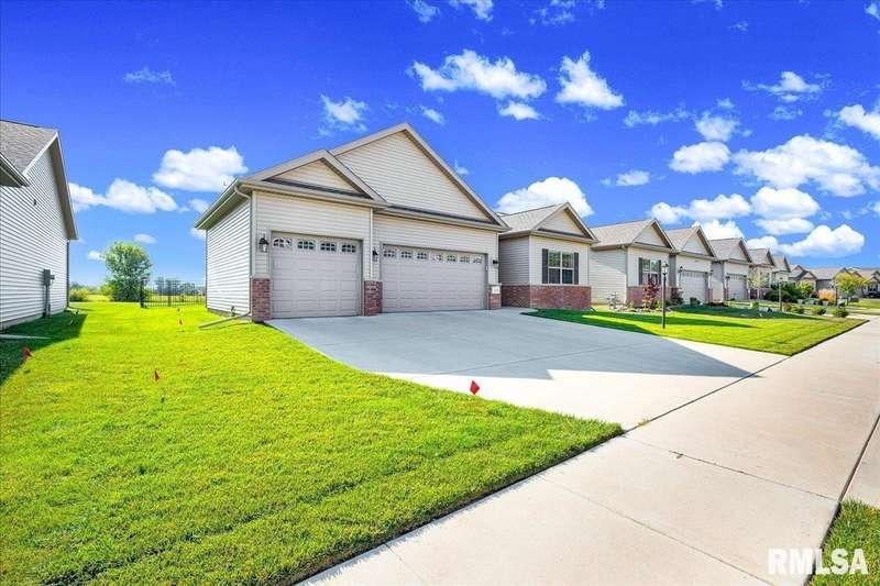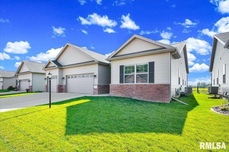 Move right in to this nearly new Trails Crossing ranch, featuring 4 bedrooms, 3 full bathrooms, and over 2,650 finished square feet of living space! Built in 2021, this property has every possible upgrade box checked for Trails Crossing homes, including a 3-car garage, extra deep fenced lot, bonus 4-season family room, and beautifully finished basement. Spacious open concept main floor boasting cathedral ceilings and great connection between the chef's kitchen, informal dining area, and living room. 3 main floor bedrooms, including the large primary suite with attached bathroom and walk-in closet. Relax in the sun-drenched 4-season room with access to the fenced back yard and idyllic pastoral views beyond. The phenomenal daylight lower level is beautifully finished with additional living space, 4th bedroom, and full bathroom, along with ample storage space. Great location within walking distance to the Rock Island Trail. Schedule your showing for this terrific property today!