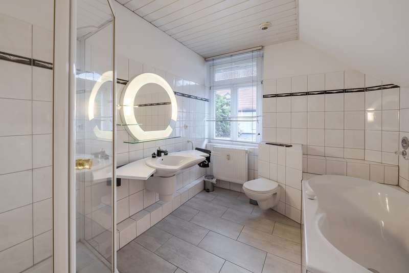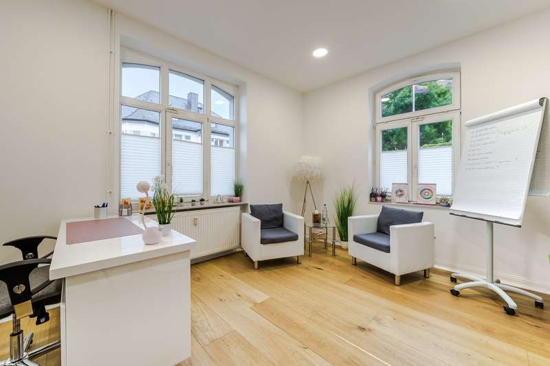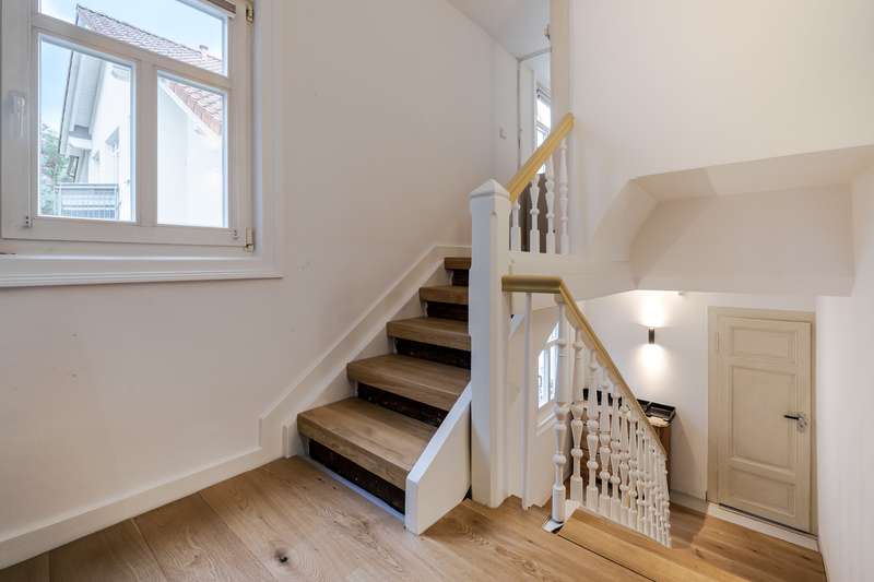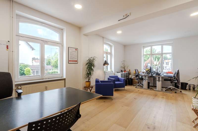 We present the "Villa Buchfink", a special property built around 1900, which offers an elegant blend of historical architecture and modern facilities. Added to this is the first-class location with maximum visibility and a highly frequented location that is hard to find anywhere else in the popular small town of Usingen. The spacious house extends over two lovingly designed floors plus a convertible attic and full basement. The high ceilings and coffered doors, some with artistic Art Nouveau glazing as a special eye-catcher, as well as the original mullioned windows provide a stylish setting. The elaborately designed façade, some of which features exposed half-timbering, lends the property a prestigious appearance that reflects the charm of the Wilhelminian era. The interiors are fitted with high-quality real wood parquet flooring, which was only renewed in 2022. All rooms and the corridors in between shine in new splendor and offer a cozy feel-good ambience. The well thought-out electrical wiring includes numerous sockets and network connections as well as integrated ceiling lighting that meets today's requirements for comfort and functionality. The fully equipped fitted kitchen on the first floor speaks for high quality fittings, while an additional kitchen connection on the upper floor offers further scope for design. In addition to two guest WCs in the stairwell, the property has two well-kept daylight bathrooms: on the first floor you will find a bathroom with a shower, on the upper floor you will find a bathroom equipped with a bathtub and separate shower. The premises are currently let commercially on a room-by-room basis to several individual trades (notary, psychologist, architect, alternative practitioner/coaching, insurance and building cleaning). The letting is long-term and open-ended. The all-in rental income including ancillary costs and parking spaces amounts to approx. €4,150 per month. The two large, currently connected rooms on the first floor could be made available at short notice if required. The expansion reserve on the top floor offers particular potential, as water and electricity connections are already available. This means that individual wishes can be realized. The full basement offers practical access to the parking spaces and creates additional storage space. The outdoor area includes a carport in the courtyard and six further parking spaces in front of and next to the house. A fiber optic connection was added in 2023 to offer modern communication options. Overall, this property is a successful combination of historical charm and modern living quality. The high-quality furnishings and spacious layout make Villa Buchfink a rare offer on the real estate market. We cordially invite you to view this special property and see for yourself. For further information or to arrange a viewing appointment, please do not hesitate to contact us.
