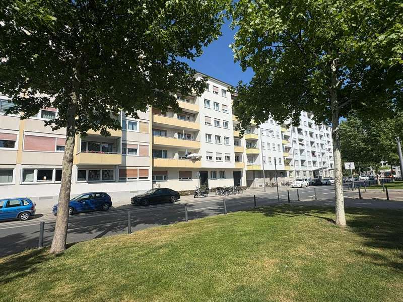 The unit on offer here is located on the mezzanine floor of an apartment building with a total of 21 units and has 95 m² and four rooms. The kitchen offers access to the beautiful balcony with a view of the inner courtyard. According to the land register, these are commercial premises, but the unit and the garage belonging to it have been used for residential purposes for several decades. However, no official conversion has ever been attempted. It has now been rented for 15 years and currently rents for € 992 (cold) per month.