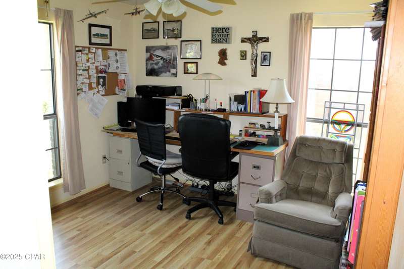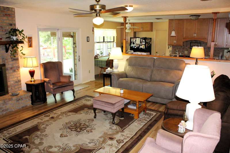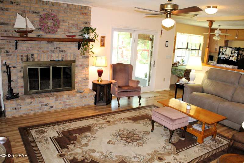 Welcome to this beautifully maintained all-brick ranch-style home featuring 3 bedrooms and 2 full bathrooms--where comfort, style, and practicality come together seamlessly. Nestled in a peaceful setting, this home offers the perfect blend of indoor charm and outdoor serenity. You'll love the open-concept kitchen with updated cabinetry that flows effortlessly into the inviting family room, complete with a cozy wood-burning fireplace. There's also a spacious formal dining and living area--ideal for hosting holidays and special gatherings. Step outside to unwind on the screened-in porch or enjoy the stunning water views from the backyard deck--perfect spots for your morning coffee or evening meals. The property includes a 2-car attached garage and an extra driveway space with an exterior electric hookup--perfect for your RV or boat. The sprinkler system is on well water. Major updates include a 2019 roof, 2025 AC with air purifier, 2021 hot water heater, and installed impact-resistant windows (excluding the garage window).This move-in-ready gem offers both peace of mind and everyday comfort. Please pardon the ongoing road construction--once complete, the street, lines, and piping will all be brand new! Canal/other ends at the end of the street.Come see this wonderful home for yourself--you won't want to miss it!