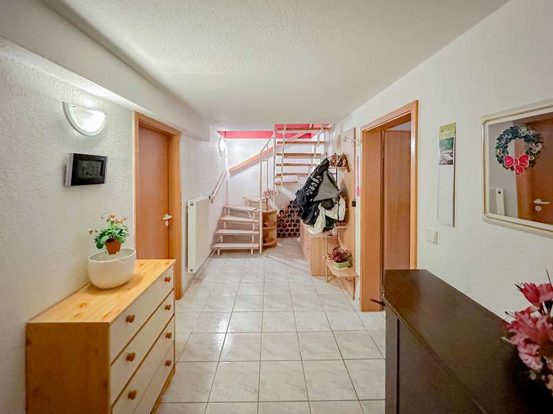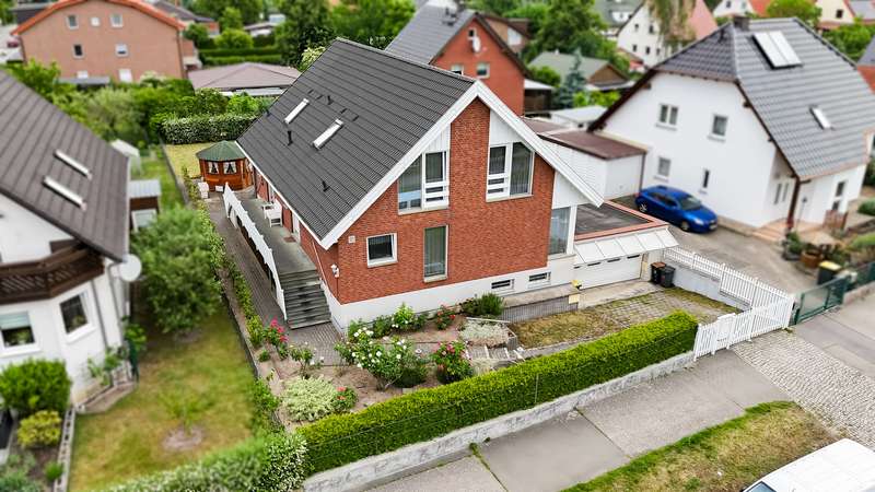 This charming and well-kept detached house with granny apartment was built in 1996 and offers around 168 m² of living space on a plot of approx. 624 m². A special highlight: the property is not only suitable as a spacious detached house, but can also be used as a semi-detached house or with separate residential units thanks to its well thought-out floor plan, ideal for intergenerational living, renting or working and living under one roof. The main house - a home to feel at home in The entrance area welcomes you with spaciousness and offers enough room for a checkroom. A separate guest WC provides additional comfort in everyday life. The heart of the house is the open-plan living and dining area. Large windows provide plenty of natural light. The first floor also has another room that can be used flexibly, e.g. as an office, guest room or playroom. The adjoining kitchen impresses with its practical layout, modern equipment and short distances, ideal for daily cooking or sociable evenings. The upper floor has a total of three well-designed rooms that can be used flexibly as bedrooms, children's rooms, study rooms or guest rooms. The rooms are bright, friendly and versatile. A bathroom completes the space on this floor. It is equipped with a bathtub and shower, perfect for relaxing wellness moments or functional everyday life. The house is heated by central heating, with underfloor heating on the first floor, which ensures a particularly cozy feeling on cold days. The house has a full basement, modern, spacious, with a sauna and access to the granny apartment and the double garage. Also worth mentioning is the easily accessible attic, which offers practical storage space for various items. The granny apartment - versatile use A special added value of this property is the integrated granny apartment, which can also be used completely separately if required. It is ideal for family members, care staff, as a home office area or for renting out as a separate unit, depending on your individual requirements. The apartment has a separate entrance and, like the main house, is very well equipped. From the hallway, you not only reach the guest WC, but also access the spacious living and dining area with open-plan kitchen. There is enough space here to make several people feel at home. On the upper floor of the granny apartment there is a bathroom with bath and shower as well as a very spacious bedroom measuring almost 13 m². Basement The basement offers plenty of storage space and direct access to the spacious double garage. The aforementioned transition between the two halves of the house in the basement creates additional possibilities for use or separation, depending on the living situation. Outside area The well-tended garden invites you to linger, whether having breakfast on the terrace or playing with the children. A perfectly furnished garden pavilion also offers additional additional quality of stay. All garden tools can be conveniently stored in a large tool shed. stored in a large tool shed.
