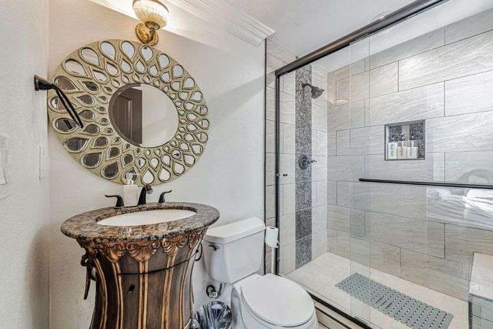 Classic Spanish Revival home completely remodeled and reimagined in 2017, and meticulously maintained in Naglee Park. Currently operated as a vacation home/air bnb that is currently renting for over $10,000/month, a fantastic investment and income generating property! Huge great room and open kitchen with stainless steel appliances and granite slab counters and island. Formal living room with grand fireplace also has French doors and an adjacent bath, allowing it to become a third en-suite if desired. Total number of rooms for use as a bedroom is 6, with 3 en-suites if including the living room. The primary suite has dual sinks, large stall shower, walk-in closet and copper bathtub. The home boasts high ceilings and incredible detailing throughout with engineered wood floors with marble floor in the grand entry and hallway. Dozens of decorative wall ornaments and ceiling details bringing an inspired totally new look to this classic 1915 home. Fully furnished! Large extra-large gated parking area allows for off-street parking, leased solar array for low electric costs. Fantastic location, especially if used as an air bnb due to its close proximity to SJSU, City Hall, highways 101/87/280/680, SJ tech companies plus dining and theater. Don't miss this terrific opportunity!