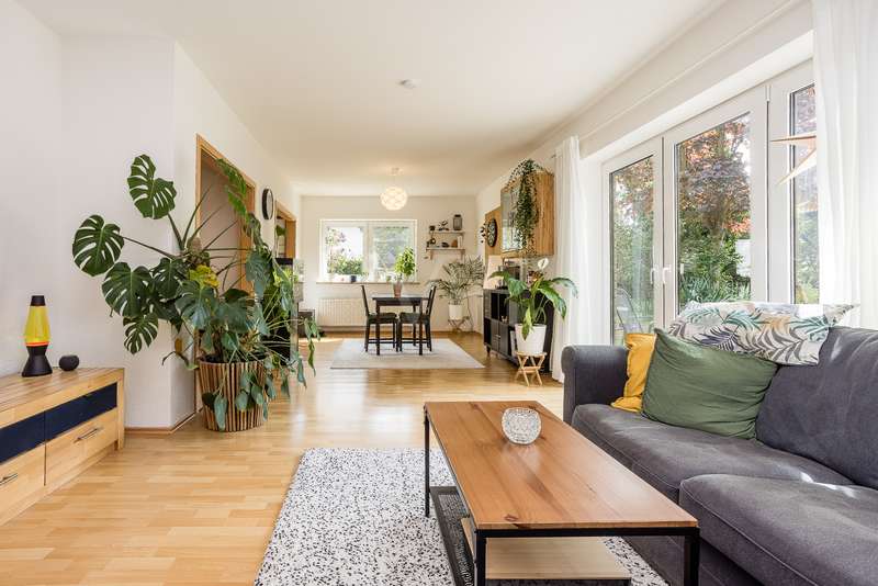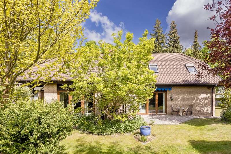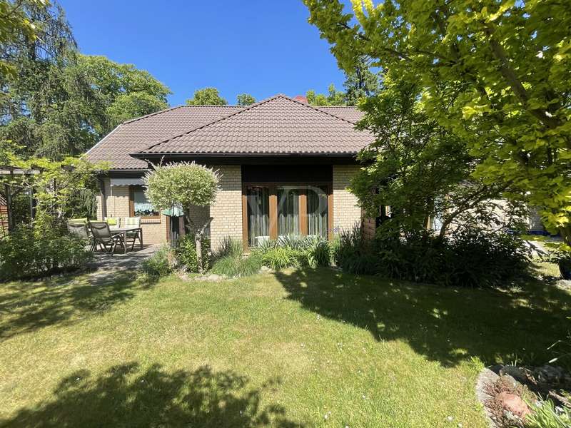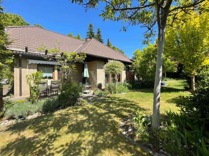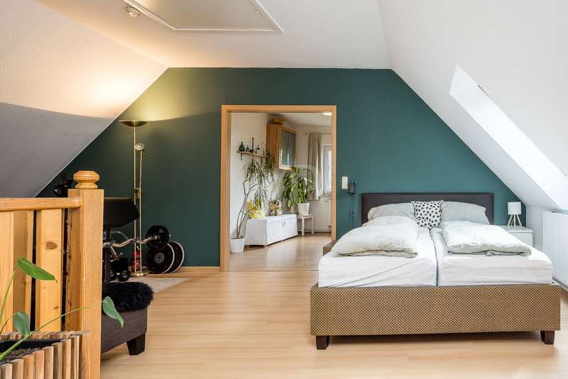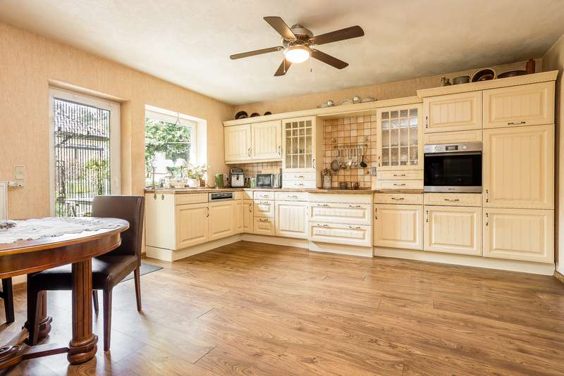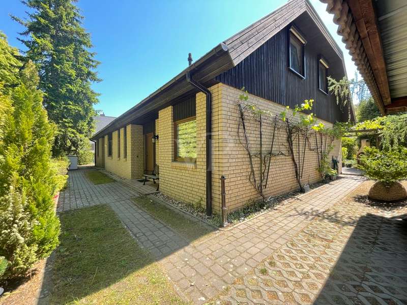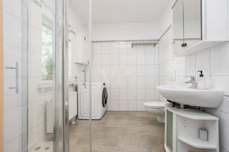 Built in 2004, this fully brick-built detached house with granny apartment combines well thought-out architecture, spacious living areas and a lovingly landscaped garden to create a harmonious overall picture. Situated on a plot of approx. 997 m², the property offers around 254 m² of living space, spread over a total of eight rooms - ideal for families, multi-generational living or a combination of living and working under one roof. An inviting hallway welcomes you as soon as you enter the house. There is a guest WC to the left and a practical utility room to the right. Straight ahead is a bright hallway from which you reach the spacious kitchen with access to the terrace - the perfect place for sociable evenings and relaxing hours outdoors. Also directly accessible from the hallway is the friendly living room, which impresses with its spaciousness and beautiful view of the garden. A special architectural highlight is the beautiful cathedral ceiling in the living room of the main house. The upper floor of the main apartment welcomes you with an open gallery that conveys an airy feeling of space. Here you will find a stylish bathroom with shower and bathtub, a dressing room and two rooms that can be used flexibly - ideal as bedrooms, children's rooms or studies. The separately accessible granny apartment impresses with its spaciousness and successful room layout. You enter the living area via a separate hallway, which comprises a spacious living and dining room in addition to a study and a modern shower room. This can be divided into two practical rooms if required. The adjoining kitchen is fully equipped and can be accessed both from the living room and directly from the hallway. A special highlight of the granny apartment is the converted attic. Here you will find a large studio with several rooms: a bedroom with an adjoining small room, another room with a dressing room and a separate WC. Whether as a retreat for guests, space for older children or for creative use - this area offers a wide range of possibilities. The outdoor area impressively rounds off the offer. The well-tended garden with two separate terraces - one for the main apartment and one for the granny apartment - invites you to linger. The awnings above both terraces provide protection from the sun and cozy hours outdoors. Additional storage space is provided by a solid workshop in solid construction with two rooms, while the carport offers space for two vehicles. An electrically operated gate provides convenient access to the carport. Each residential unit has a 6,000-liter rainwater tank that can be used for watering the garden. Conclusion: This spacious and well-kept house offers space for individual living concepts and impresses with its high quality of living, functional architecture and charming garden - an ideal home with many possibilities.