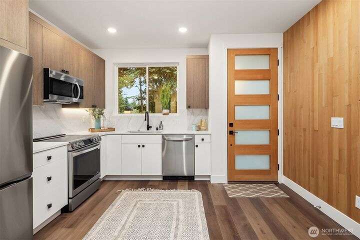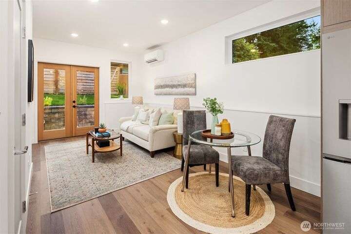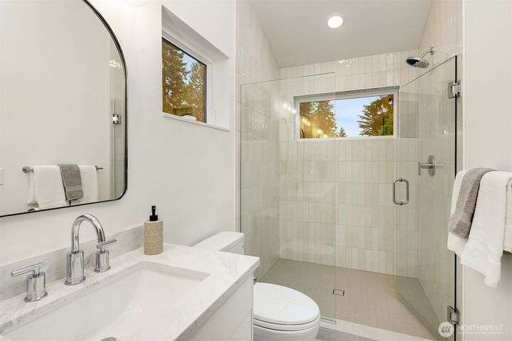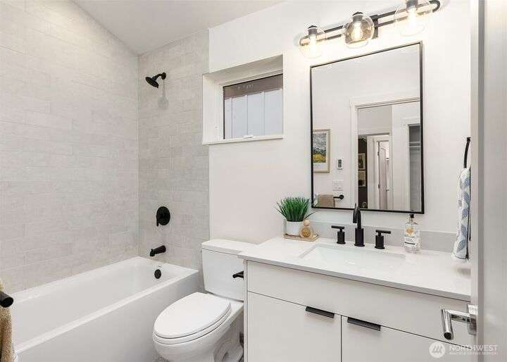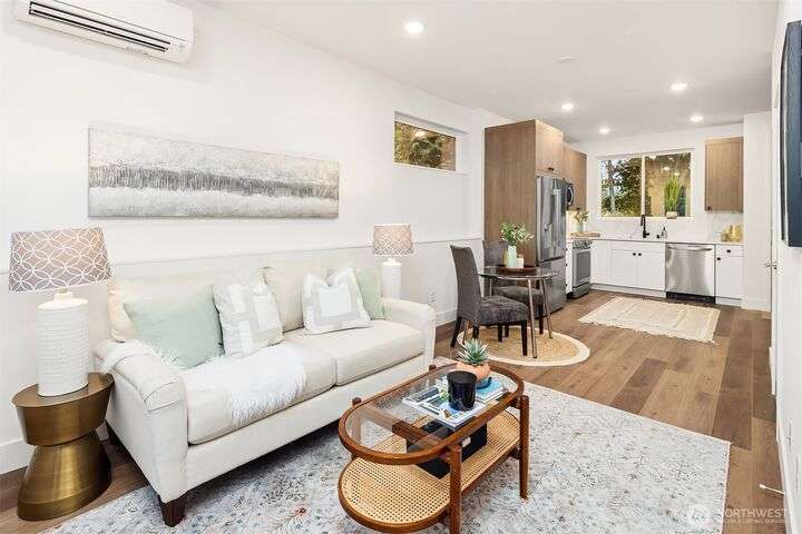 Beautiful new construction home in North Seattle's Olympic Hill's neighborhood. Step inside to a light-filled open-concept living, dining & kitchen - perfect for entertaining. Living space is extended outdoors to a private patio & grassy backyard ideal for pets, gatherings or gardening. Second floor features primary with en-suite, laundry room, and additional bedroom and full bath. Nestled in a quiet, tree-filled neighborhood, this home offers a serene feel while maintaining convenience to amenities of North Seattle and easy access to I-5. Attached garage and over-sized driveway allow for ample parking.